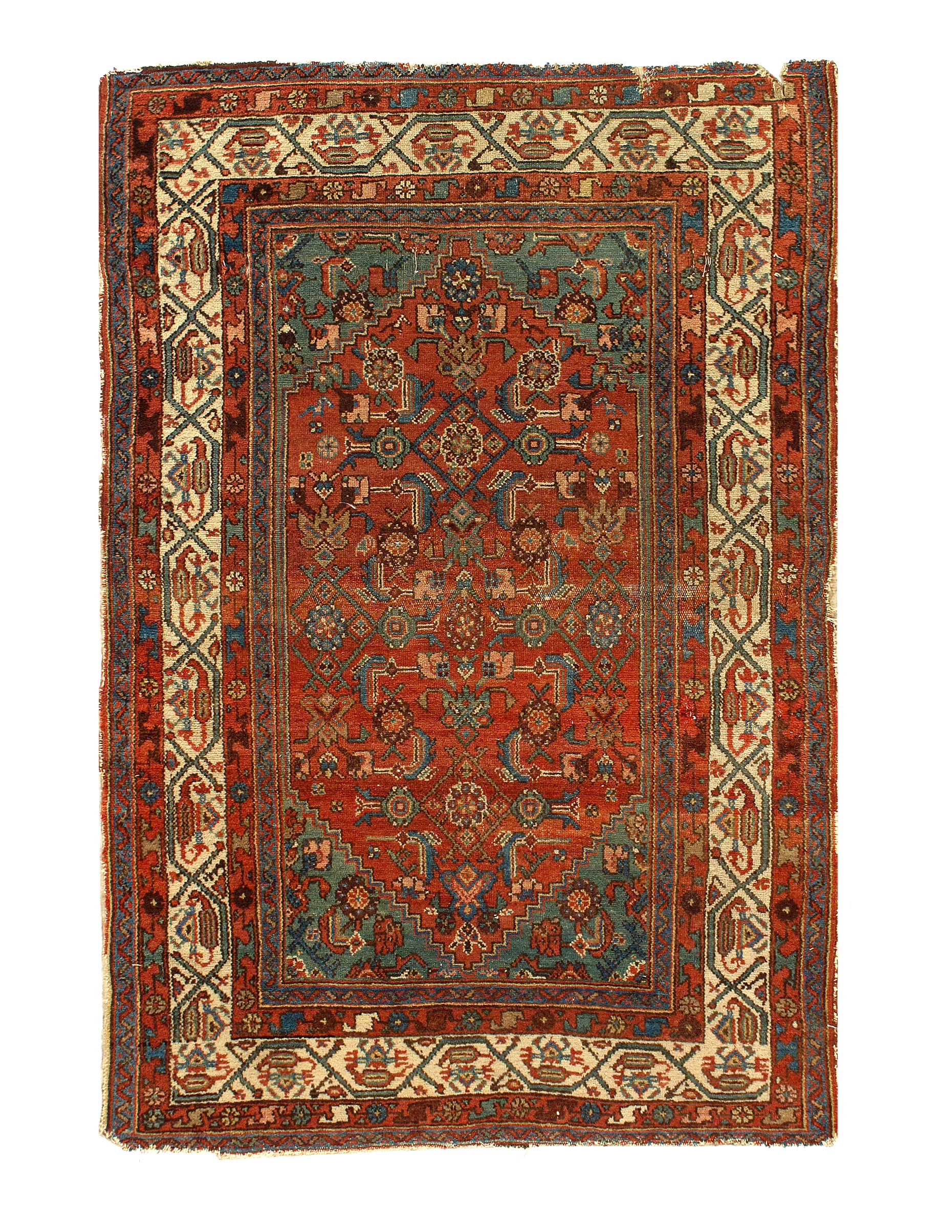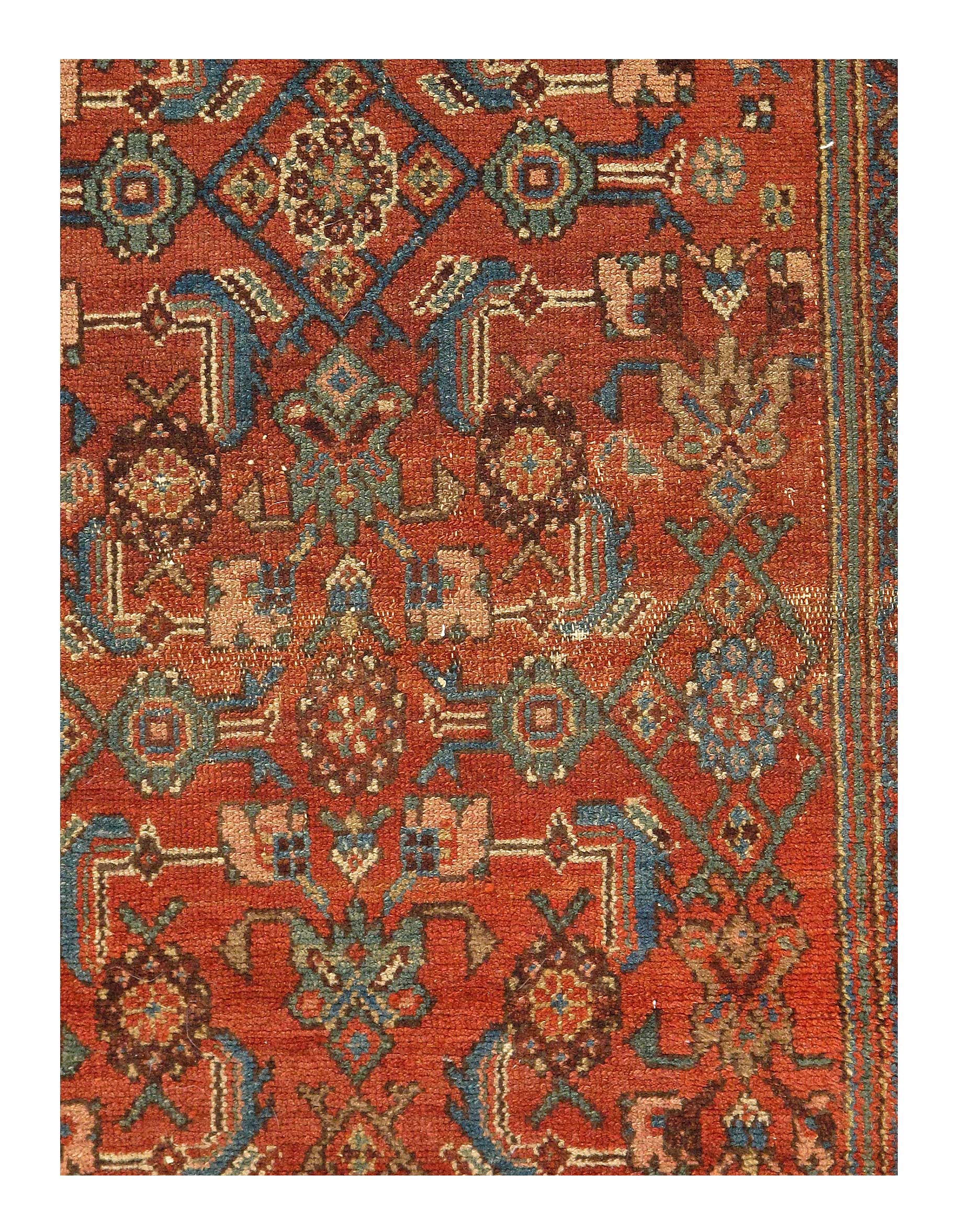 Hand knotted in a village around Hamadan, western Iran. Hamadan rugs can originate from any one of hundreds of villages across the vast region. While materials used can vary from one village to another, one uniting characteristic of this area is that virtually all Hamadan rugs are single-wefted, unlike most tribal rugs which are double-wefted. This particular Persian antique rug is in excellent condition and has superb quality wool that must be felt to be fully realized. As far as Hamadans go, this piece is outstanding.