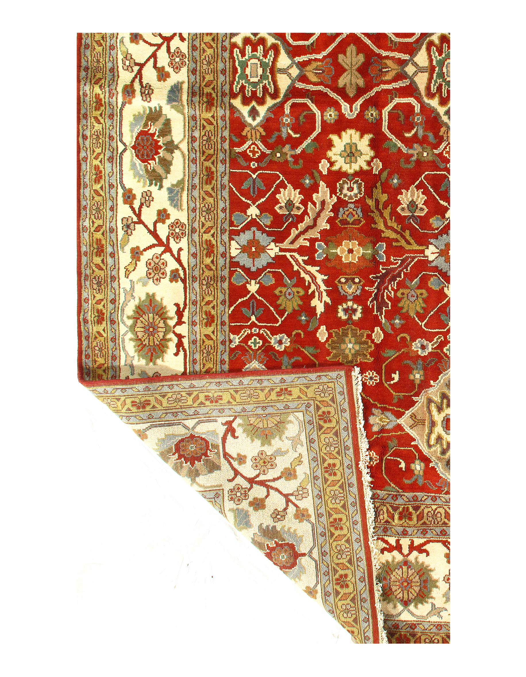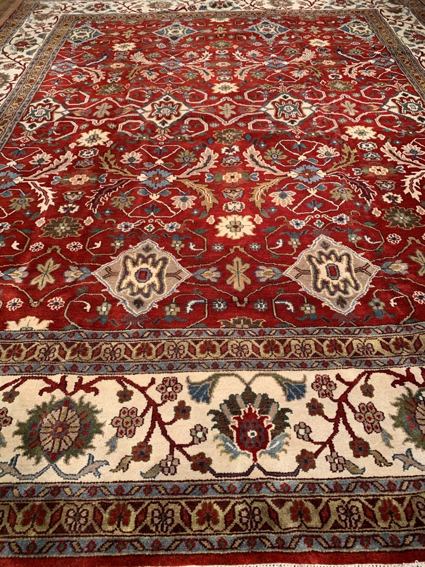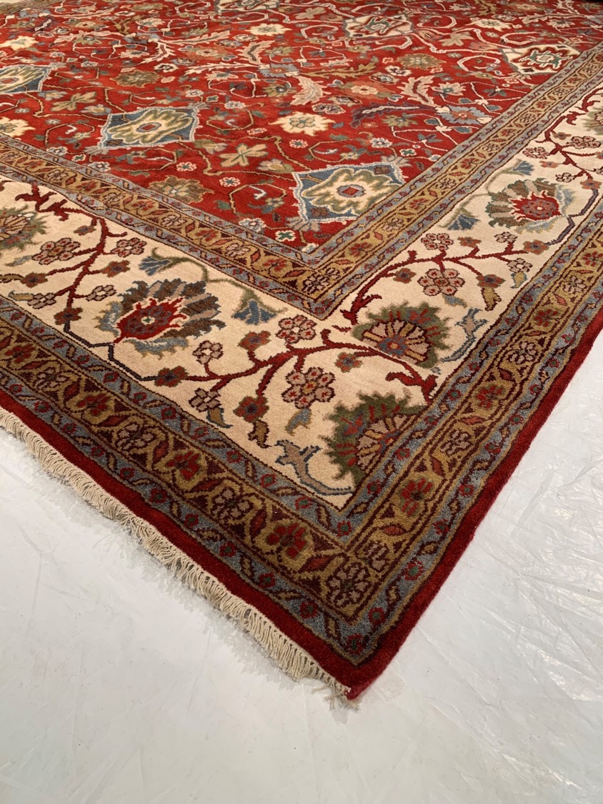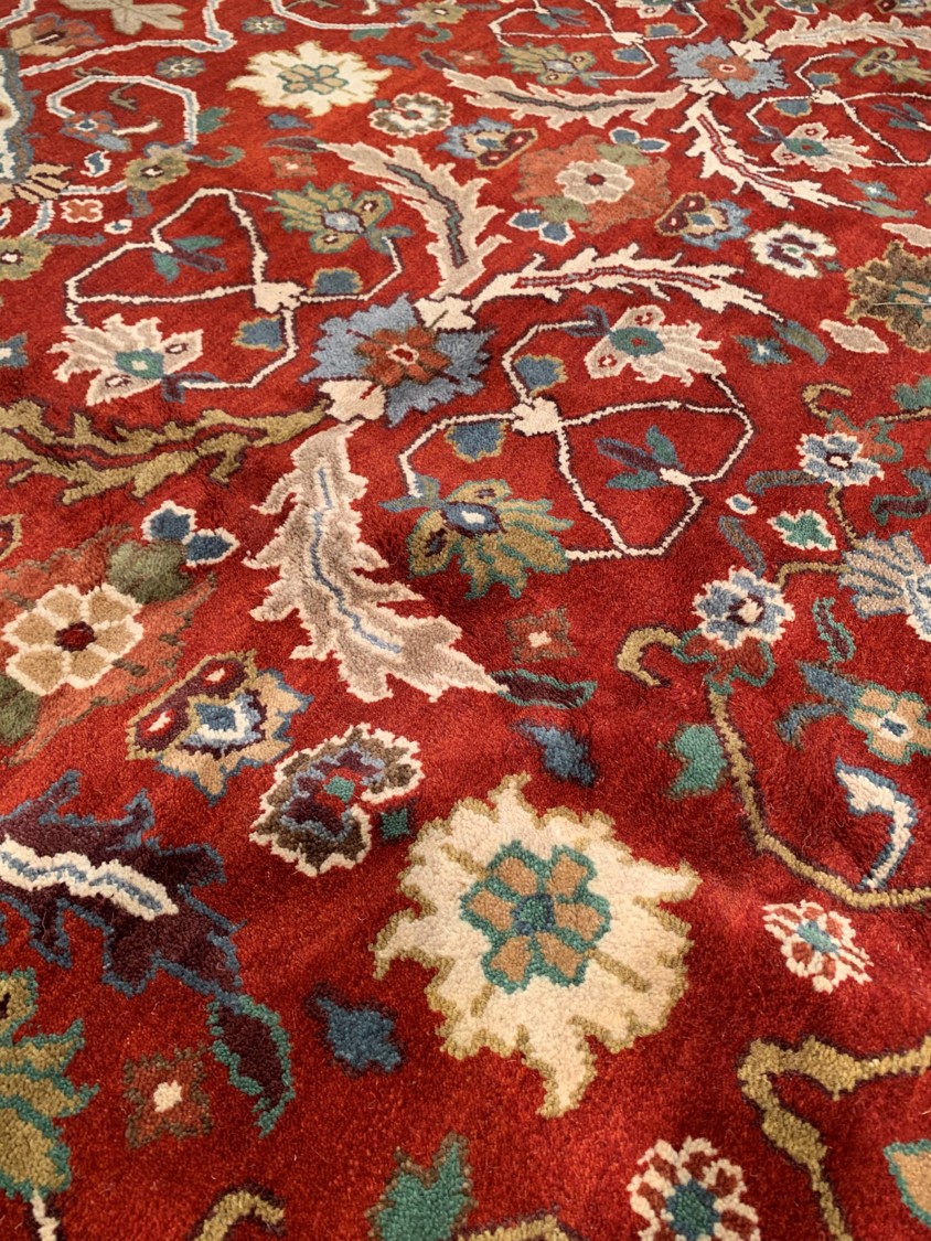 All over Serapi design rug. Hand-knotted in fine lambswool. Originates from India. This rug has a dense, soft pile, and excellent quality, to ensure that you will enjoy the look and feel of your rug for years to come.