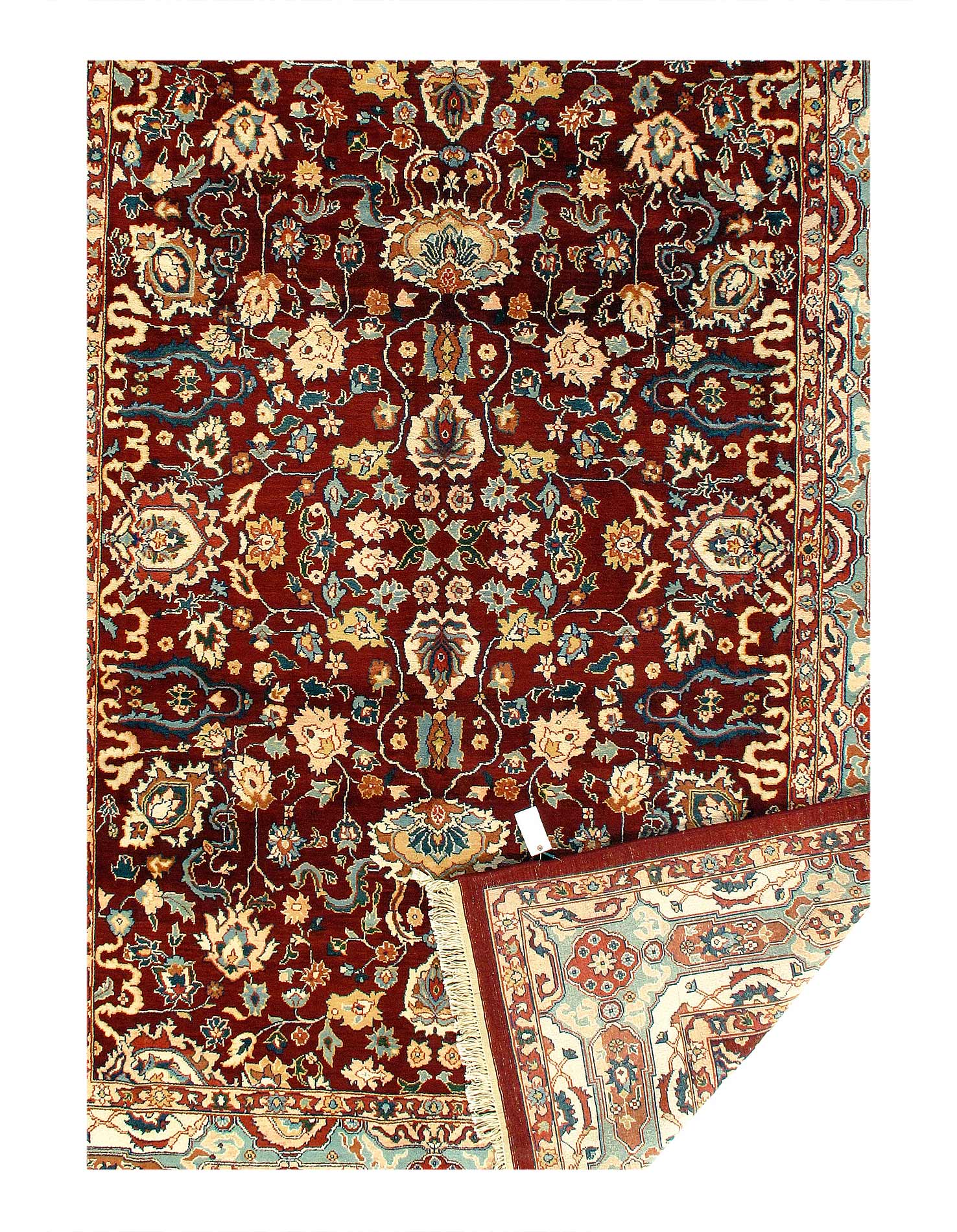 Augra rugs are distinguished by their excellent weave, they have the most diverse display of designs which often reflect scenes of falconry, and ferocious lions. Some of the most well know Augra rugs were inspired by hand painted covers of Ancient books. The dominant colors for these rugs tend to be, cream, red, navy blue, and many more. Their material is often woven with wool or silk. Augra rugs are not only one of the finest groups of Indian rugs but also the most decorative as well.
