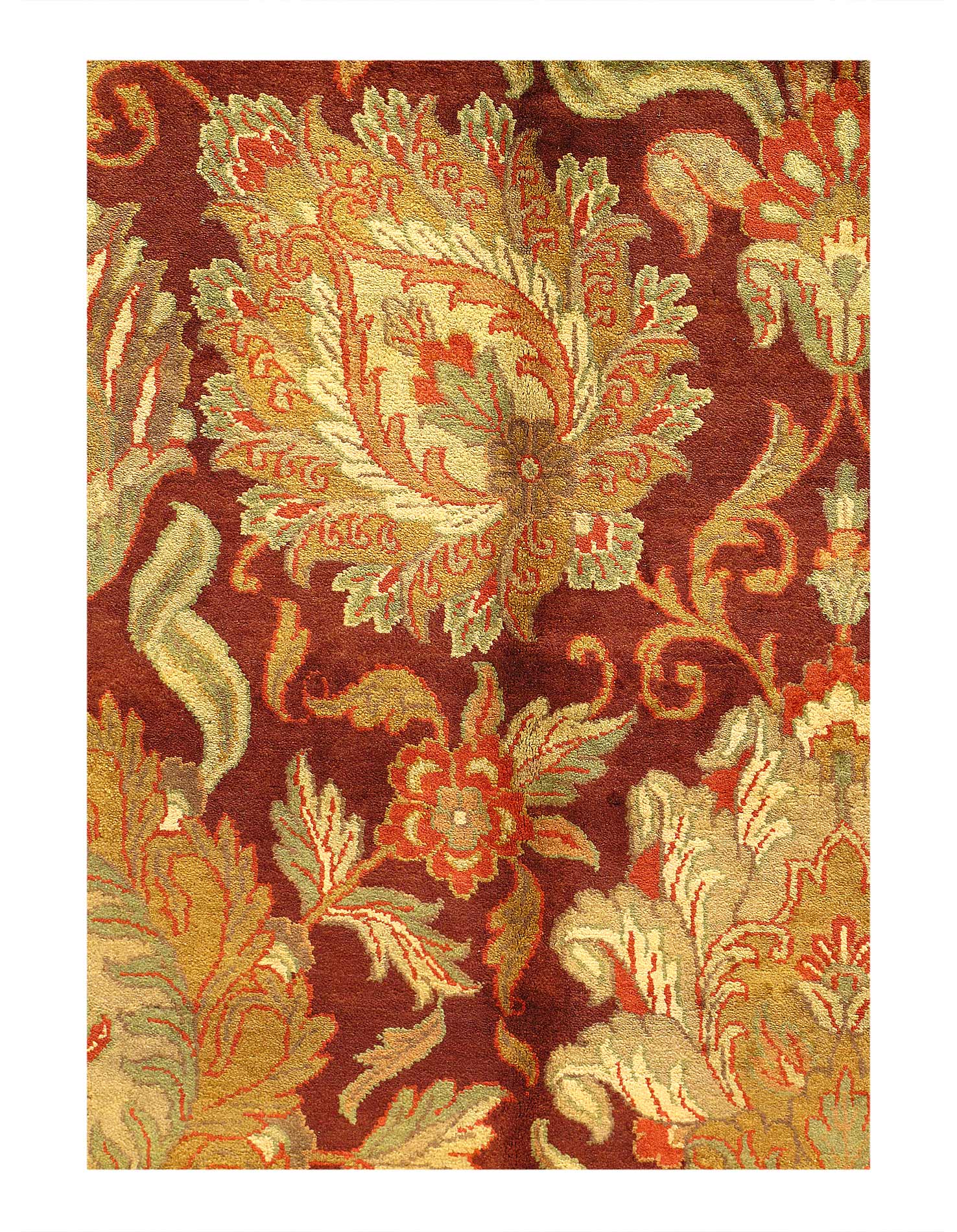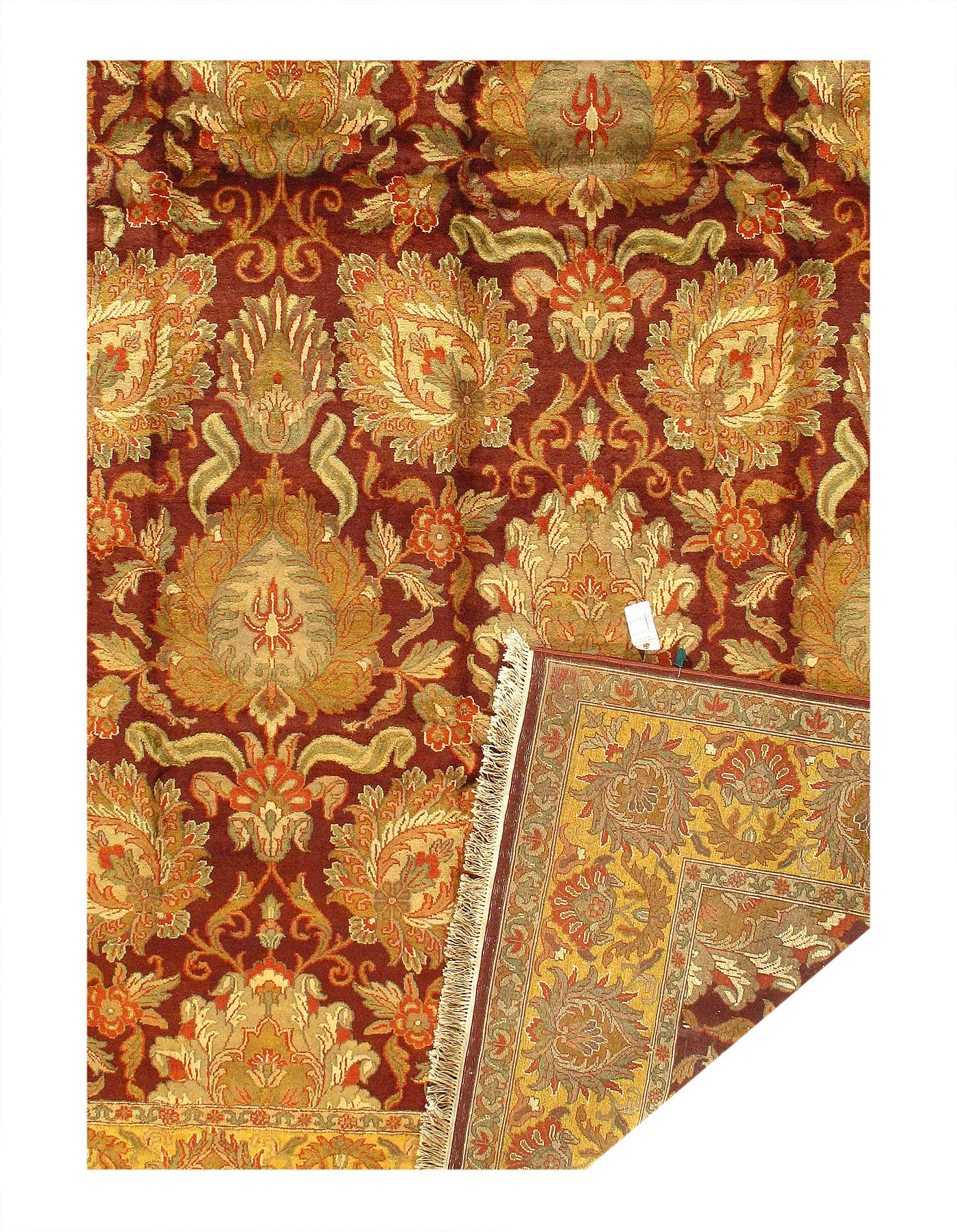 Augra rugs are distinguished by their excellent weave, they have the most diverse display of designs which often reflect scenes of falconry, and ferocious lions. Some of the most well know Augra rugs were inspired by hand painted covers of Ancient books. The dominant colors for these rugs tend to be, cream, red, navy blue, and many more. Their material is often woven with wool or silk. Augra rugs are not only one of the finest groups of Indian rugs but also the most decorative as well.