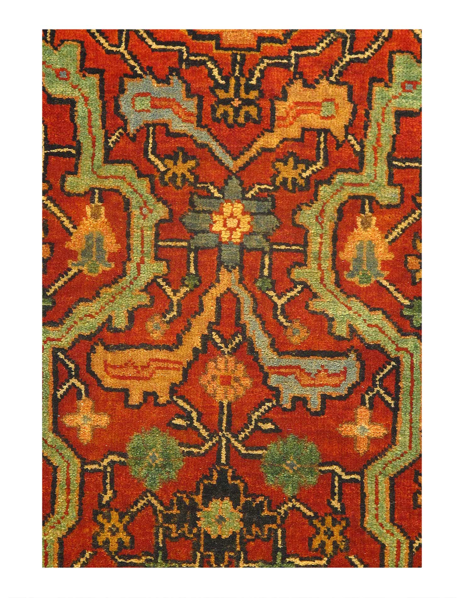 Serapi design rug. Handmade Hand-knotted in fine lambswool. Lamb's Wool on a Cotton Foundation Vegetable Dyed Hand-Spun Wool Rug The Serapi Rug is one of the most sought after rugs particularly in the USA and England for many years. No other rug so epitomizes the "East Coast Establishment" than the Serapi carpet This rug has a dense, soft pile, and excellent quality, to ensure that you will enjoy the look and feel of your rug for years to come .