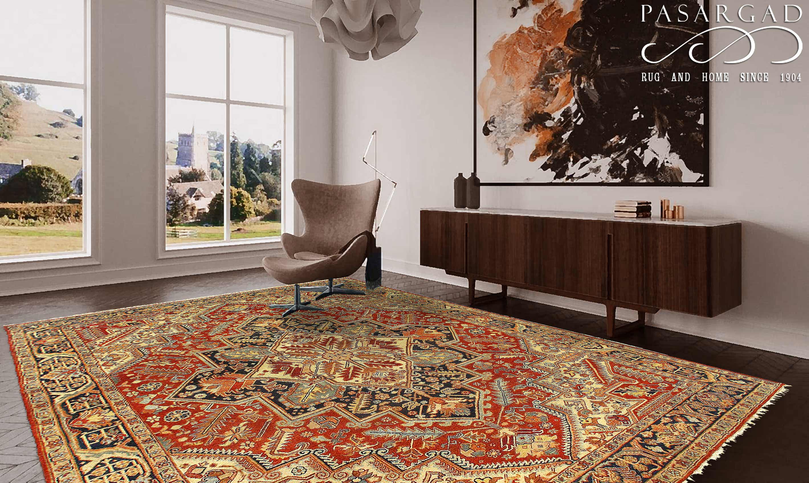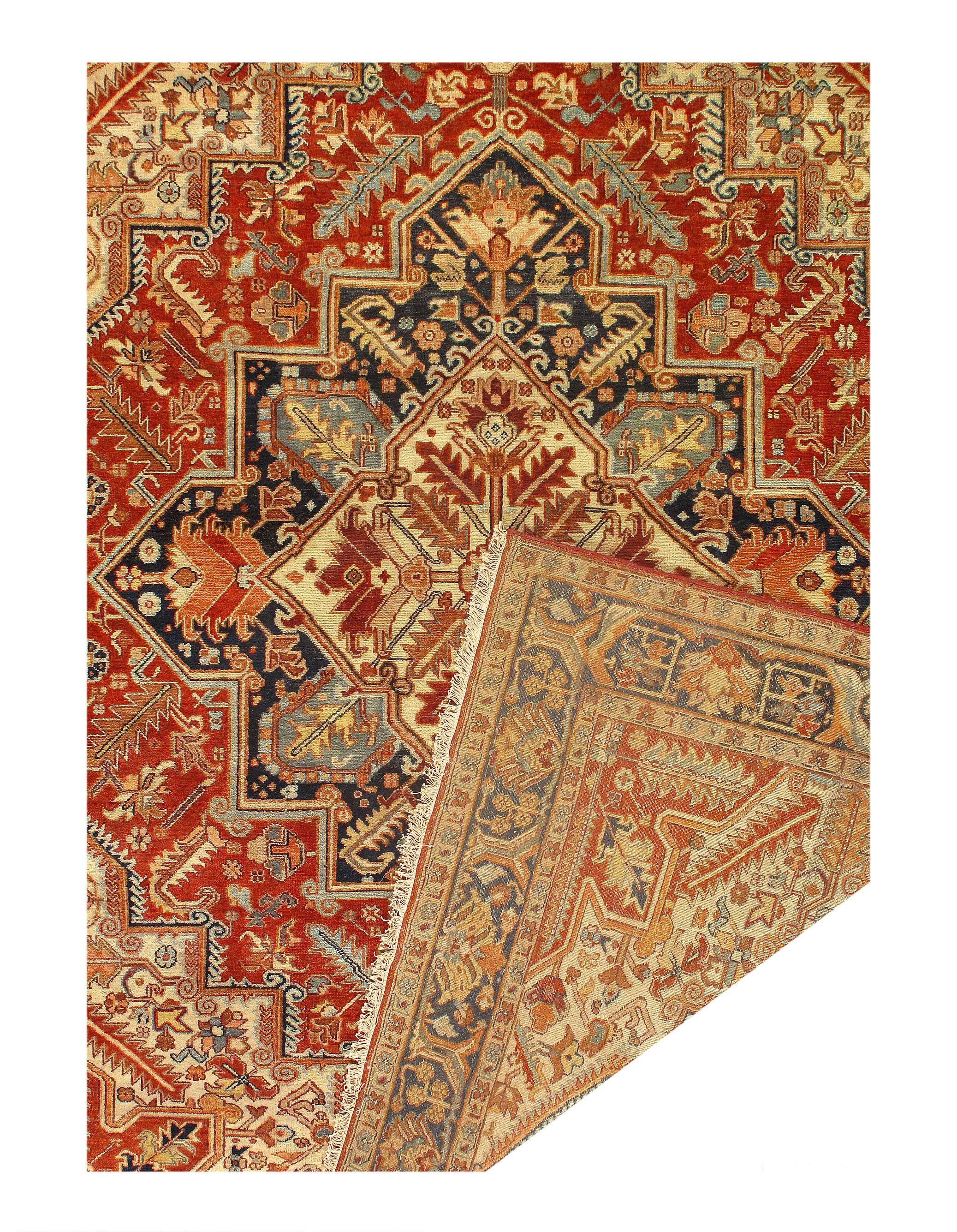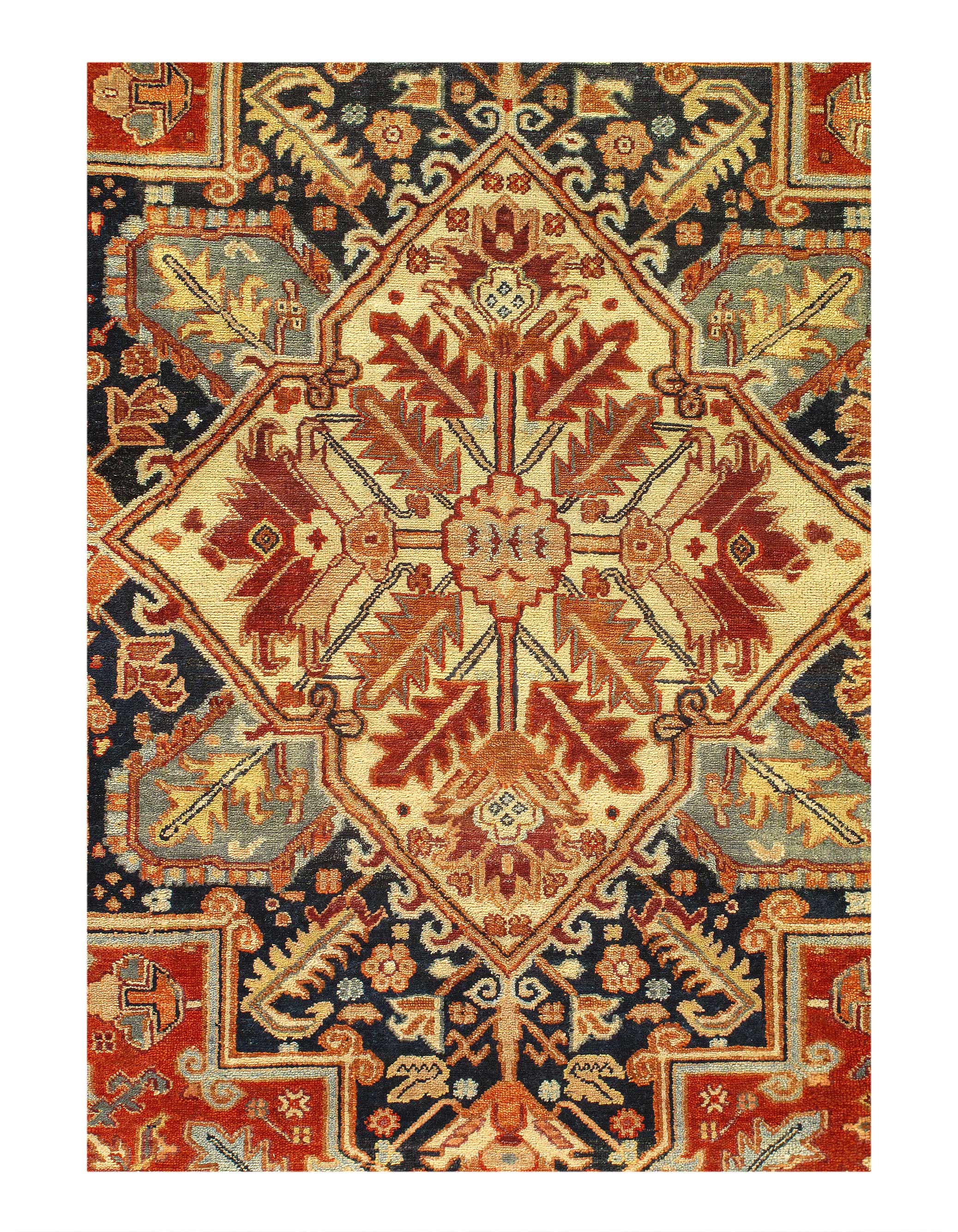 Serapi design rug. Handmade Hand-knotted in fine lambswool. Lamb's Wool on a Cotton Foundation Vegetable Dyed Hand-Spun Wool Rug The Serapi Rug is one of the most sought after rugs particularly in the USA and England for many years. No other rug so epitomizes the "East Coast Establishment" than the Serapi carpet This rug has a dense, soft pile, and excellent quality, to ensure that you will enjoy the look and feel of your rug for years to come .