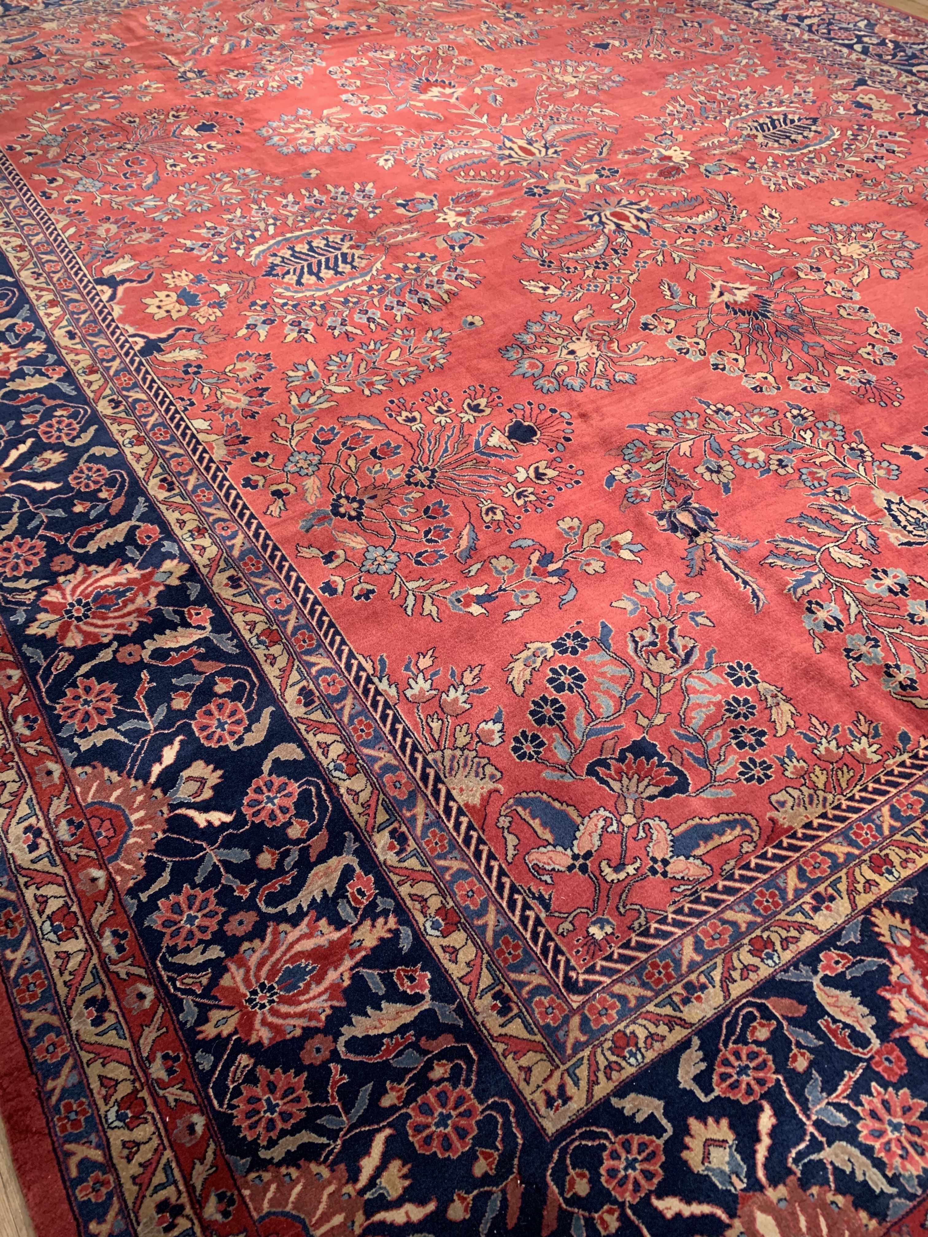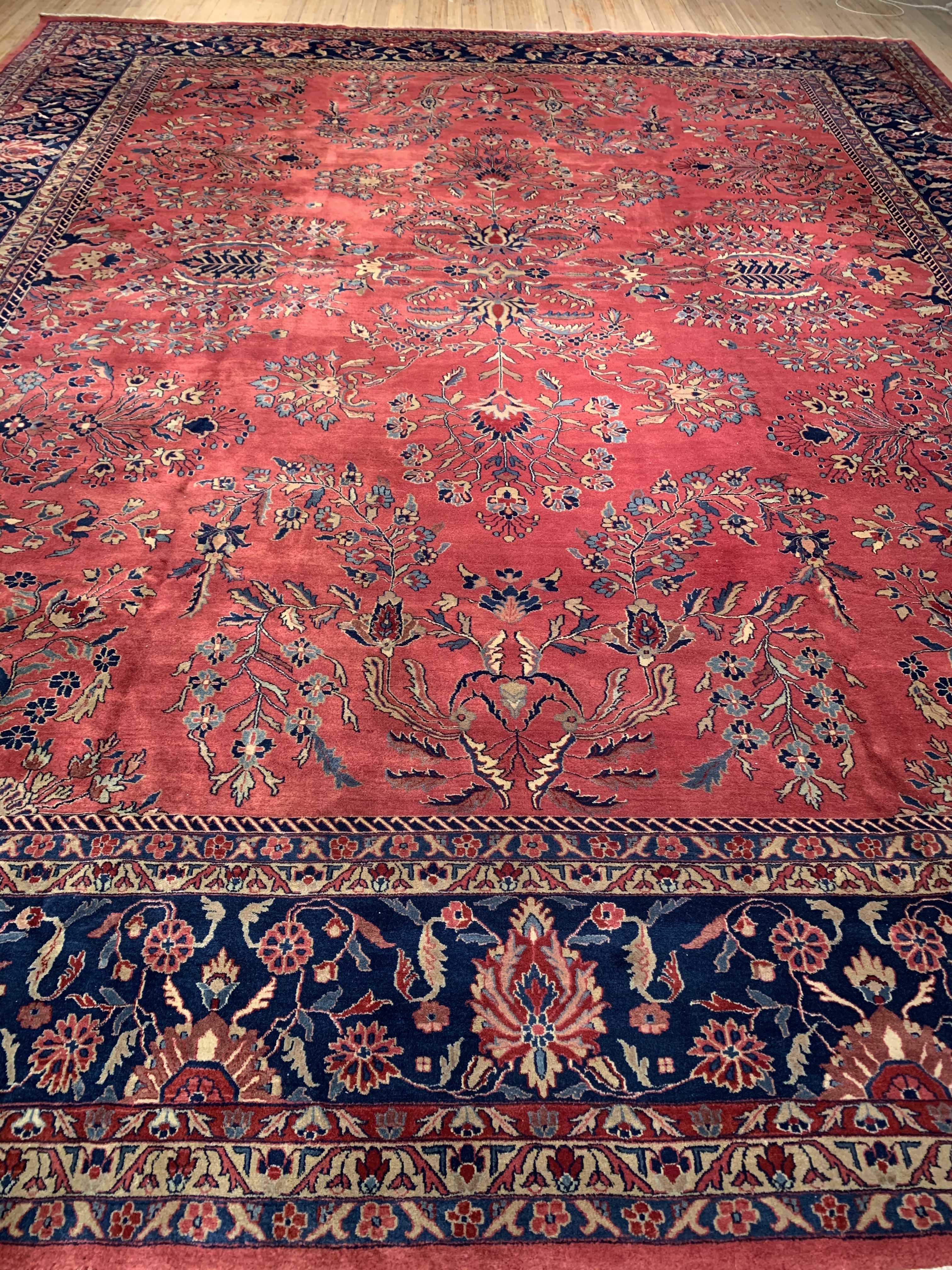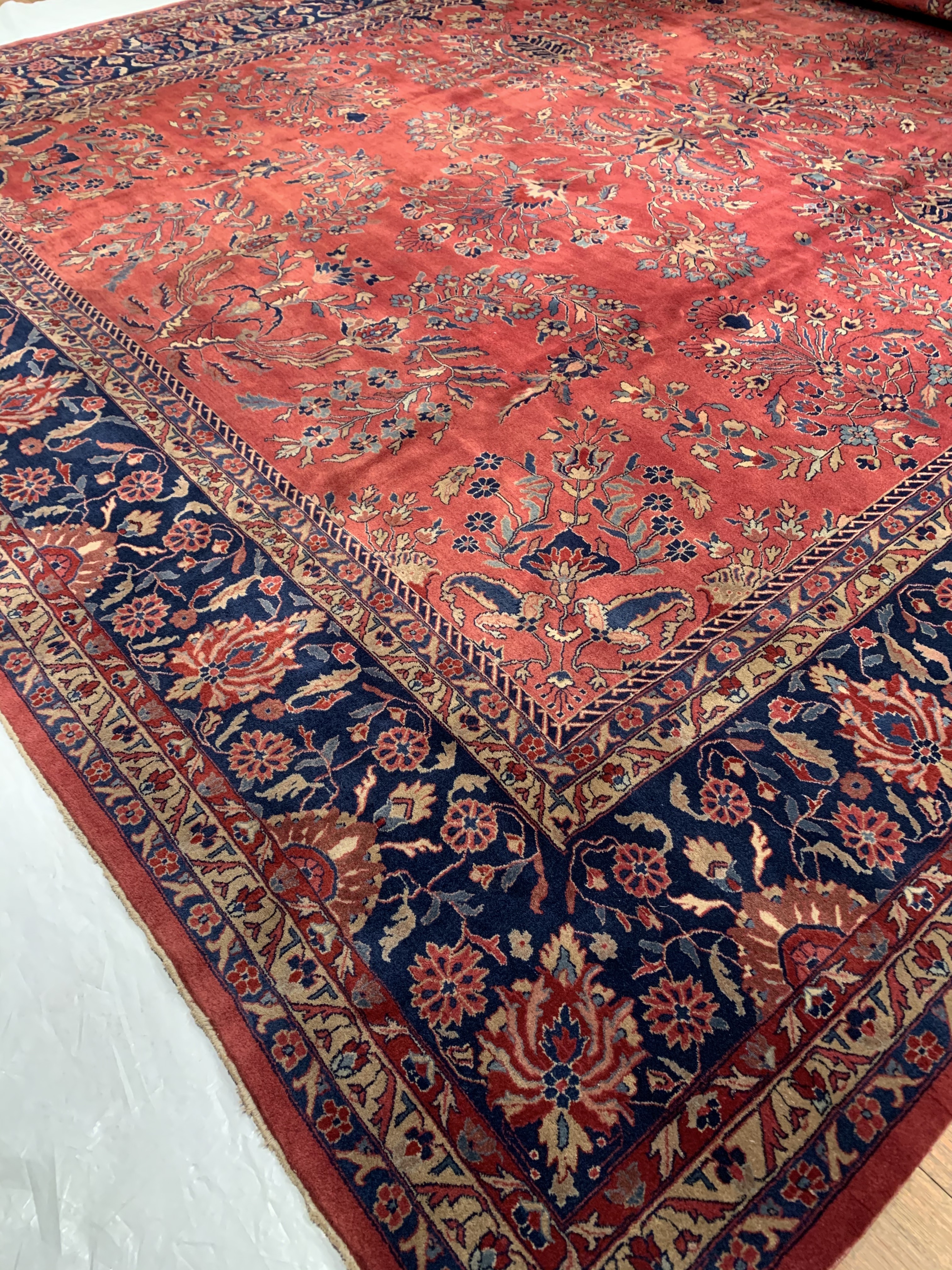 Origina persian Sarouk Muhajeran Design Handmade Hand-knotted Lamb's Wool on a Cotton Foundation Hand-Spun Wool Rug Vegetable Dyed This rug has a dense, soft pile, and excellent quality, to ensure that you will enjoy the look and feel of your rug for years to come. From India D04342