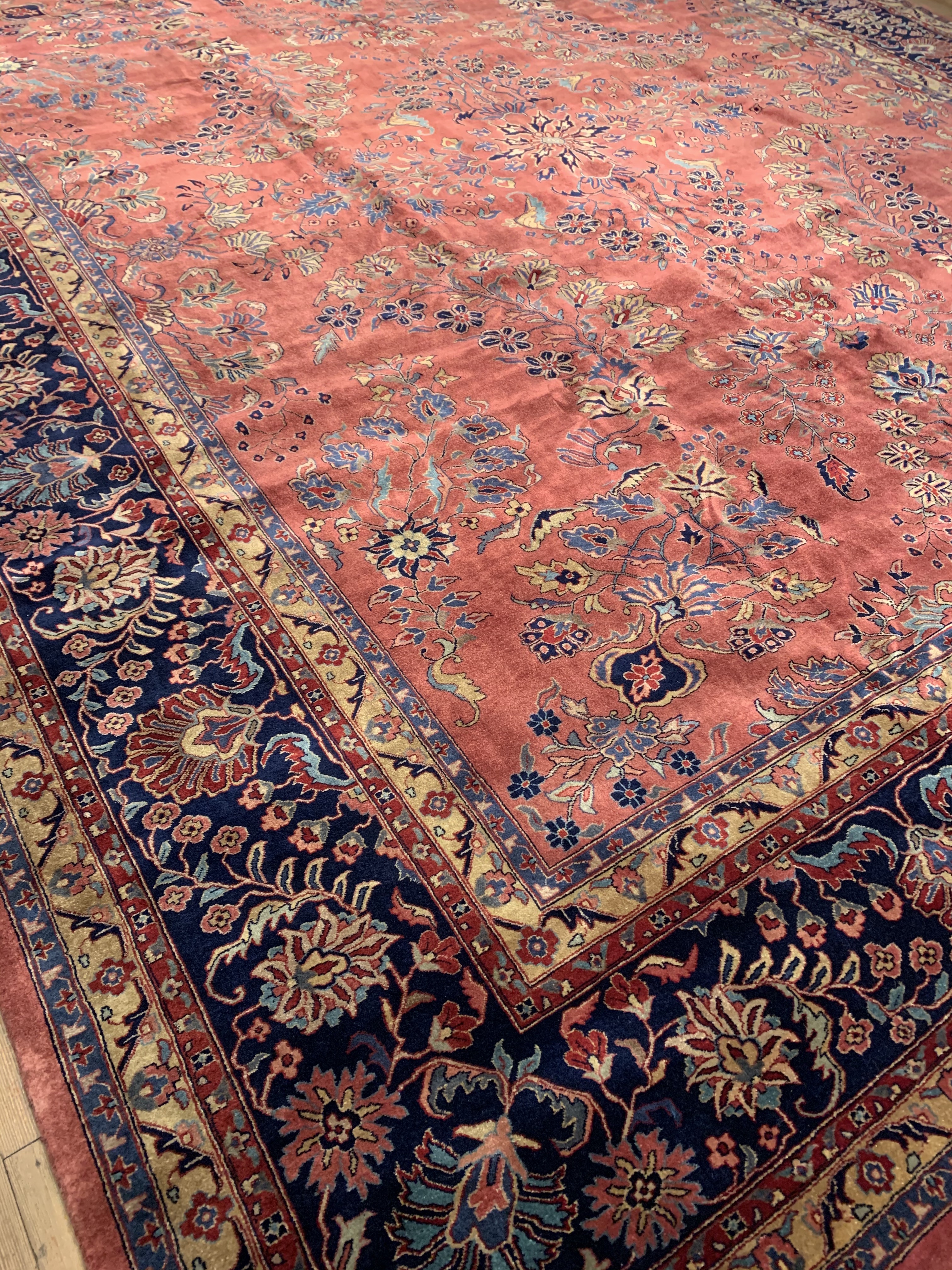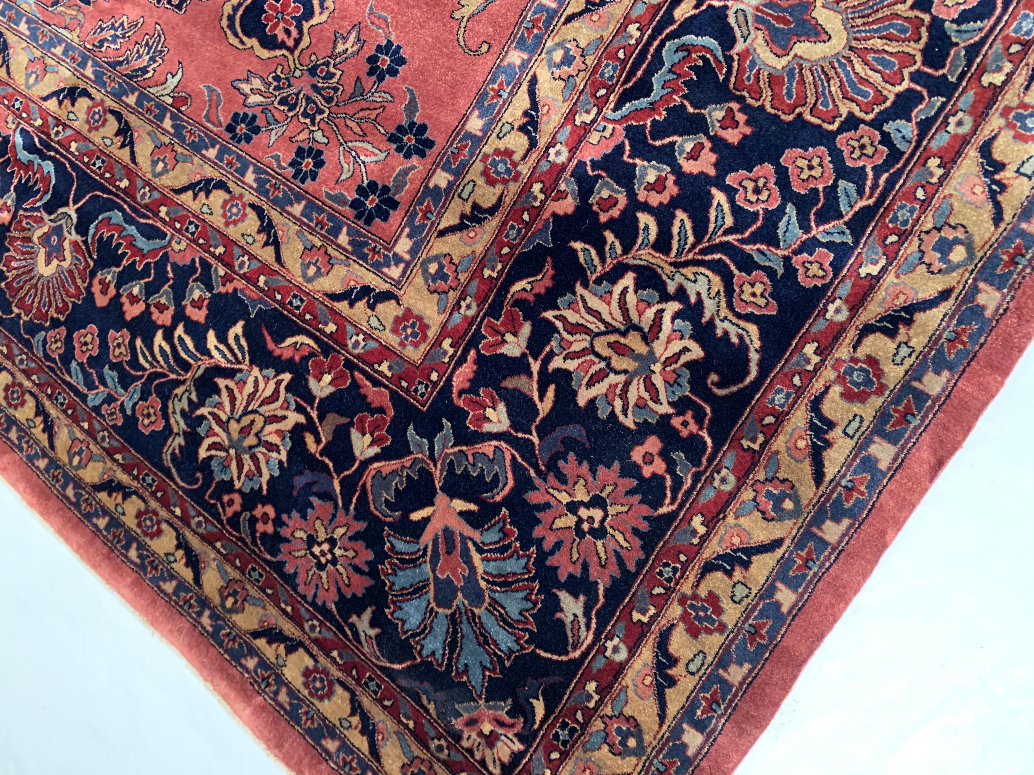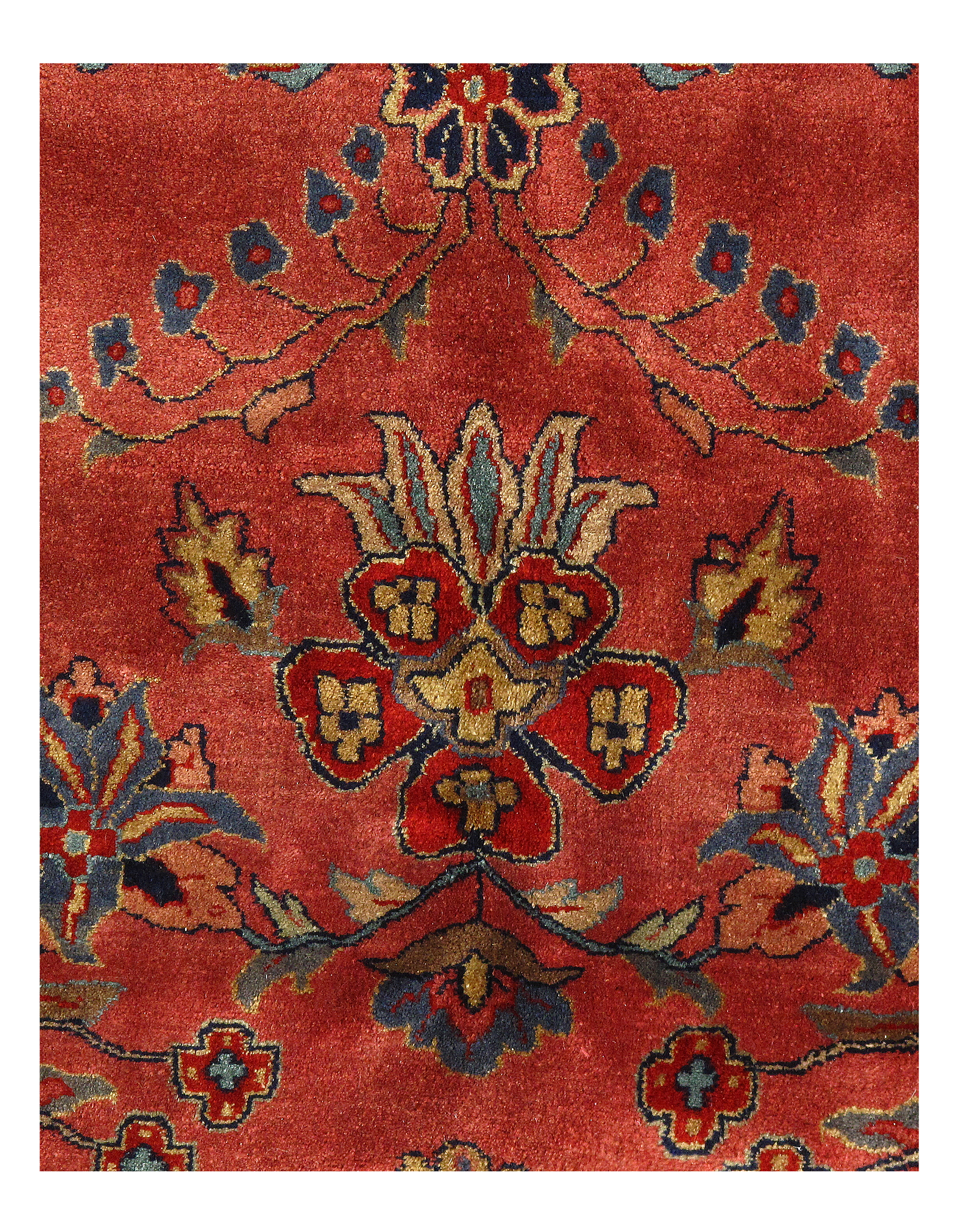 Hand knotted by weavers in a workshop in northern India using blended local with worsted New Zealand wool. The detailed traditional design requires a very fine weave, and the weavers, like all artists, have to be continually focused while working. Their hard work pays off when a rug comes out right like this one, a beautiful recreation of a Persian Sarouk. This rug will bring quality and taste to any space it lands. Pasargad rugs from these workshops are the finest traditional Indian rugs due to their fine weave, excellent workmanship, and high quality materials.