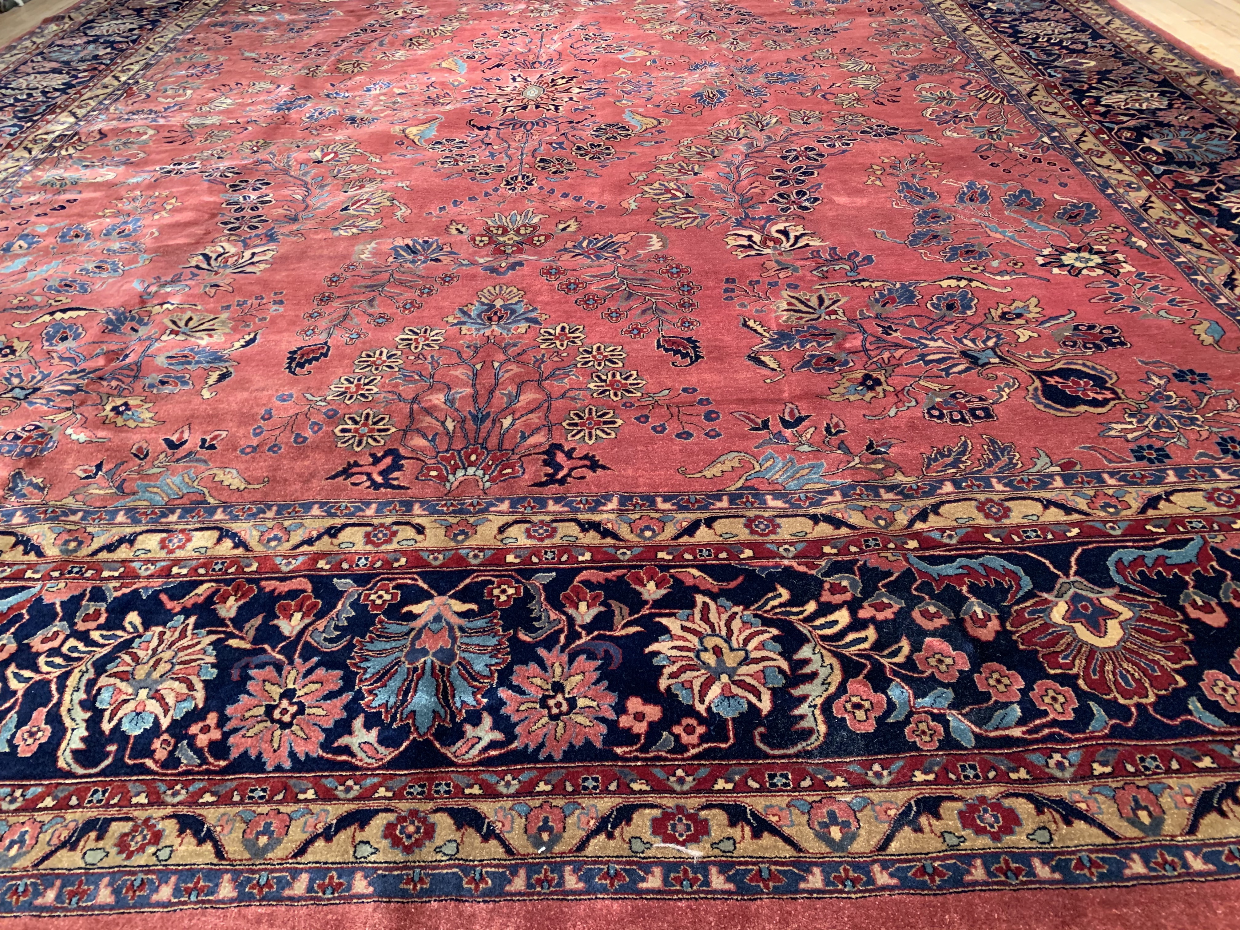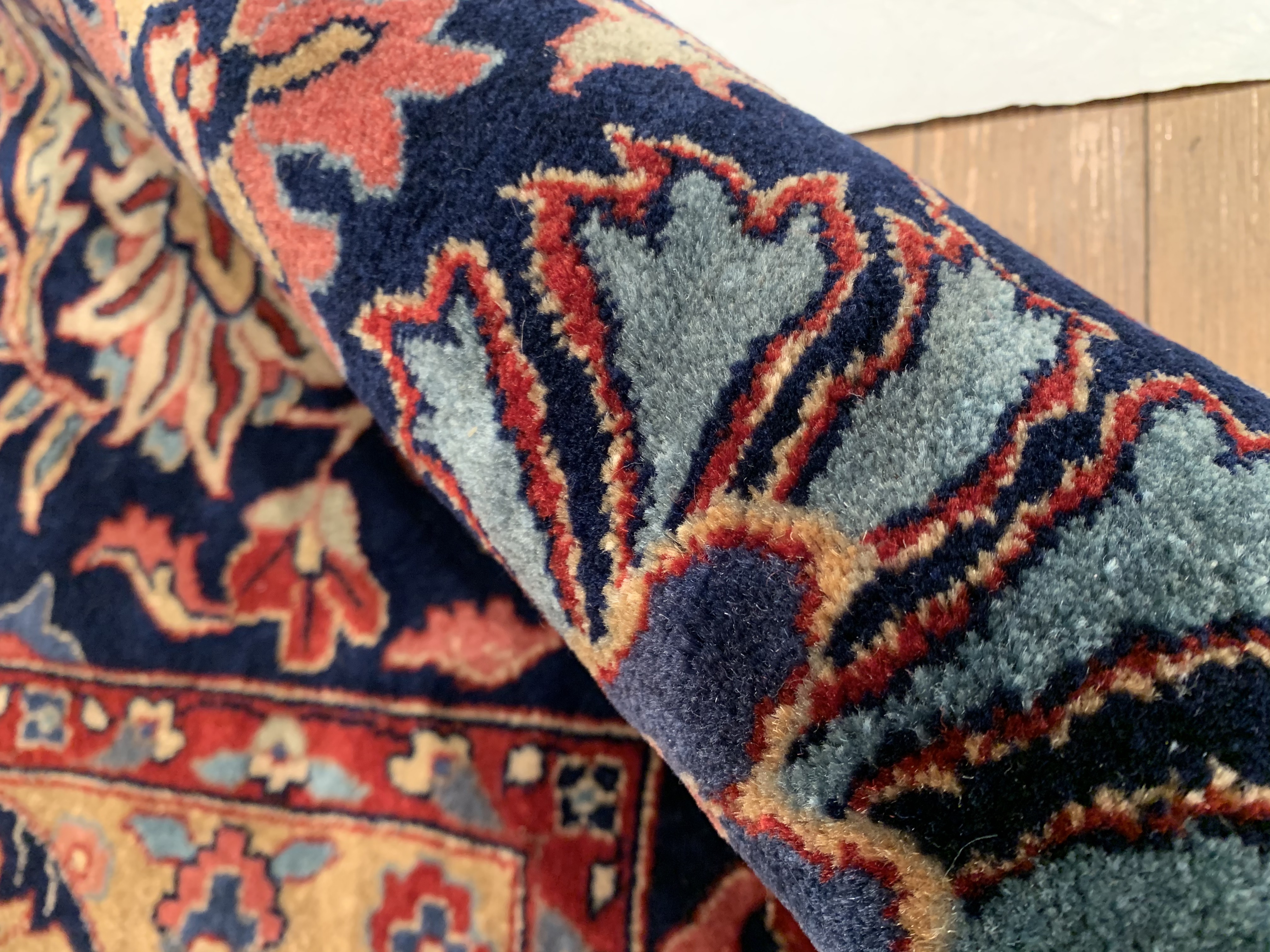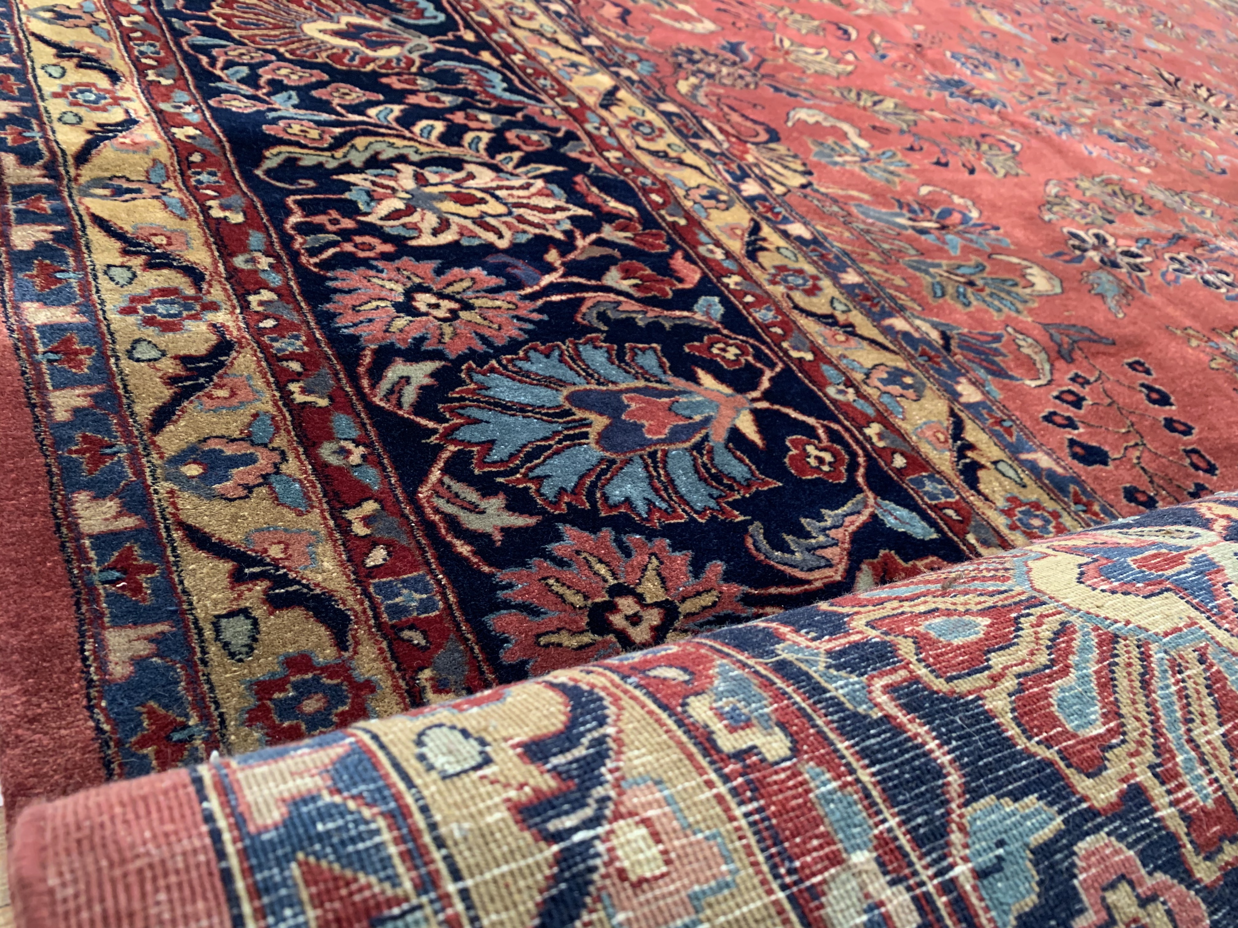 Hand knotted by weavers in a workshop in northern India using blended local with worsted New Zealand wool. The detailed traditional design requires a very fine weave, and the weavers, like all artists, have to be continually focused while working. Their hard work pays off when a rug comes out right like this one, a beautiful recreation of a Persian Sarouk. This rug will bring quality and taste to any space it lands. Pasargad rugs from these workshops are the finest traditional Indian rugs due to their fine weave, excellent workmanship, and high quality materials.