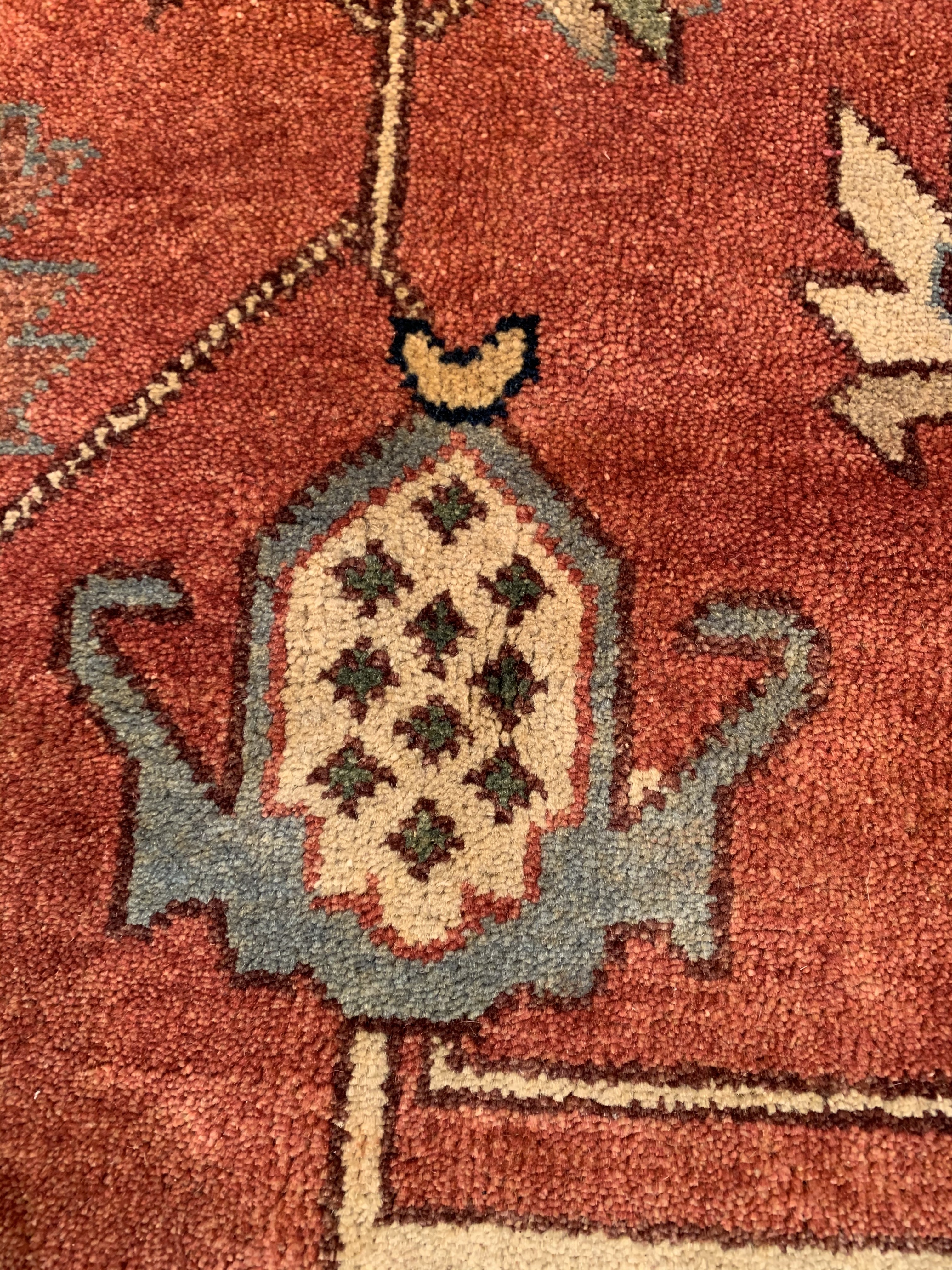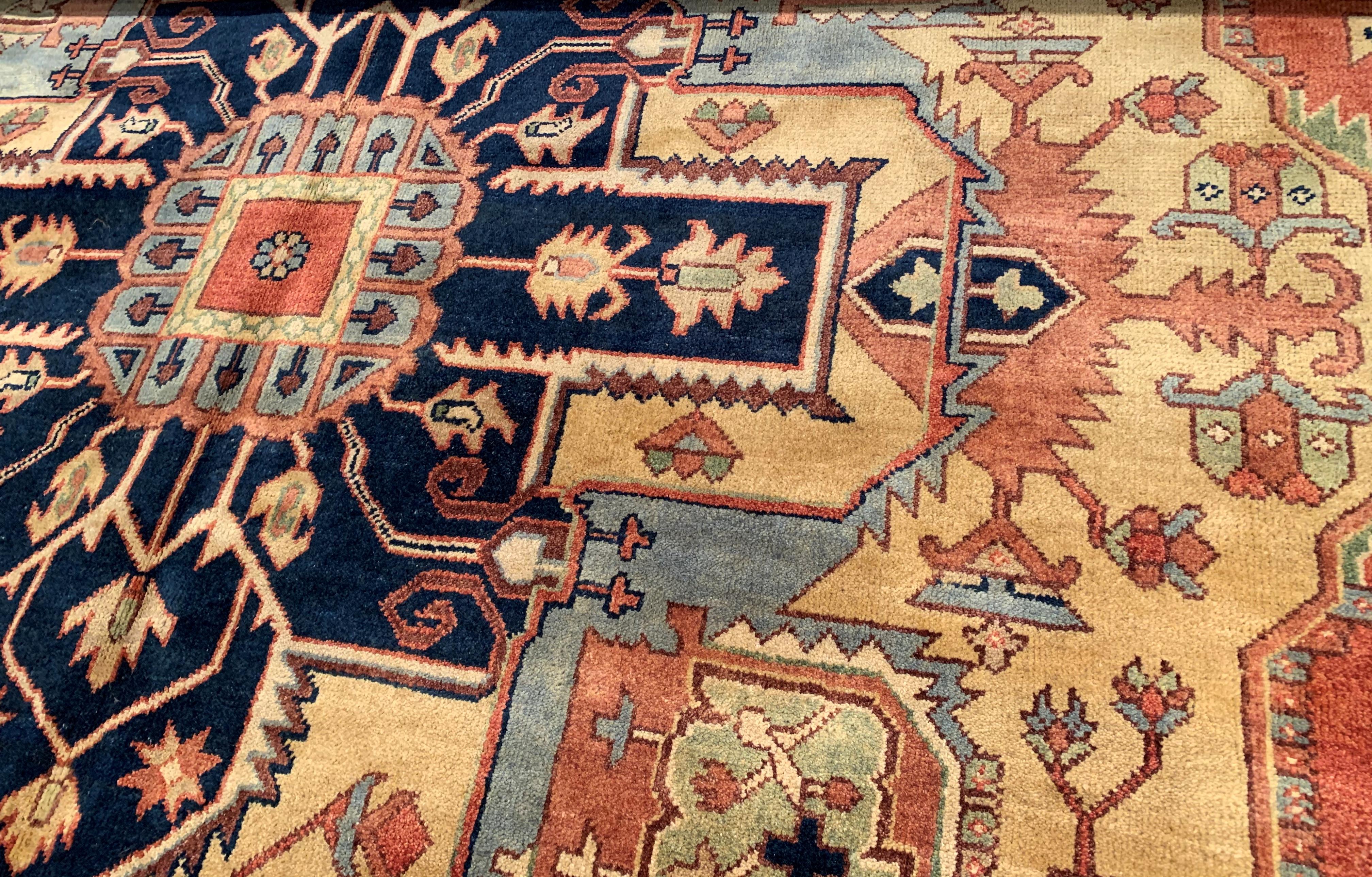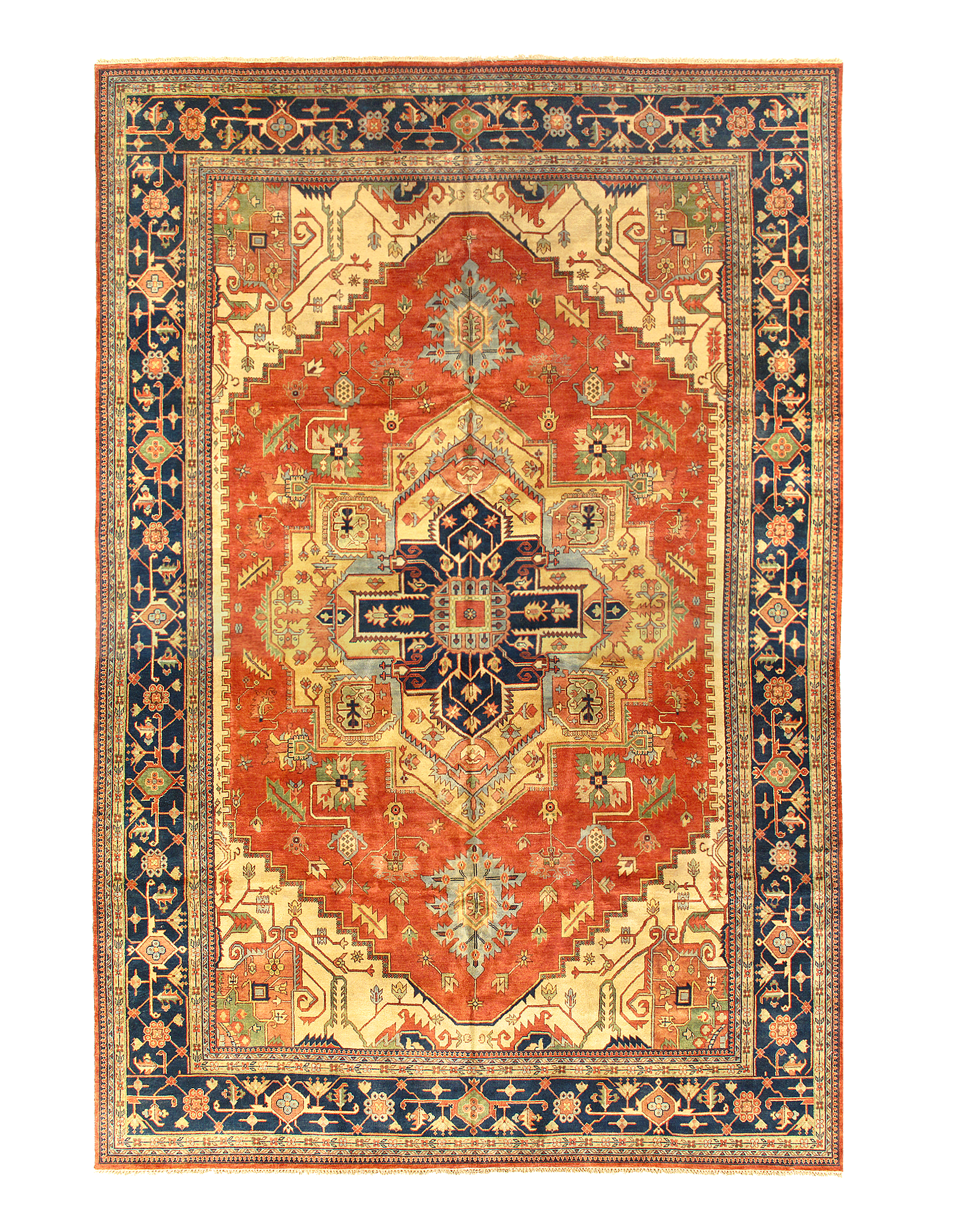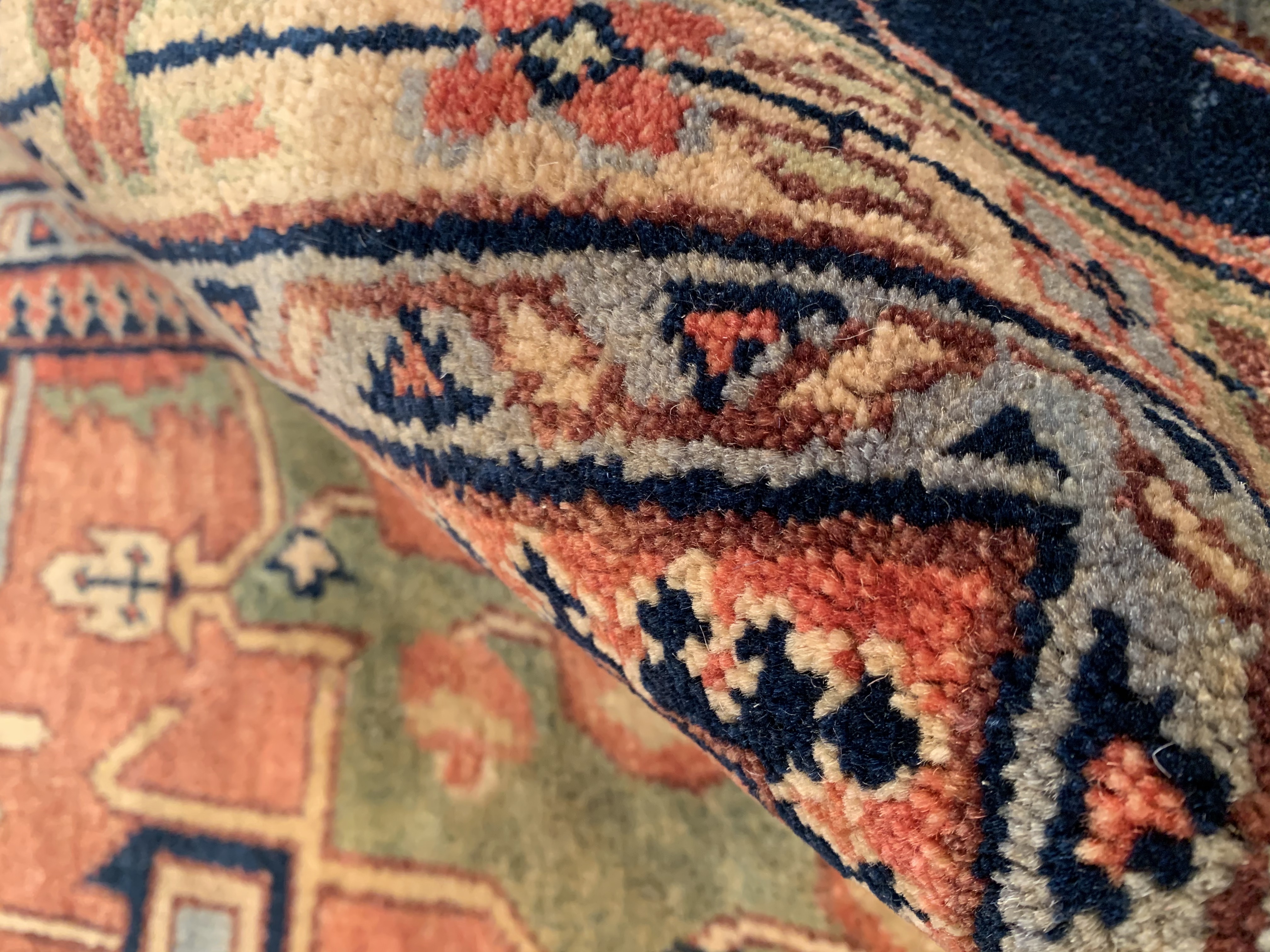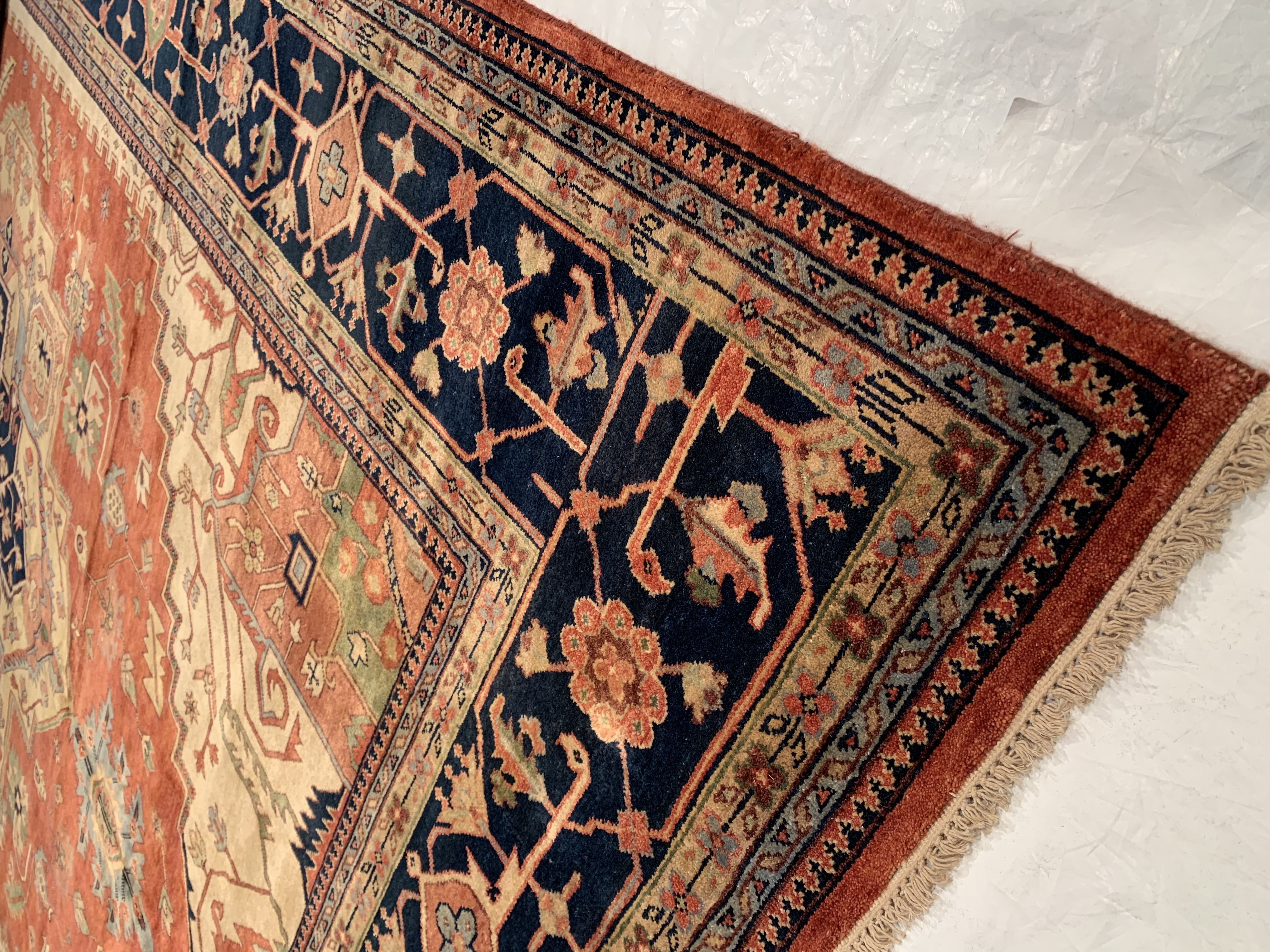 Serapi design rug. Handmade Hand-knotted in fine lambswool. Lamb's Wool on a Cotton Foundation Vegetable Dyed Hand-Spun Wool Rug The Serapi Rug is one of the most sought after rugs particularly in the USA and England for many years. No other rug so epitomizes the "East Coast Establishment" than the Serapi carpet This rug has a dense, soft pile, and excellent quality, to ensure that you will enjoy the look and feel of your rug for years to come .