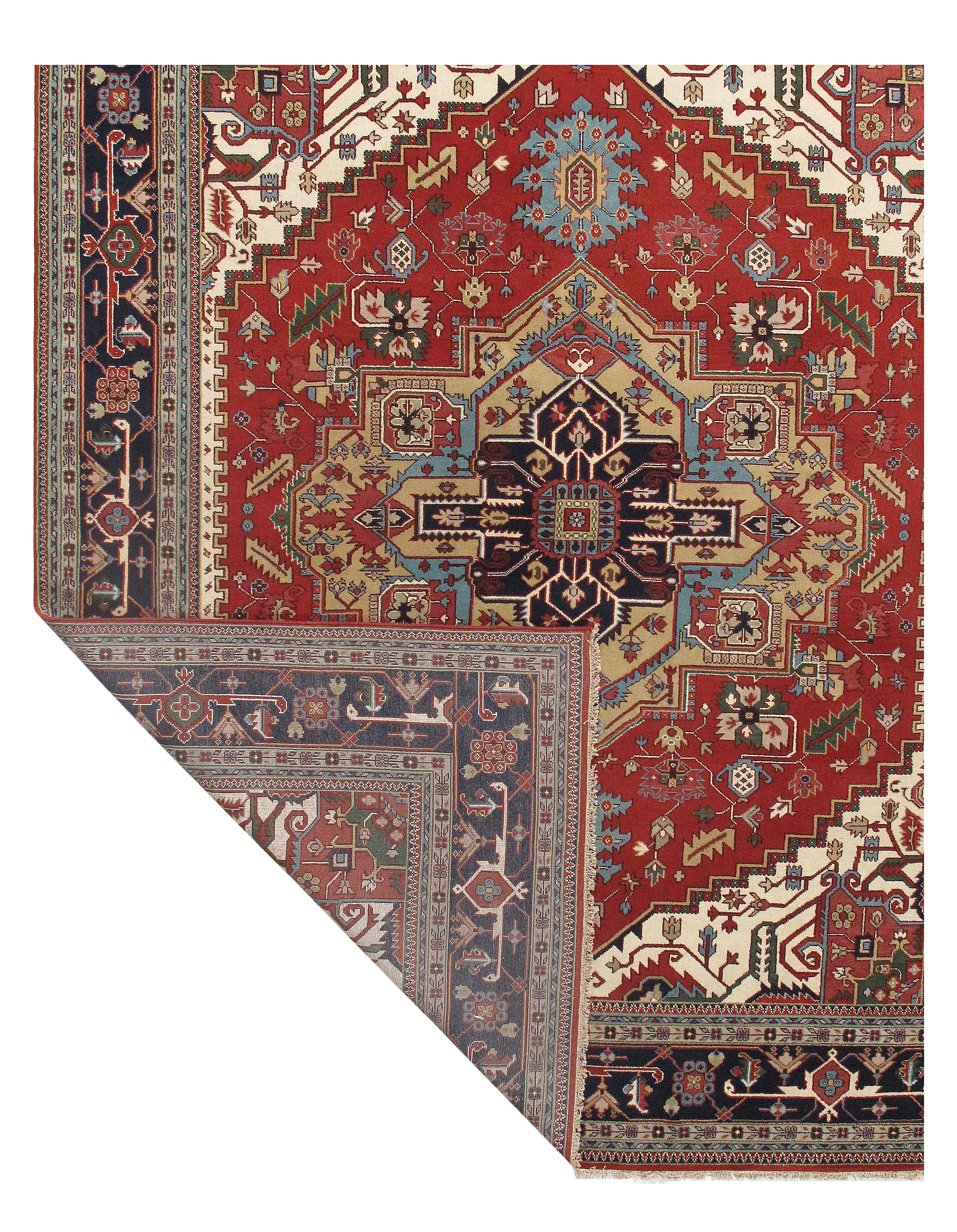 Serapi design rug. Handmade and hand-knotted in fine lambswool on a cotton foundation. Vegetable dyed hand-spun wool rug.