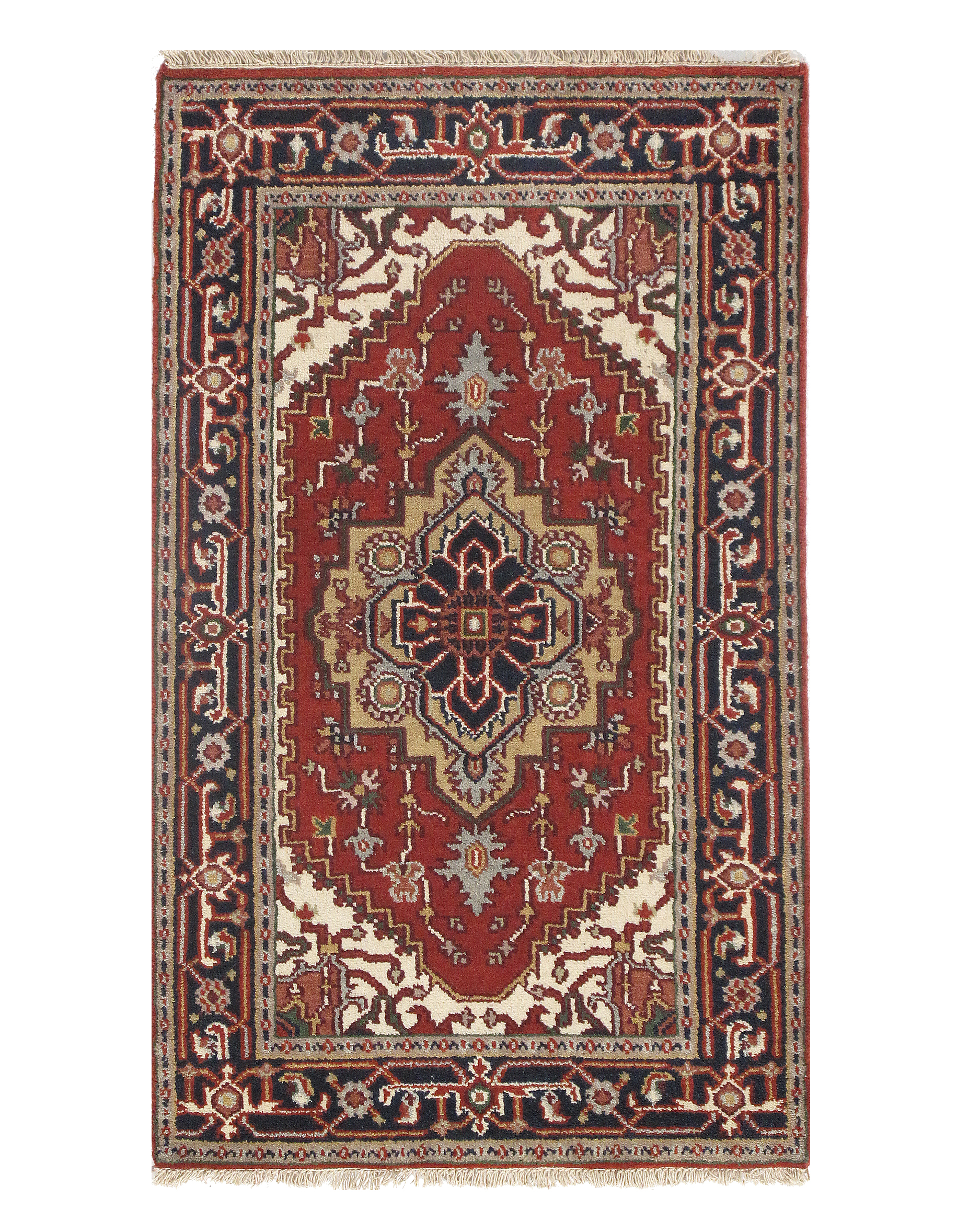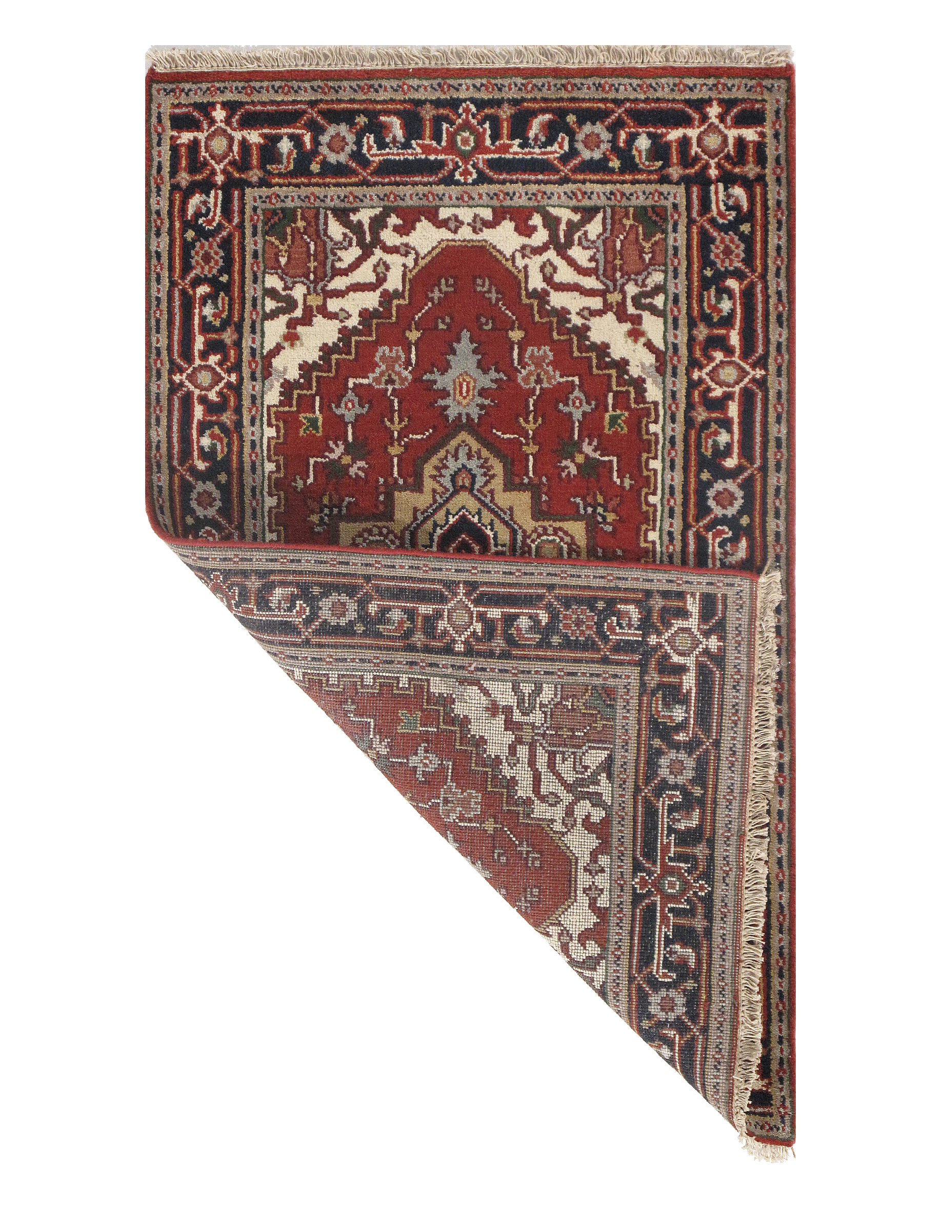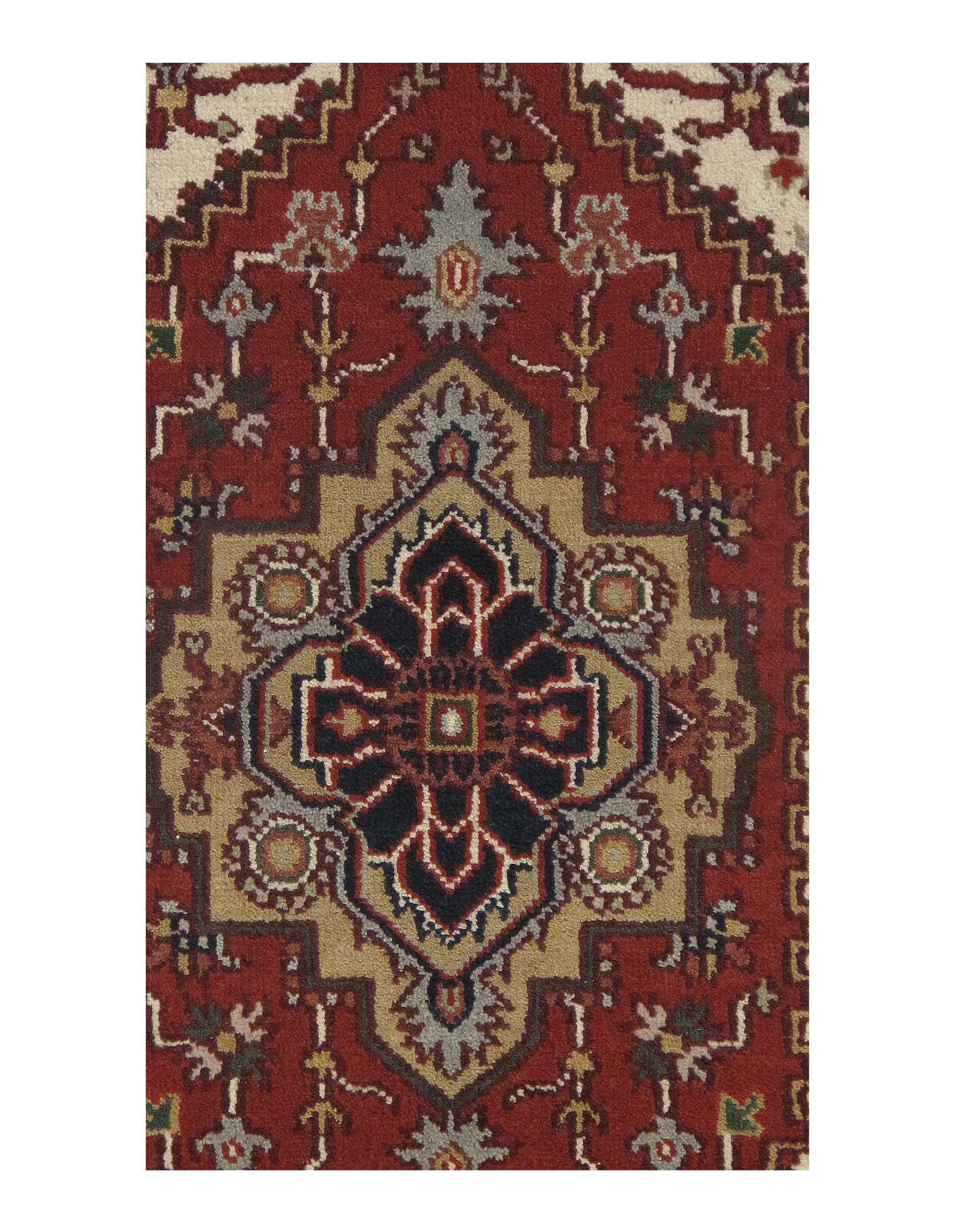 Indo Serapi design rug. Handmade Hand-knotted in fine lambswool. Lamb's Wool on a Cotton Foundation Vegetable Dyed Hand-Spun Wool Rug The Serapi Rug is one of the most sought after rugs particularly in the USA and England for many years. No other rug so epitomizes the "East Coast Establishment" than the Serapi carpet This rug has a dense, soft pile, and excellent quality, to ensure that you will enjoy the look and feel of your rug for years to come