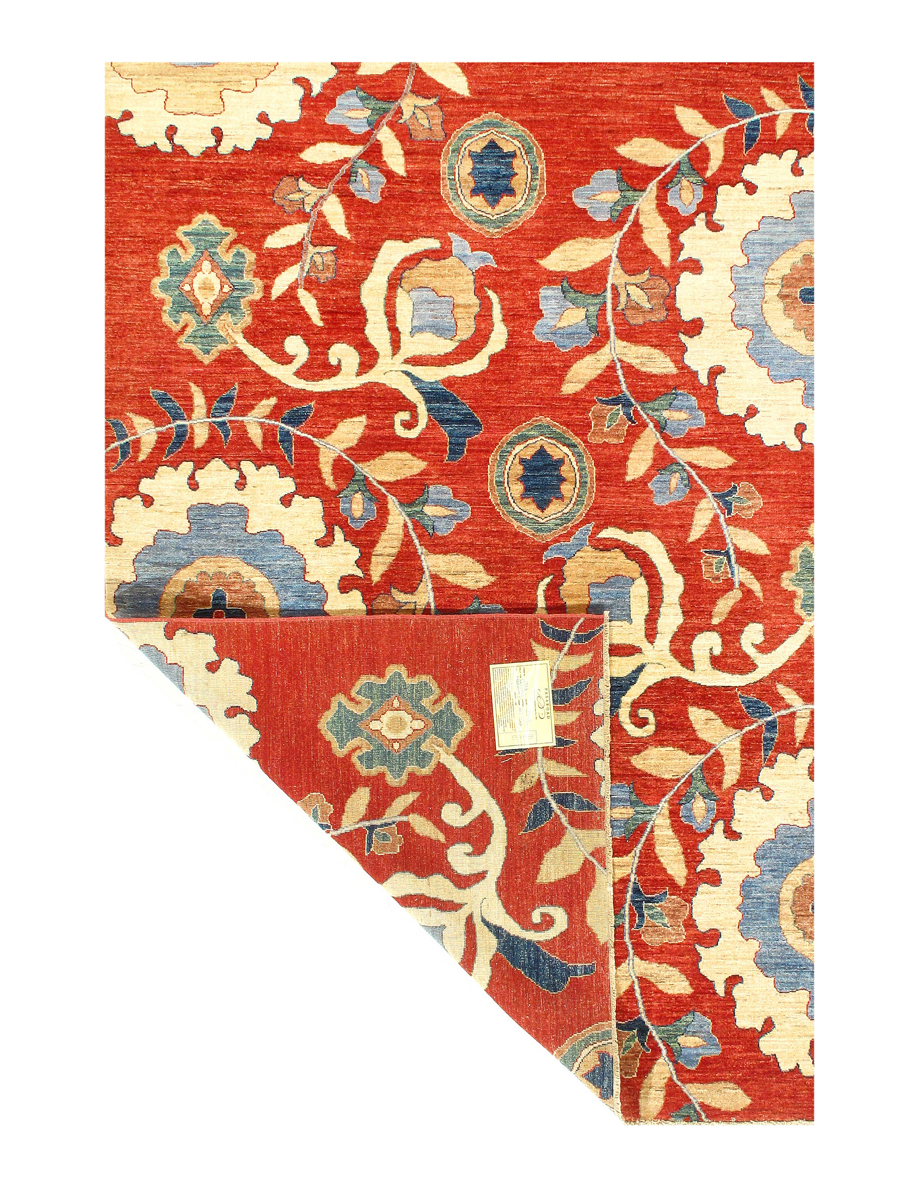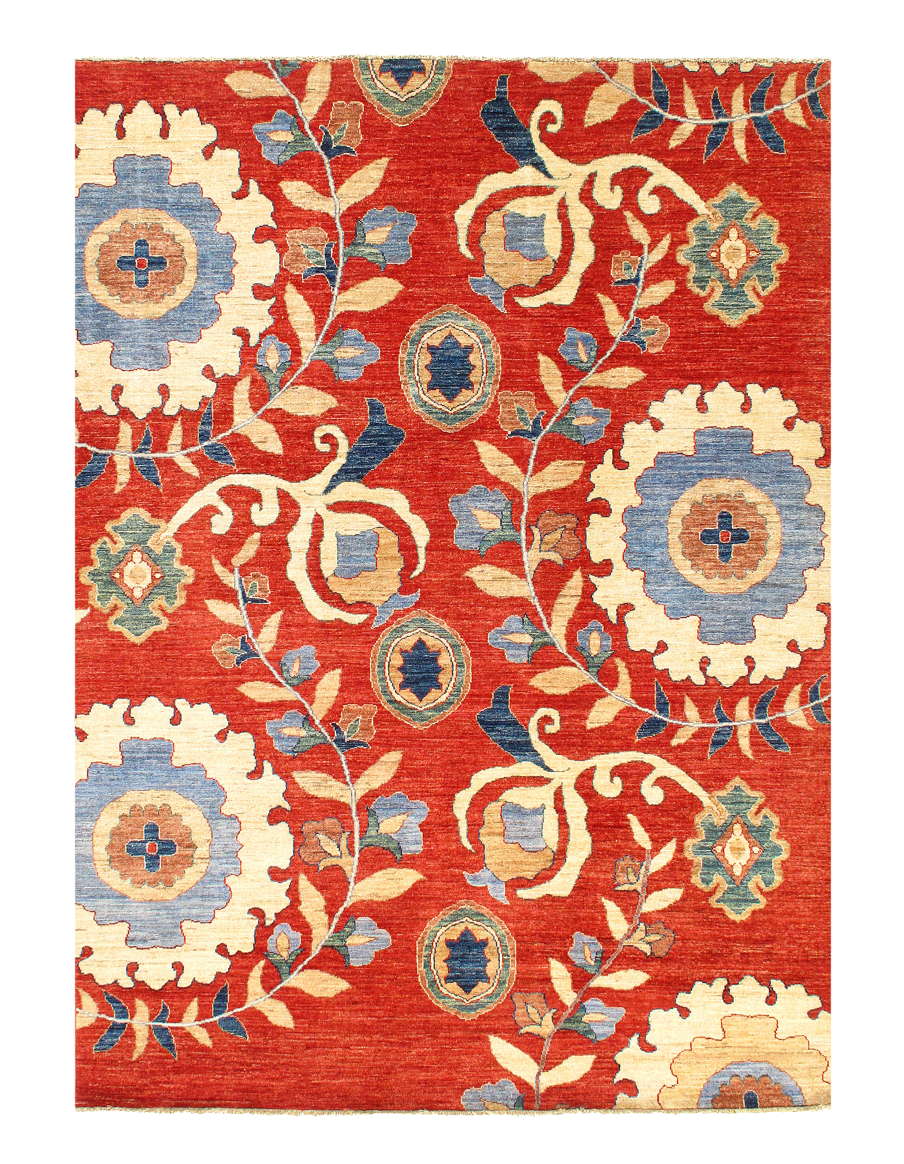 This is one of our most popular area rug collections. Based on the concept of embroidered textiles from Uzbekistan, we find the floral Suzani. It has endlessly found itself in the form of drapes, couches, pillows, but most importantly, rugs. Like its counterpart, the Ikat, Suzani is yet another tribal concept that has had a colossal impact on household items as well as the fashion industry. Included in this collection are area rugs whose designs are derived from Turkish embroideries, silk ikats, and at a further remove arts and crafts fabrics.