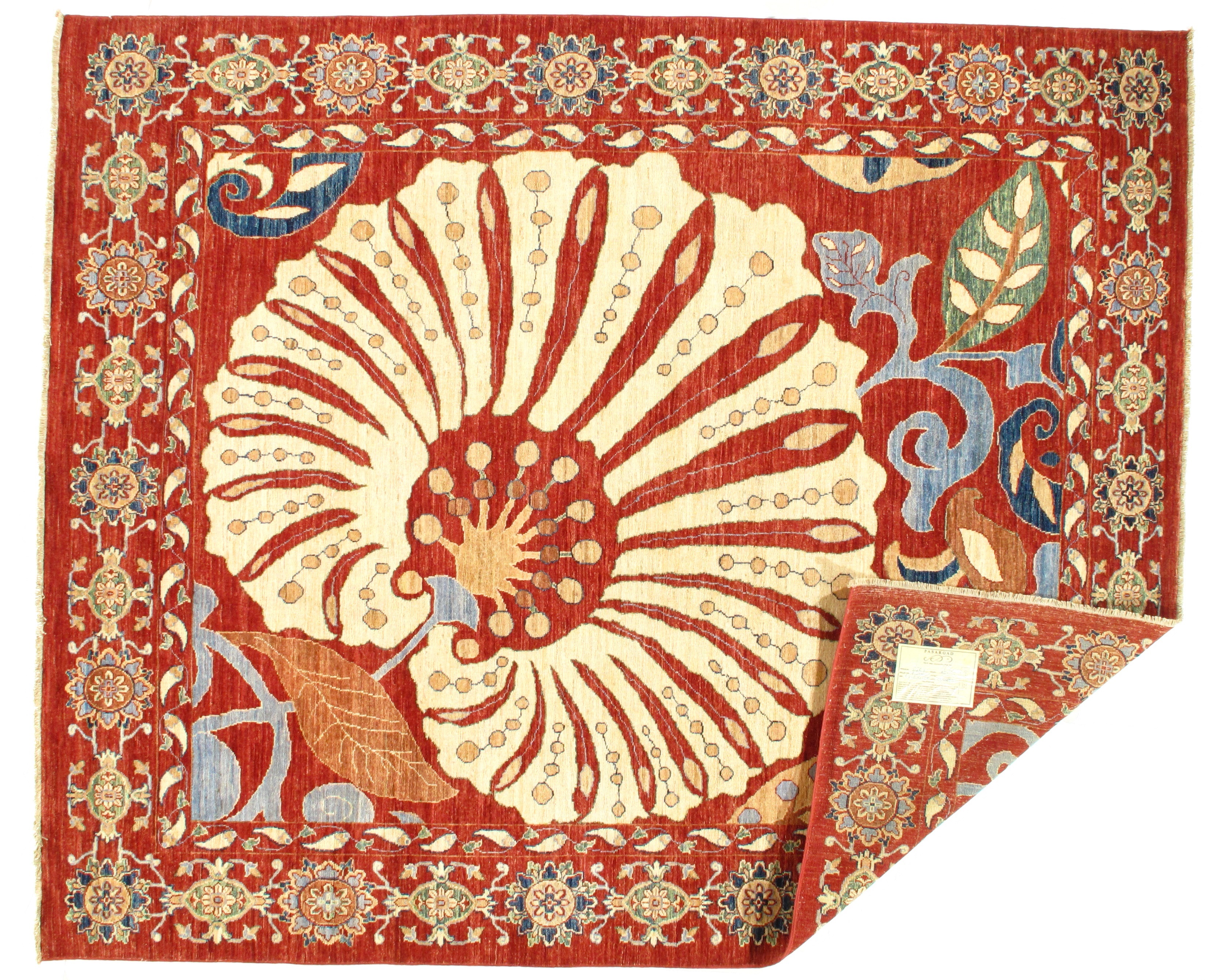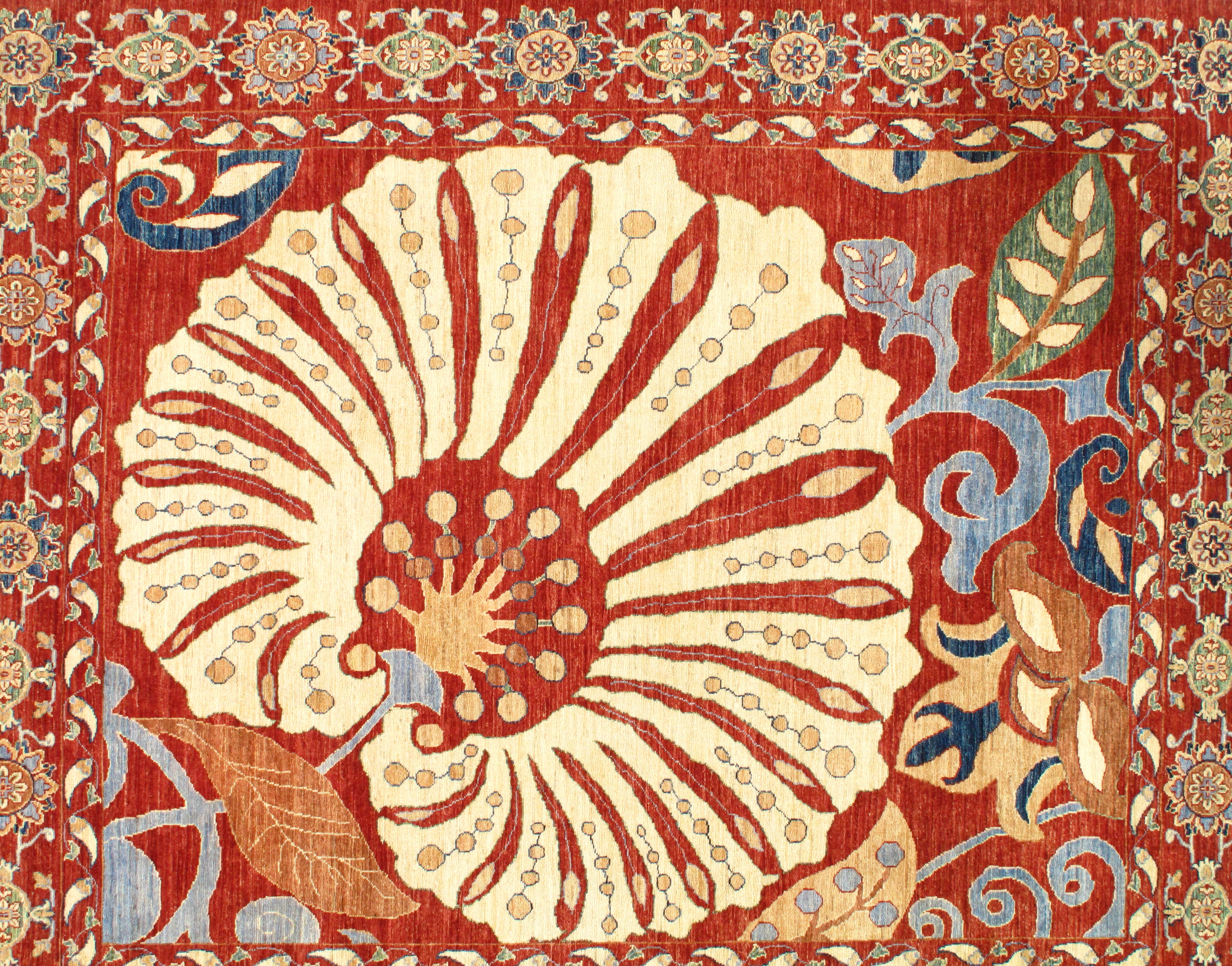 This is one of our most popular area rug collections. Based on the concept of embroidered textiles from Uzbekistan, we find the floral Suzani. It has endlessly found itself in the form of drapes, couches, pillows, but most importantly, rugs. Like its counterpart, the Ikat, Suzani is yet another tribal concept that has had a colossal impact on household items as well as the fashion industry. Included in this collection are area rugs whose designs are derived from Turkish embroideries, silk ikats, and at a further remove arts and crafts fabrics.