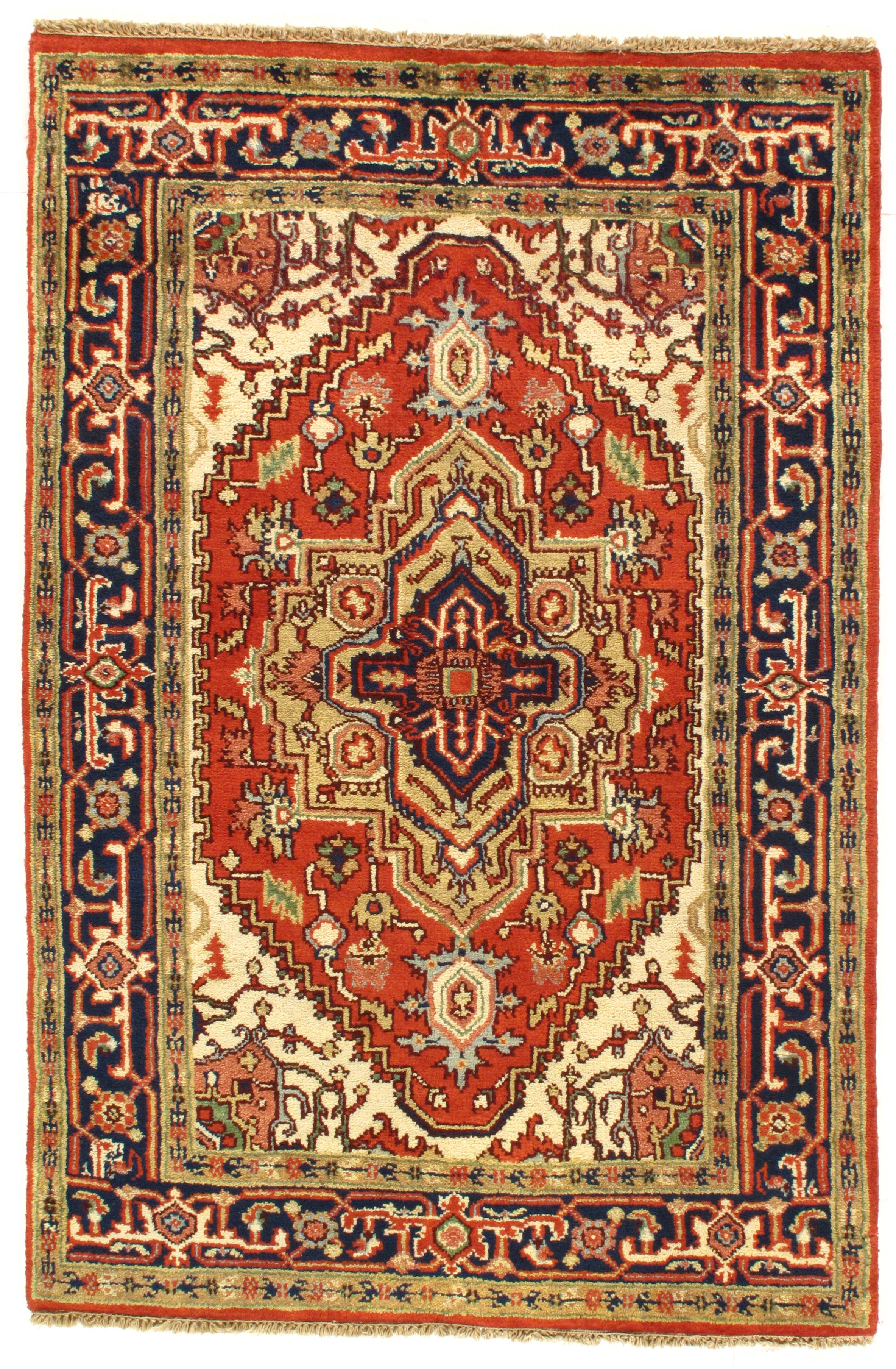 Indo Serapi design rug. Handmade and hand-knotted in fine lambswool on a cotton foundation. Vegetable dyed hand-spun wool rug.
