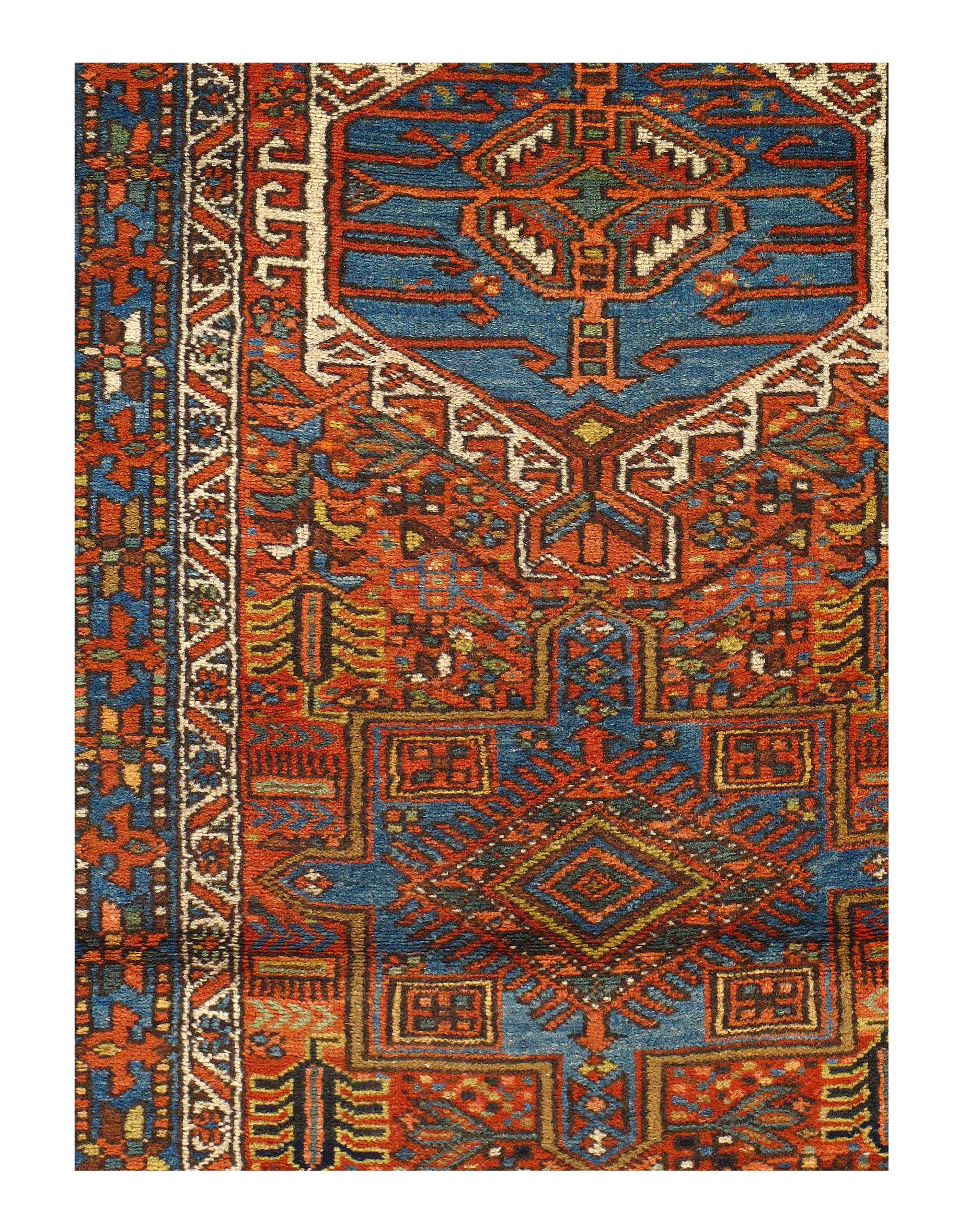 Karaja rugs are a type of Persian rug woven in the northwestern region of Iran near Tabriz. Different spellings include Karadja and Karaje. They are similar in design to Heriz rugs although they often come in smaller sizes and have a slightly softer color palette. They are one of the most easily identifiable rug types because of their signature design and belong to property blair present guest house DC.