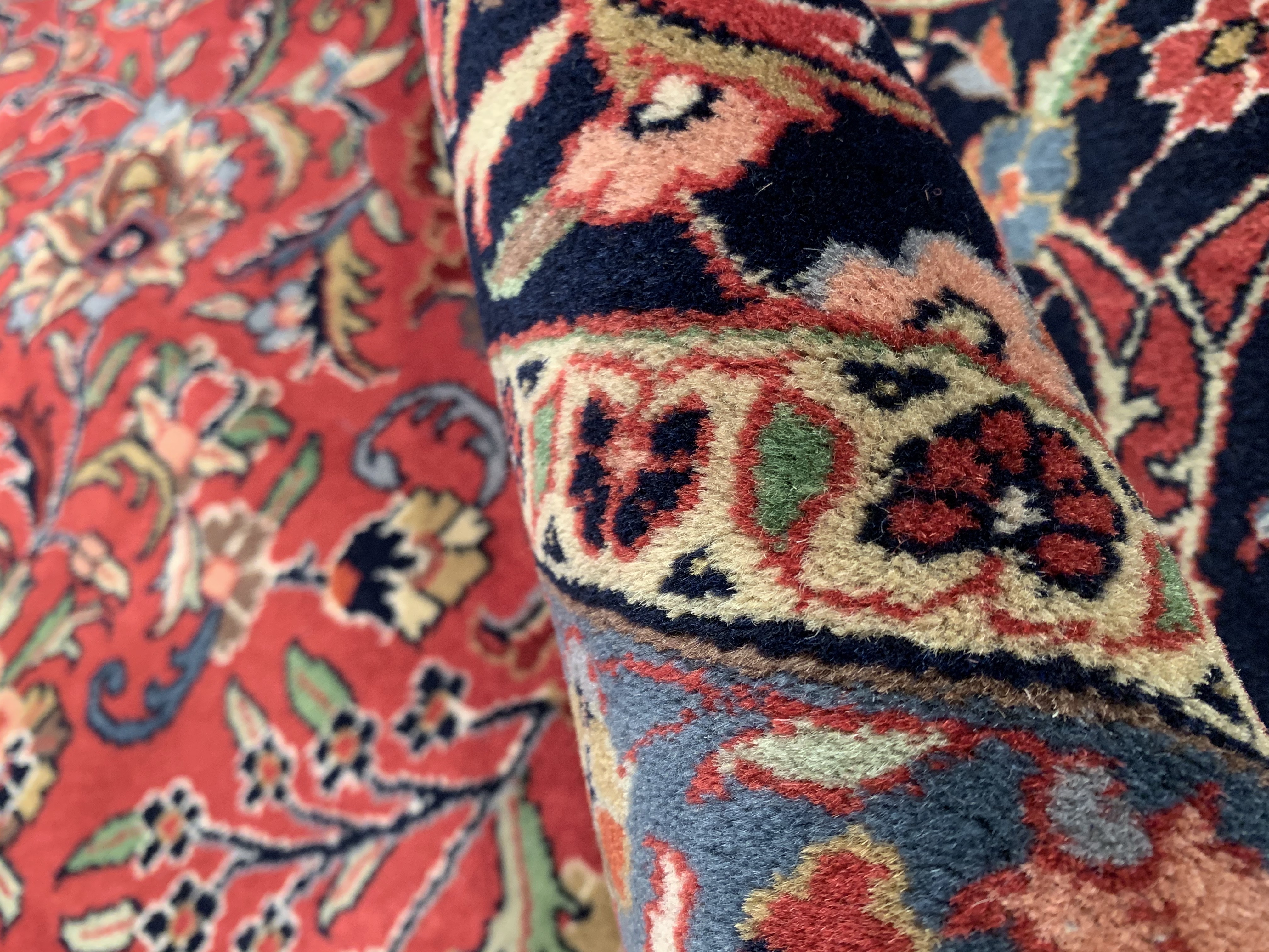 Original persian Kashan design rug.Fine Handmade and hand-knotted. Lamb's wool on a cotton foundation. Hand-spun wool rug. Vegetable dyed.