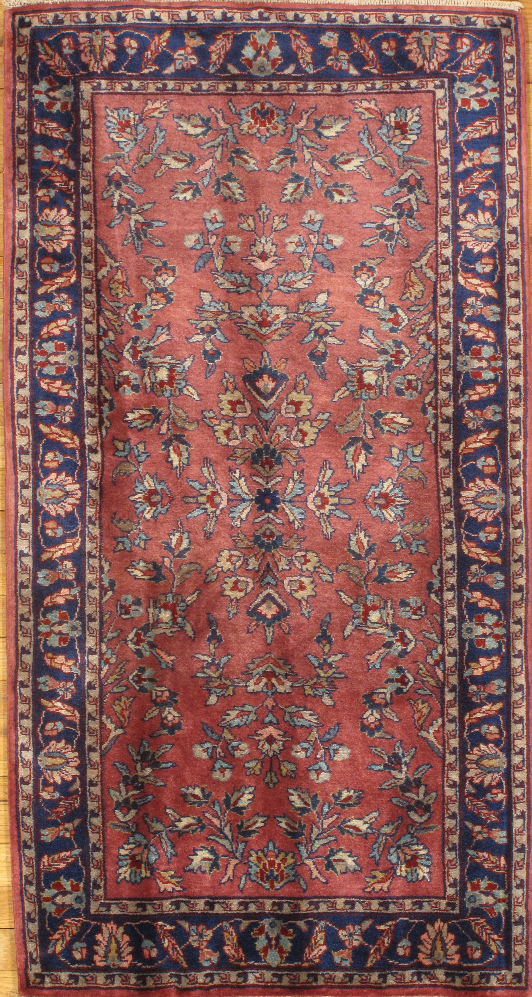 A hand-knotted Sarouk rug.