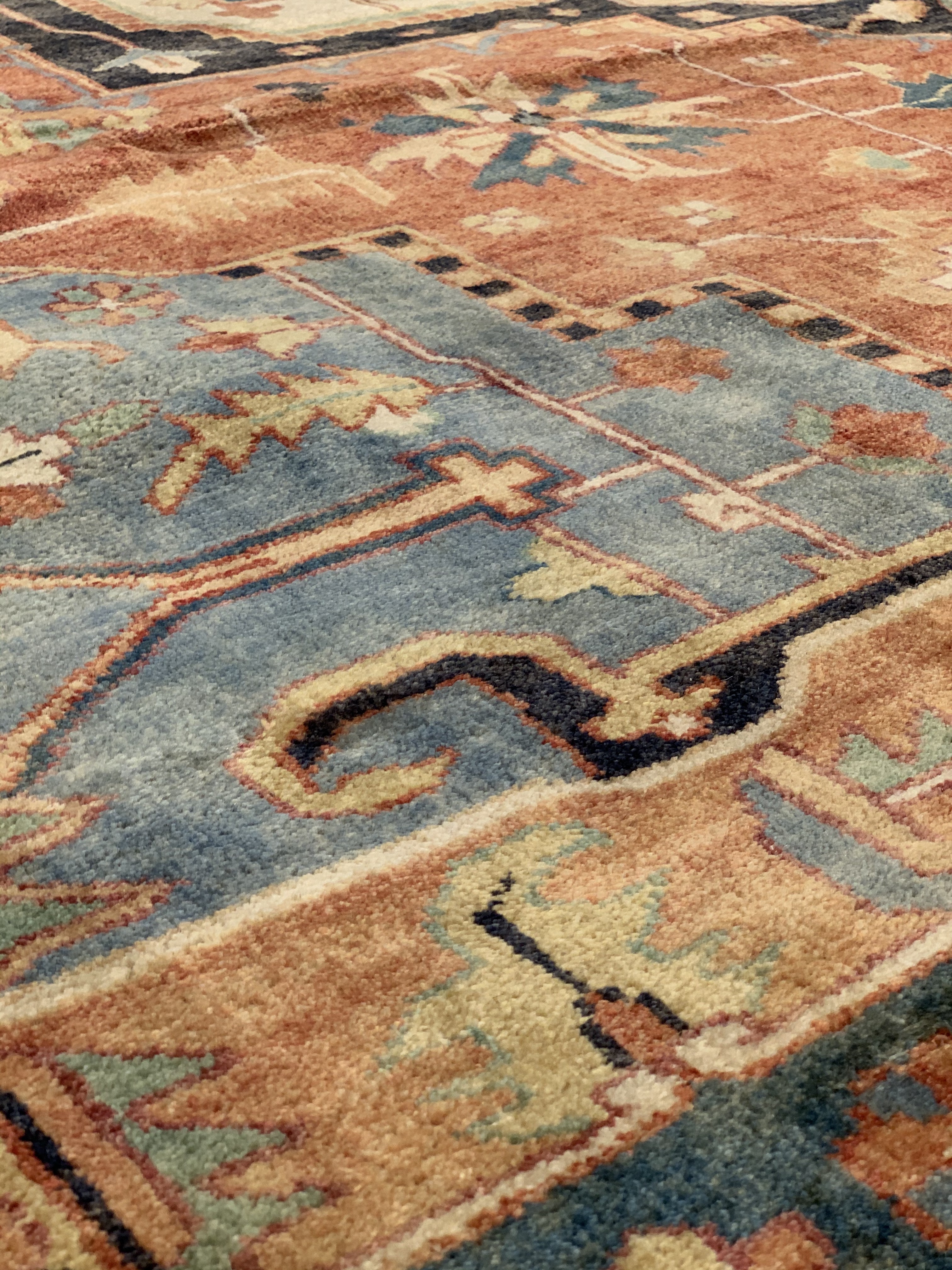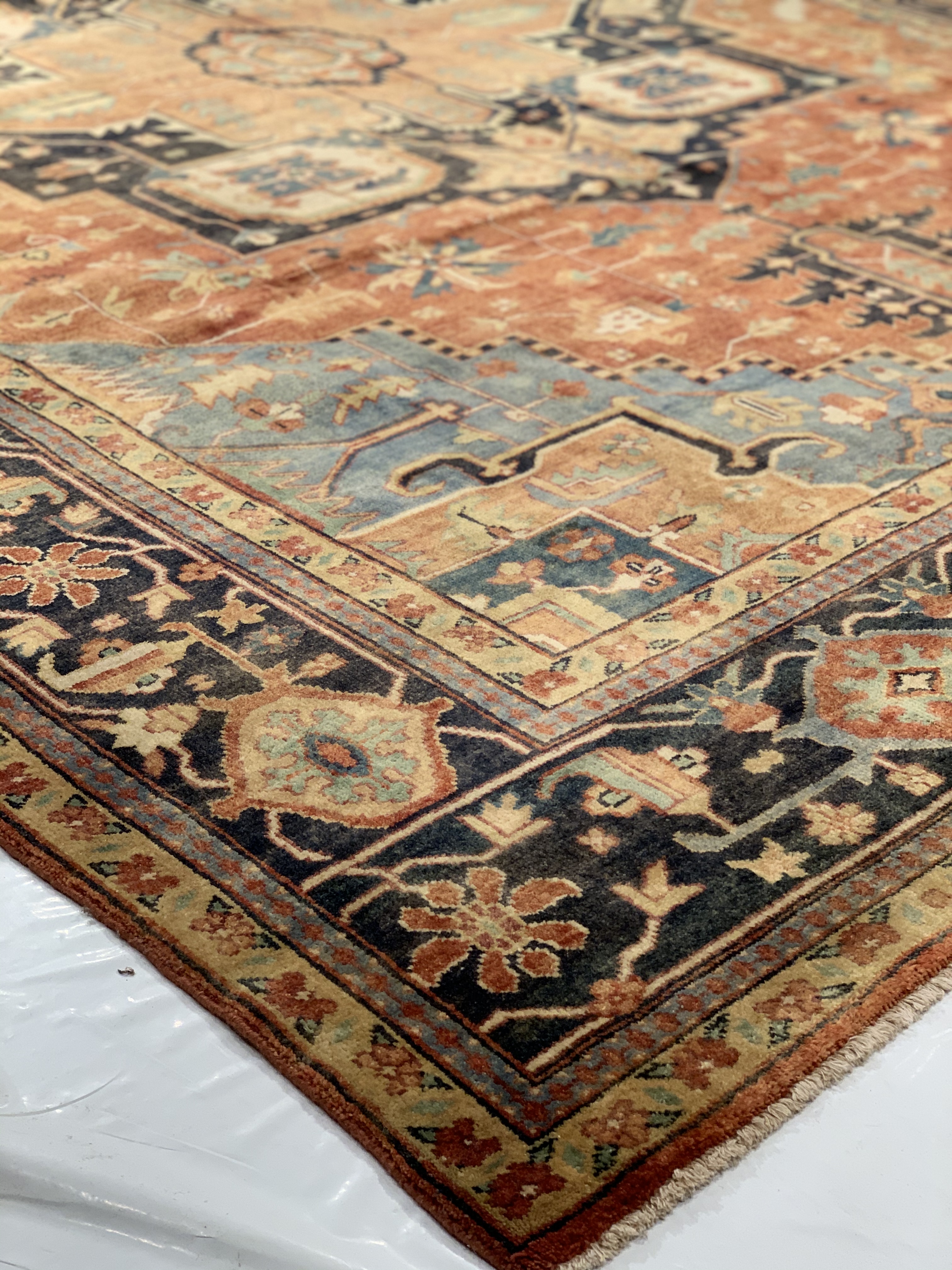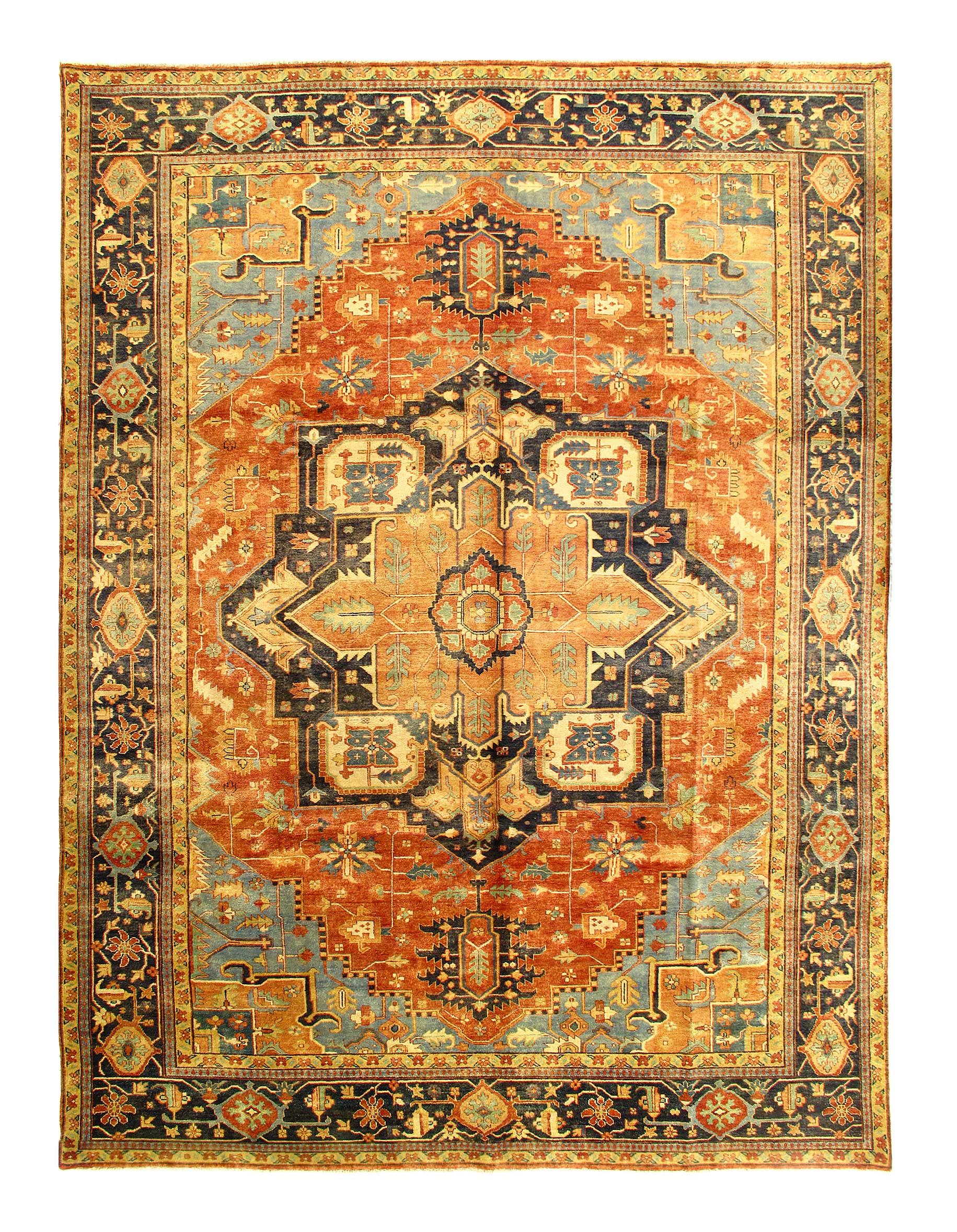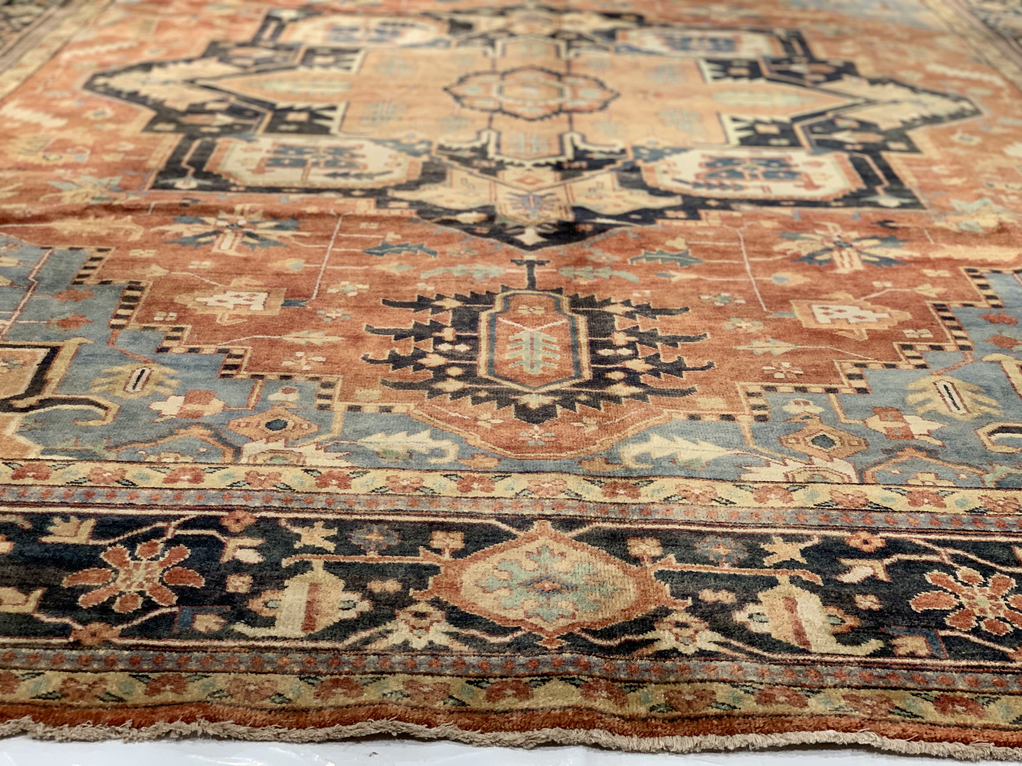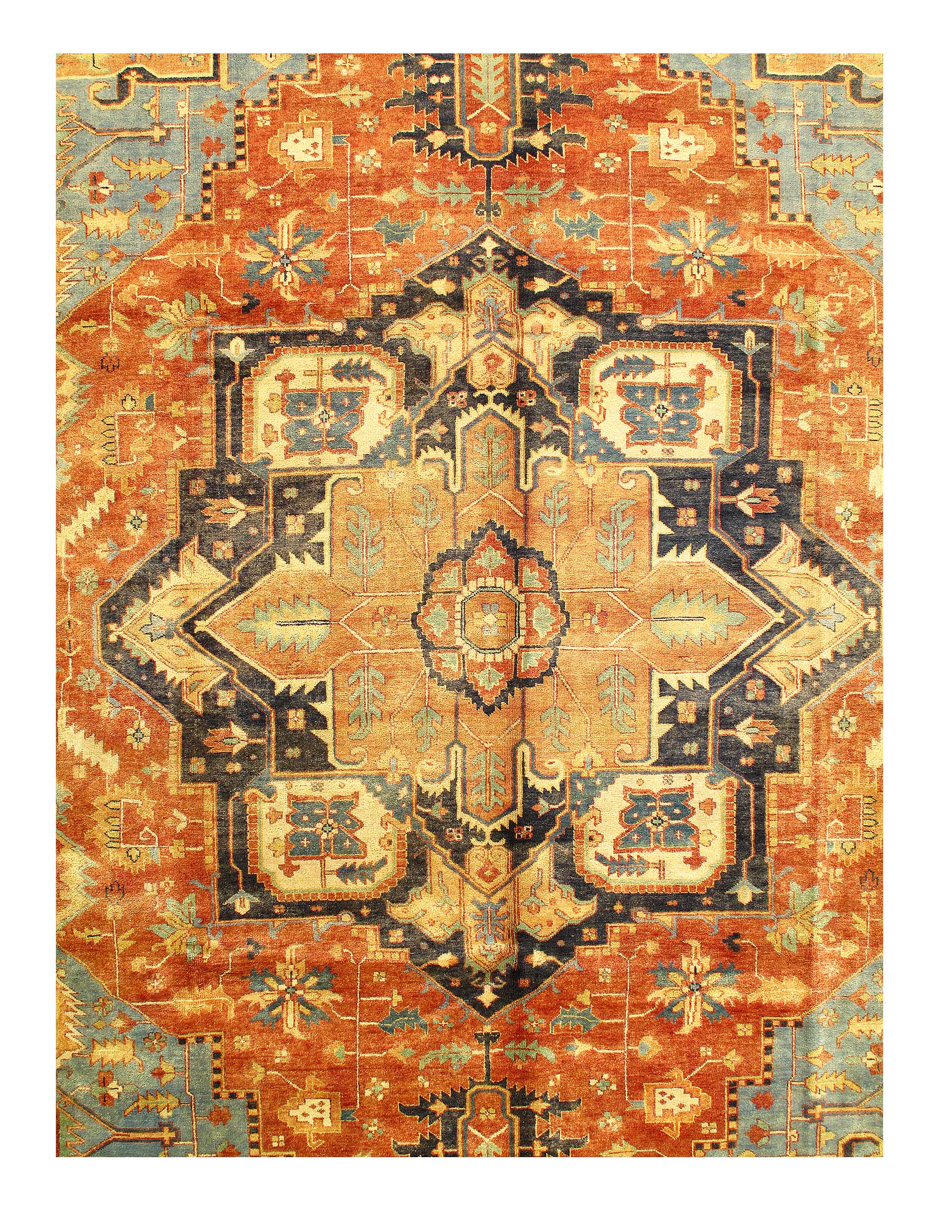 Serapi rugs are a style of Persian rugs deriving from northwest Iran Serapi rugs are among the most desirable rugs, due to their durable nature under heavy wear and tear. Weavers of Serapi rugs often portray geometric patterns or medallions in their designs. They often have an antique style, and come in a vast variety of colors. Serapi rugs are hand knotted from thick piles of wool, which gives them a soft plush feel.