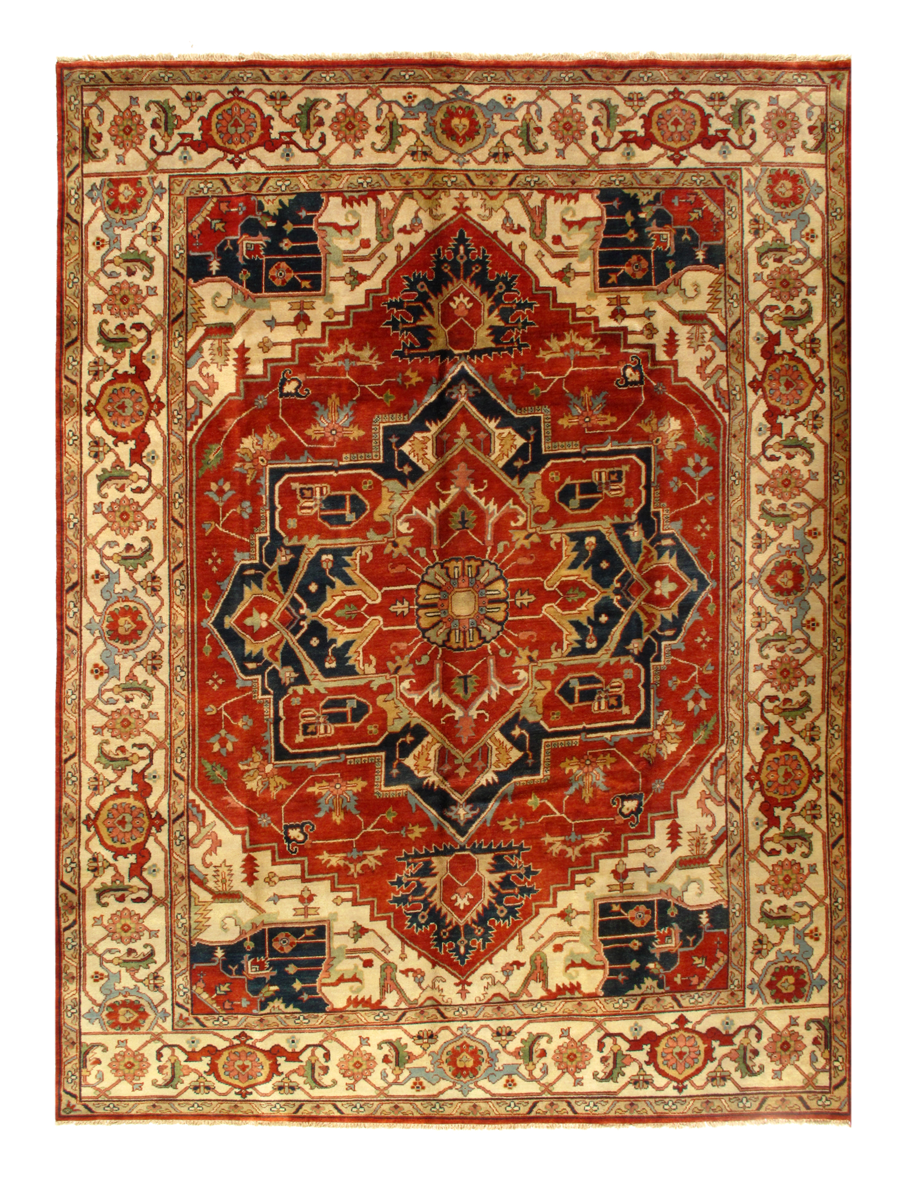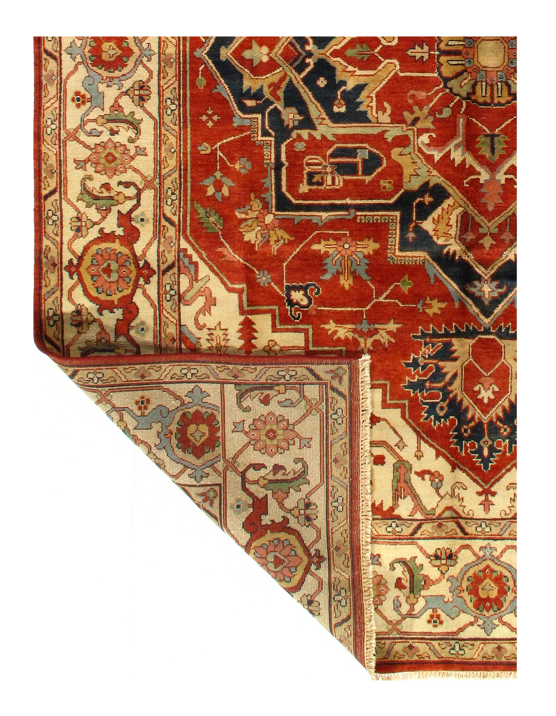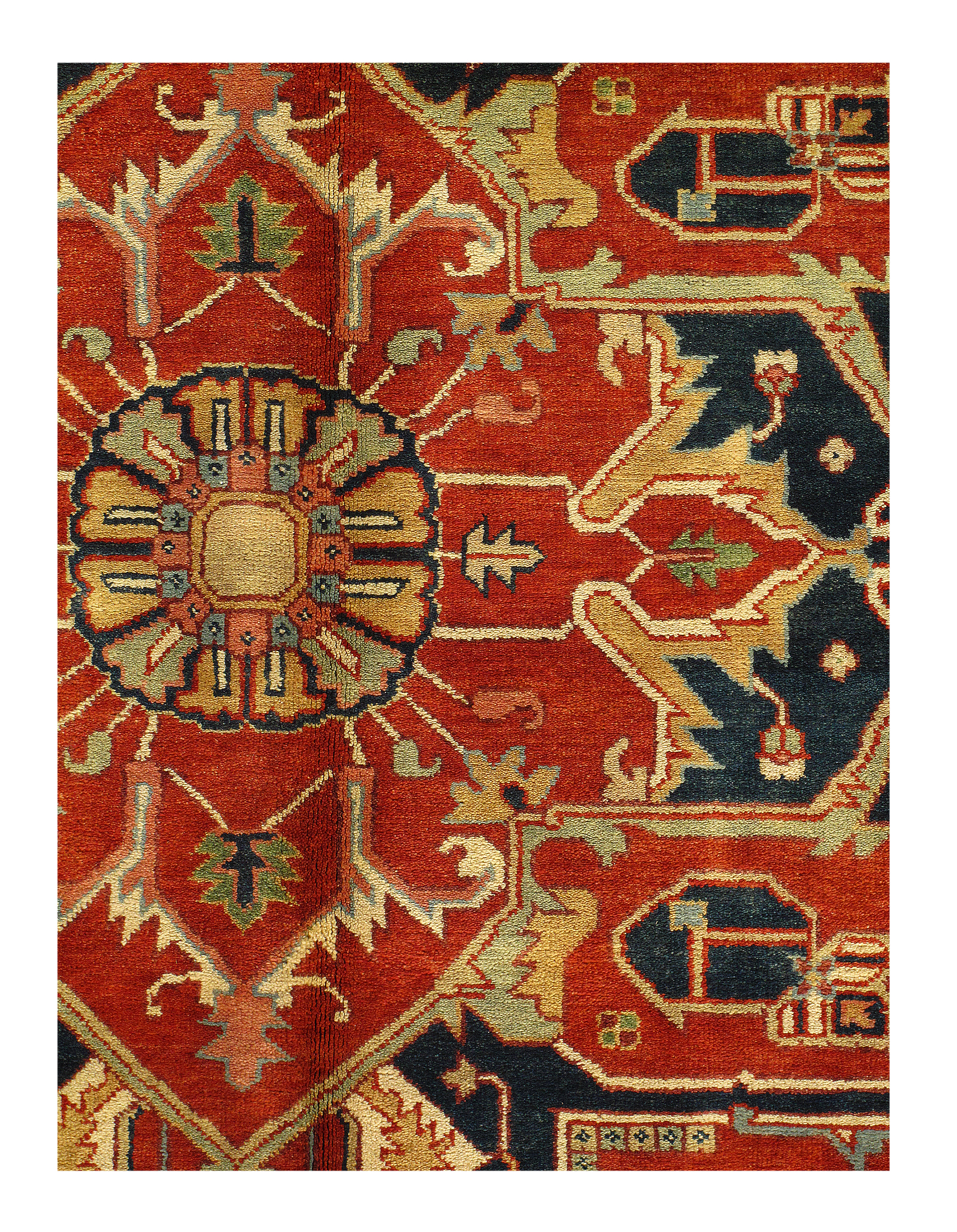 Persian Serapi design rug. Handmade and hand-knotted in fine lambswool on a cotton foundation. Vegetable dyed hand-spun wool rug.