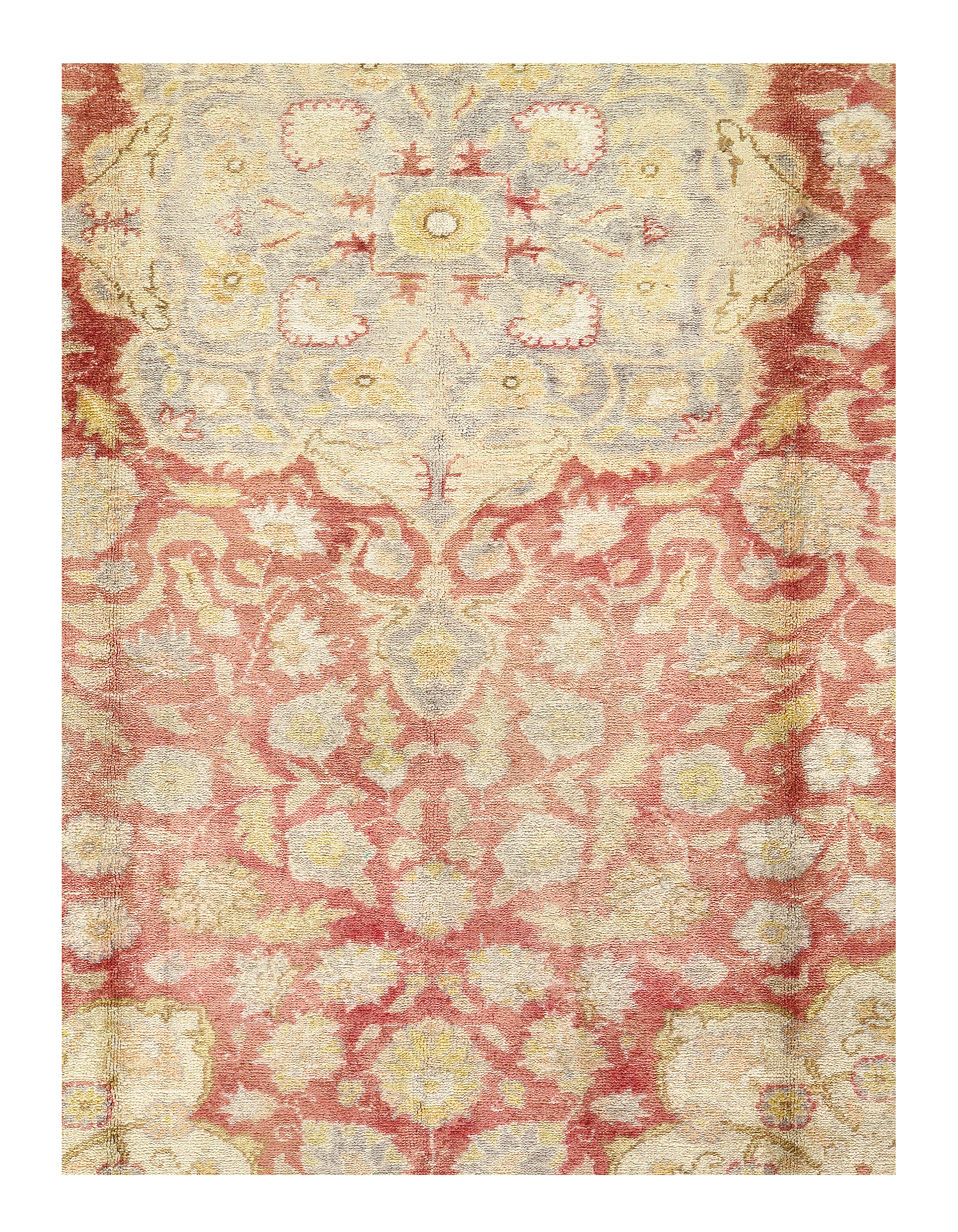 Oushak rugs are a specific type of Turkish rug originating from the city of Oushak and are prized for their exceptional texture and large-scale designs. Oushak, located in western Turkey, has been a major center of rug production since the Ottoman period. Many of the great masterpieces of early Turkish carpet weaving from the 15th to 17th centuries have come from Oushak. Less, however, is known about what happened to production there in the 18th and early 19th centuries. It wasn't until around 1900 that Oushak reemerged as a major production center, this time for room-size decorative carpets, which remain desirable even today.
