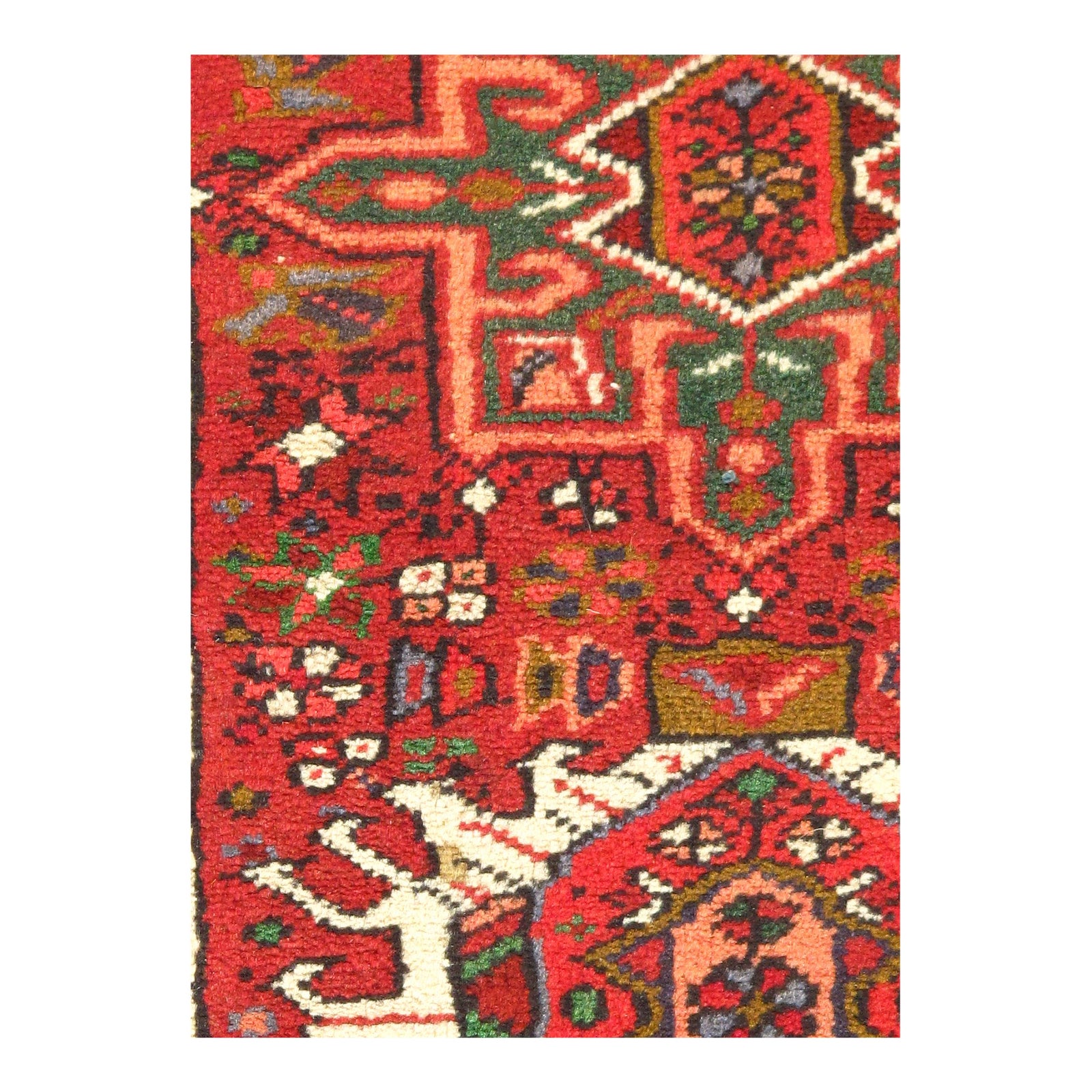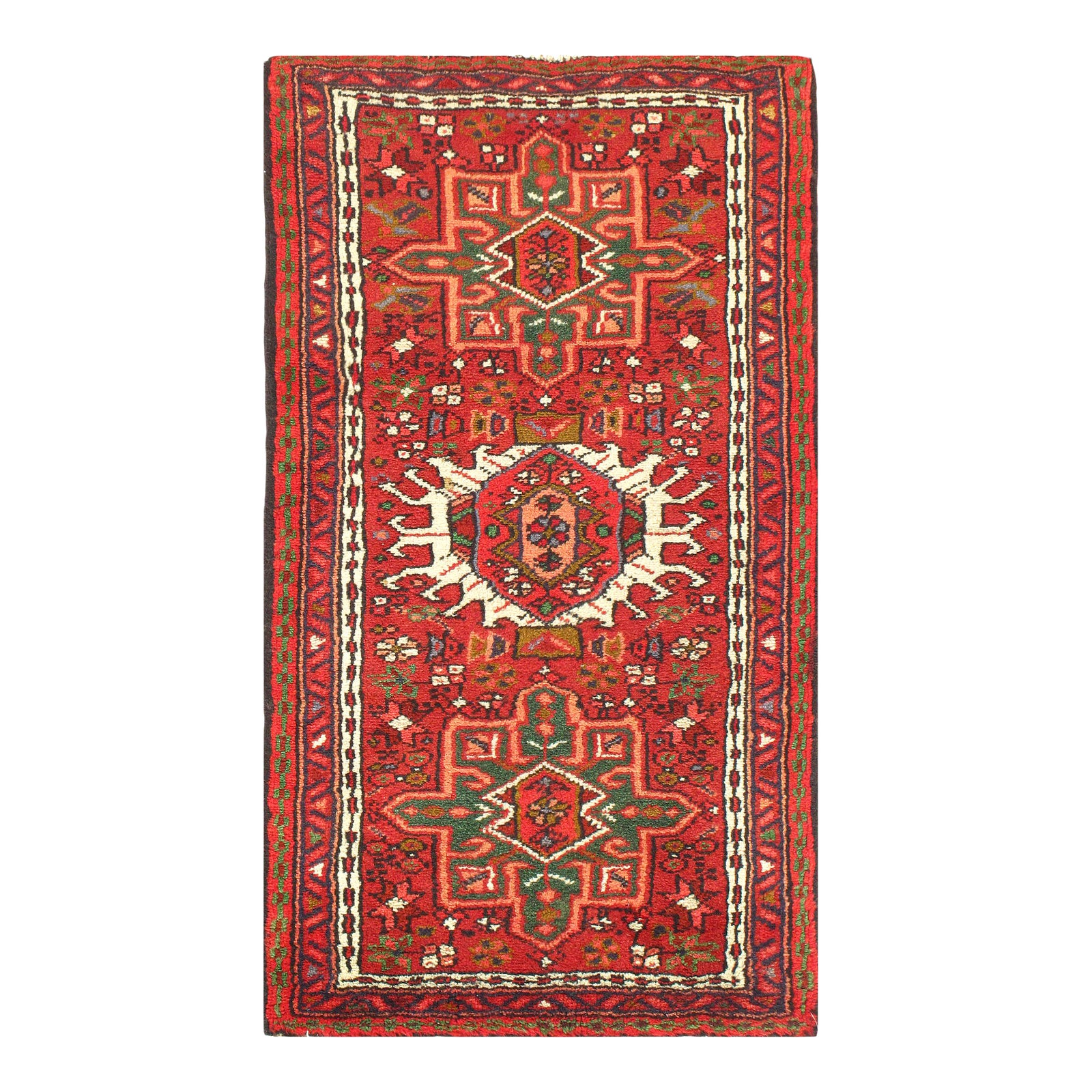 Original Persian Karajeh antique rug. The piece is made of hand-spun lamb's wool on a cotton foundation, and it was vegetable dyed. The rug has a dense, soft pile, and excellent quality, to ensure that you will enjoy it for years to come. Circa 1950
