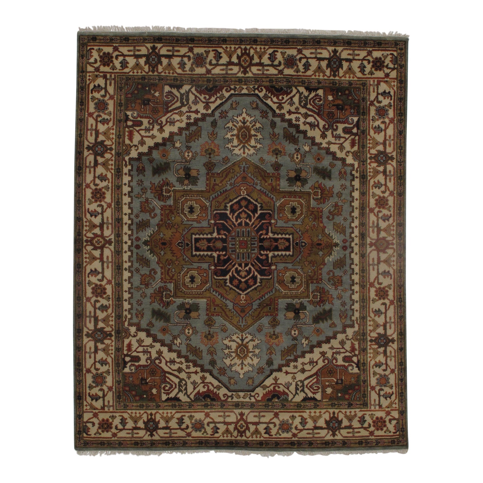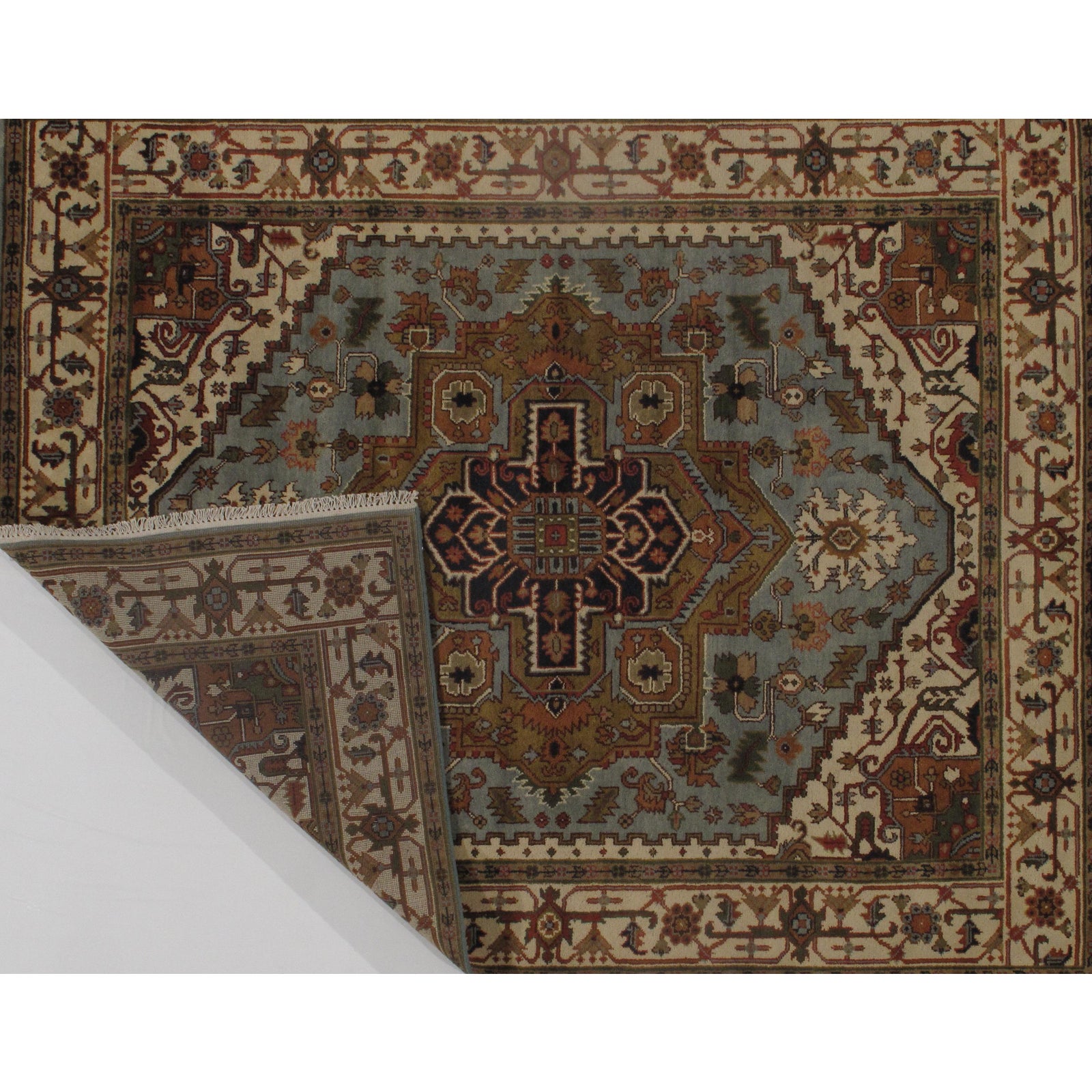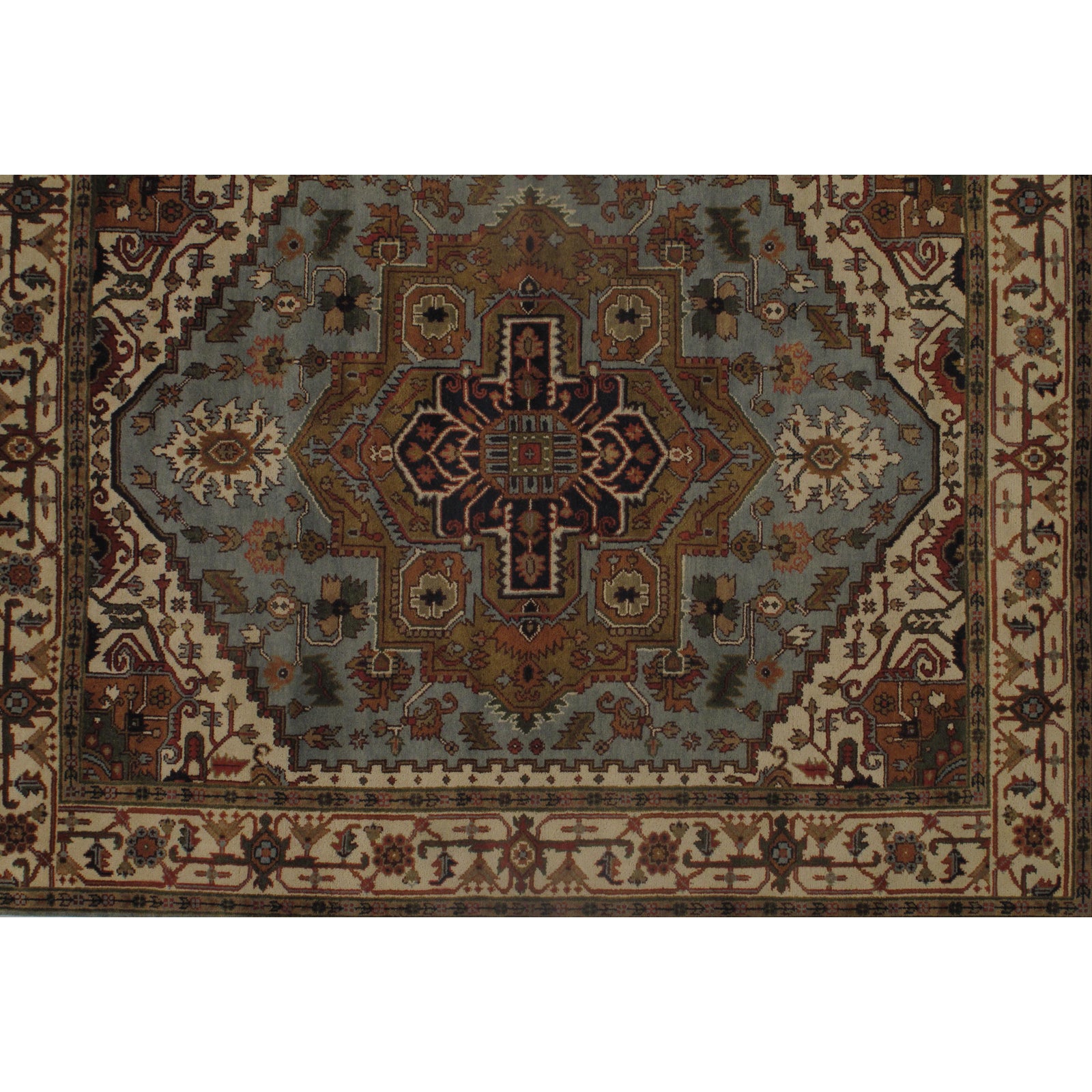 INDO Serapi design rug. Handmade Hand-knotted in fine lambswool. Lamb's Wool on a Cotton Foundation Vegetable Dyed Hand-Spun Wool Rug The Serapi Rug is one of the most sought after rugs particularly in the USA and England for many years. No other rug so epitomizes the "East Coast Establishment" than the Serapi carpet This rug has a dense, soft pile, and excellent quality, to ensure that you will enjoy the look and feel of your rug for years to come
