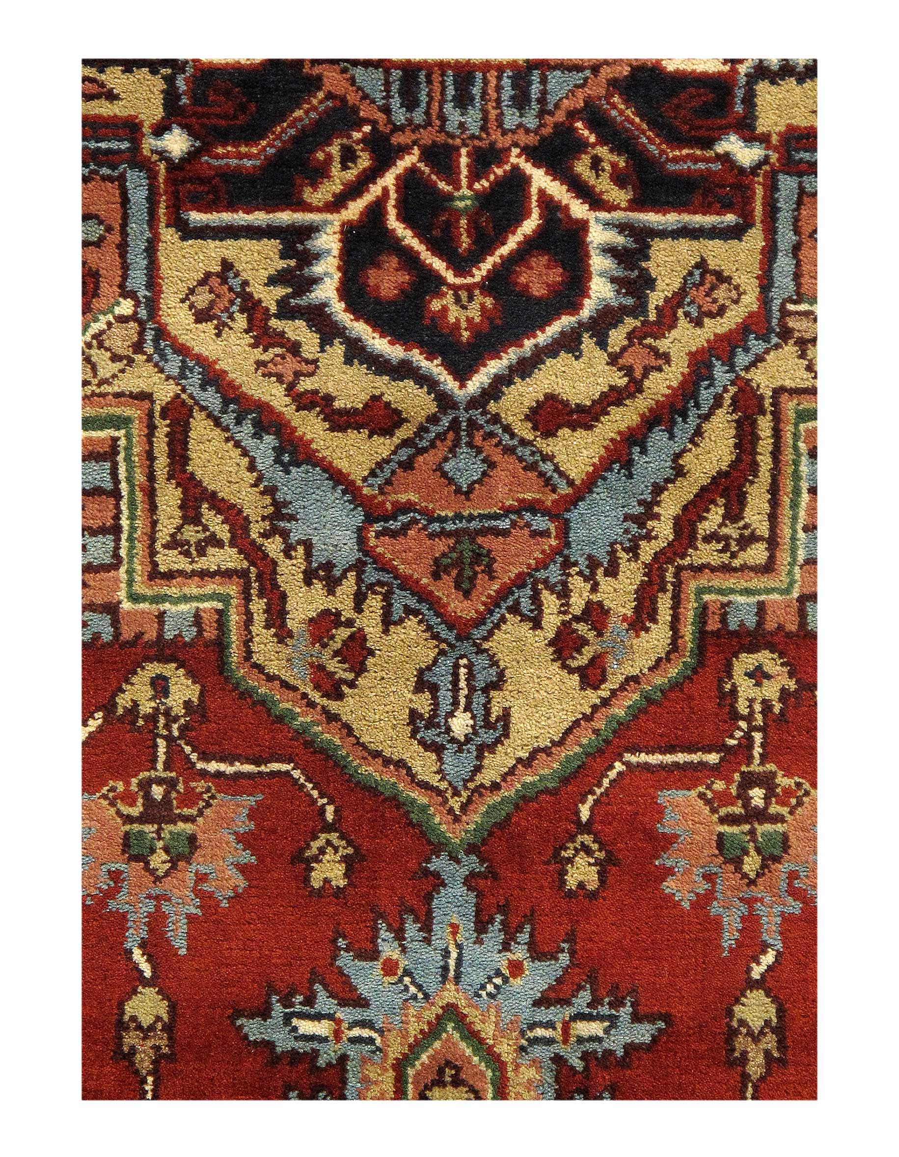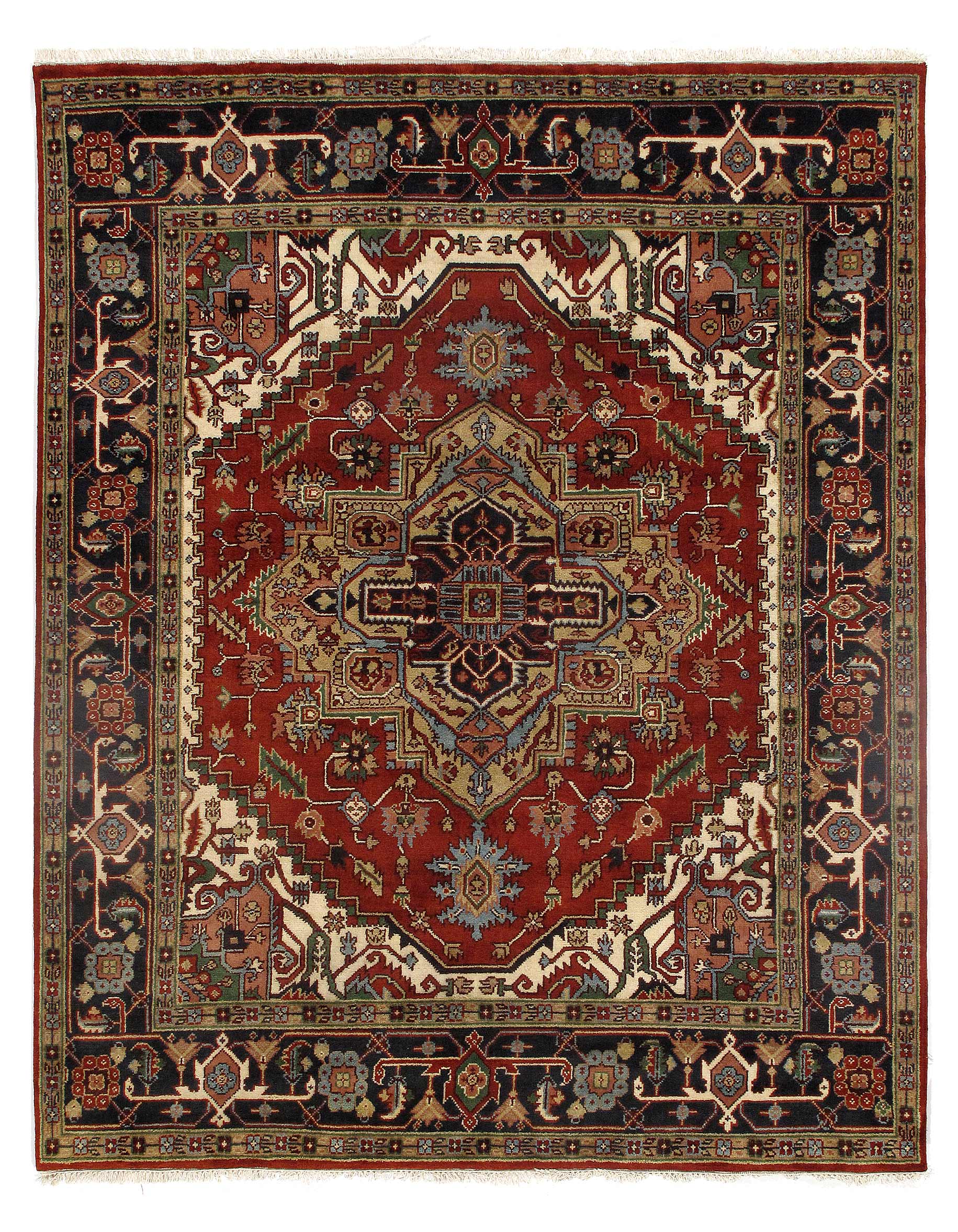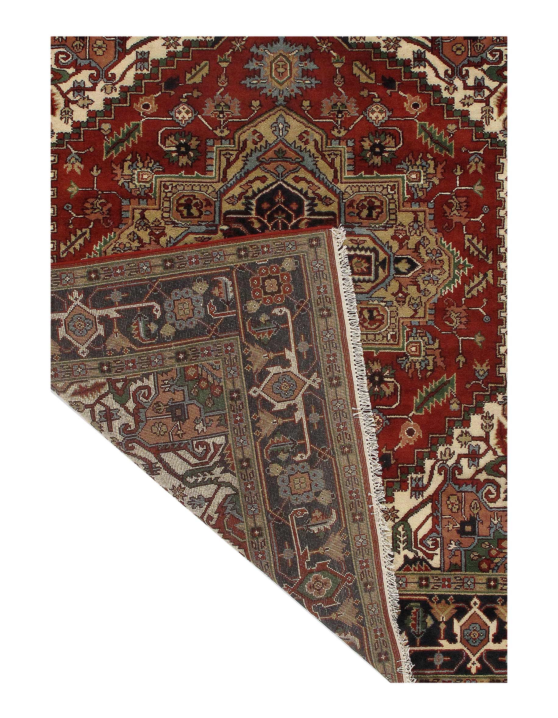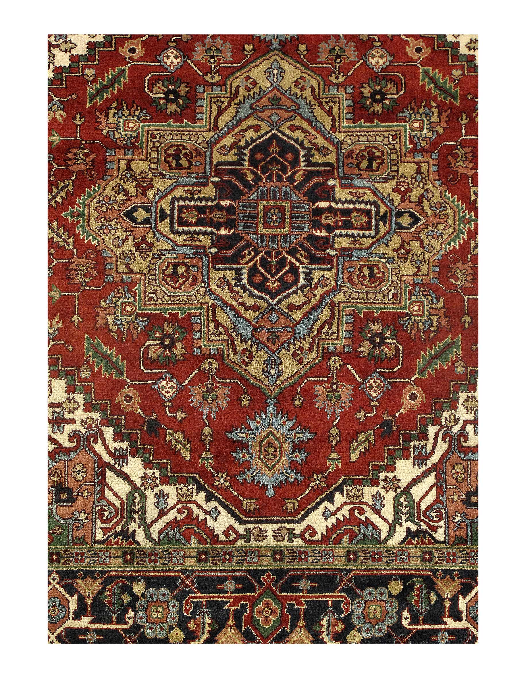Indo Serapi design rug. Handmade Hand-knotted in fine lambswool. Lamb's Wool on a Cotton Foundation Vegetable Dyed Hand-Spun Wool Rug The Serapi Rug is one of the most sought after rugs particularly in the USA and England for many years. No other rug so epitomizes the "East Coast Establishment" than the Serapi carpet This rug has a dense, soft pile, and excellent quality, to ensure that you will enjoy the look and feel of your rug for years to come