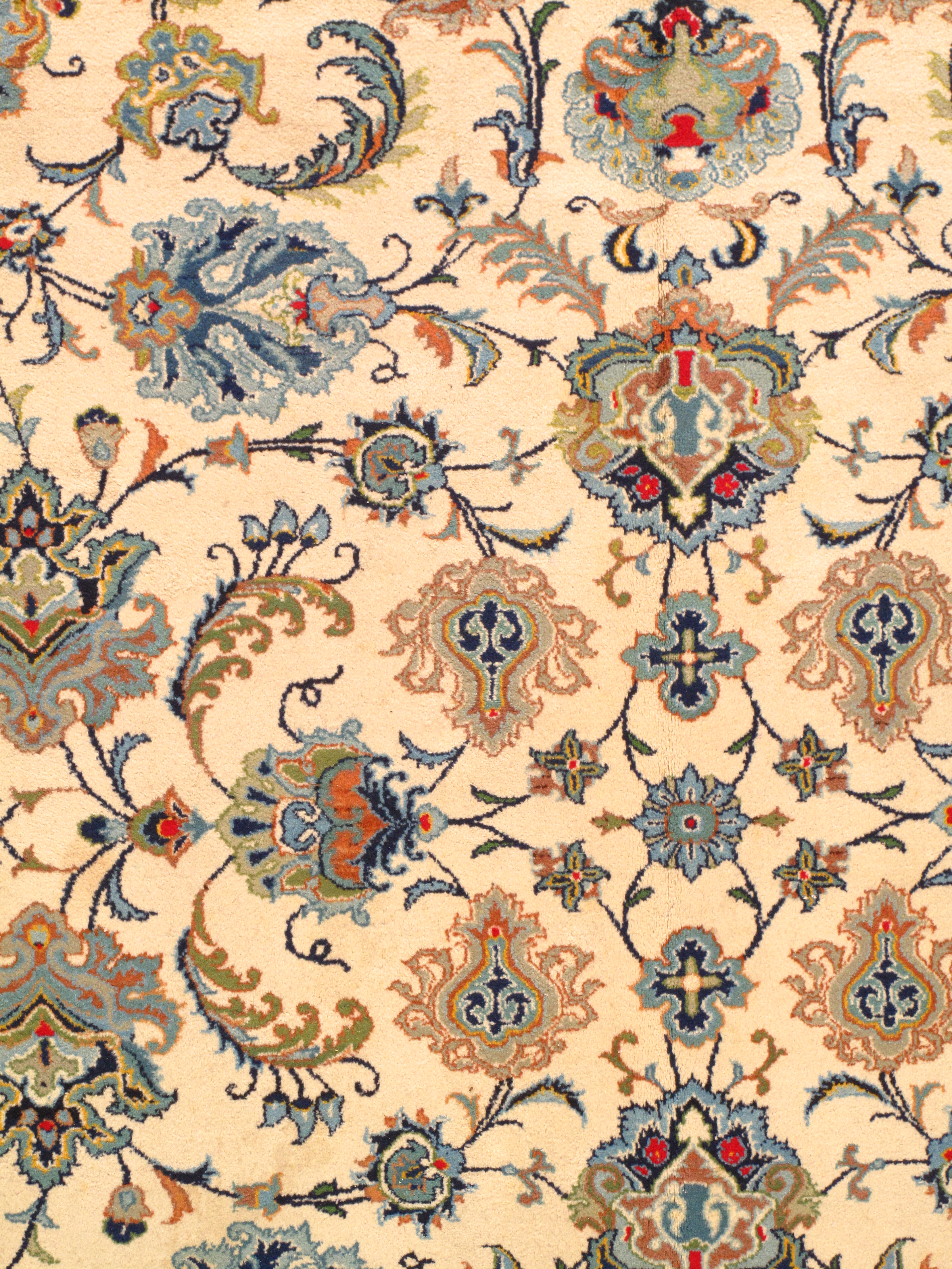 Original Persian KASHAN Handmade Hand-Knotted Lamb's Wool on a Cotton Foundation Hand-Spun Wool Rug Allover Vegetable Dyed This rug is handmade from 100-percent premium, hand-spun wool, and employ ancient pot-dying techniques to give them their authentic look.