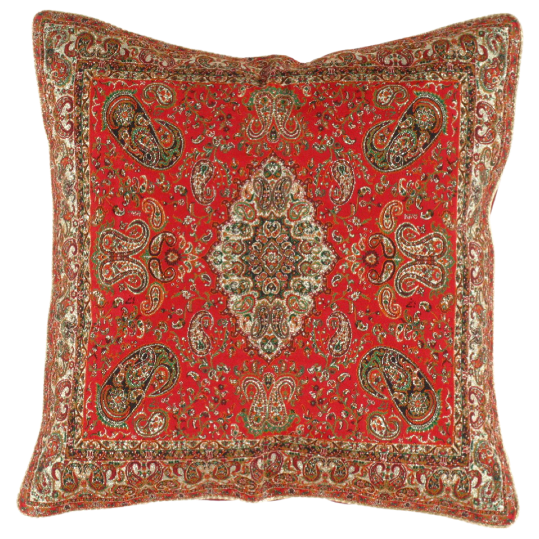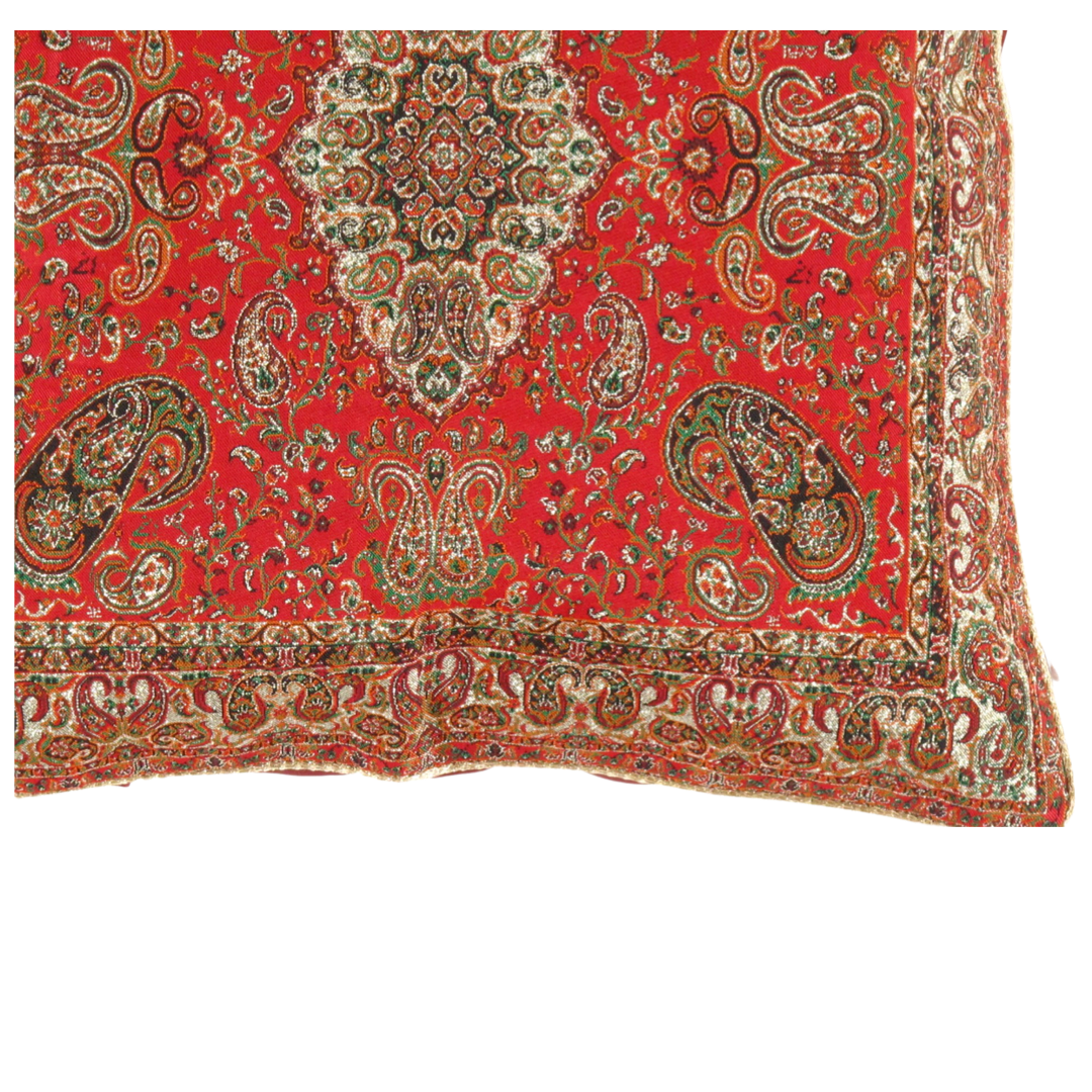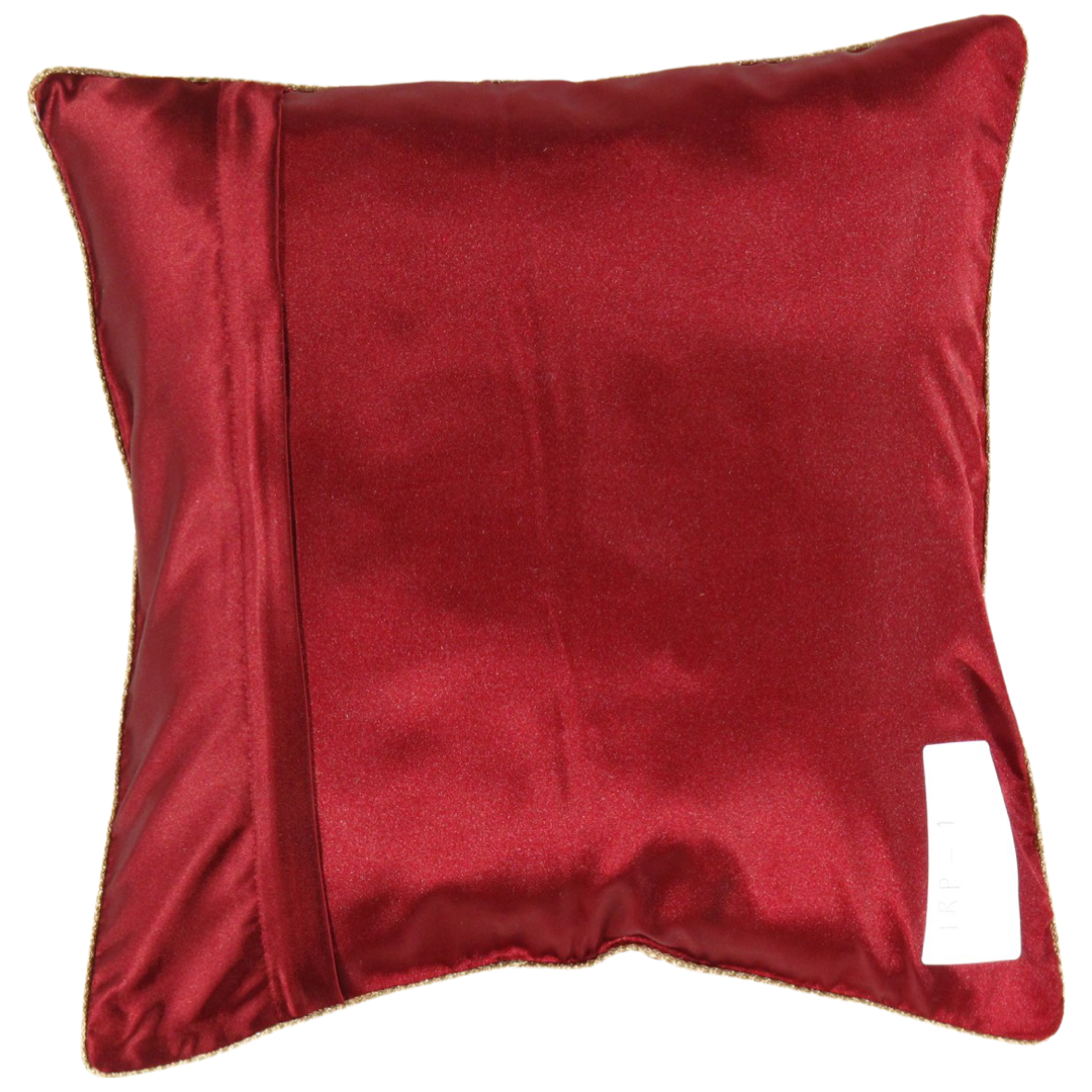 Beautiful Silk Knotted Persian Teremeh With Ancient Design Representing Fine Art Of Tapestry With 2000 Years of History .( Made only In The City Of Yazd Persia )Silver Thread A Decorative Item to be used on Tables or Furniture or Gift Design:Color: Red Size 20'' X 20''