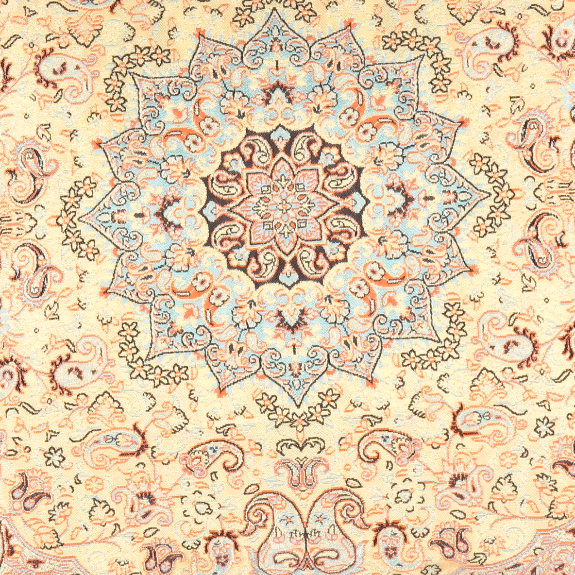 Beautiful Silk Knotted Persian Teremeh With Ancient Design Representing Fine Art Of Tapestry With 2000 Years of History .Beige Thread A Decorative Item to be used on Tables or Furniture or Gift Design: Color: Ivory / Beige / Cream Size: 20'' X 20''