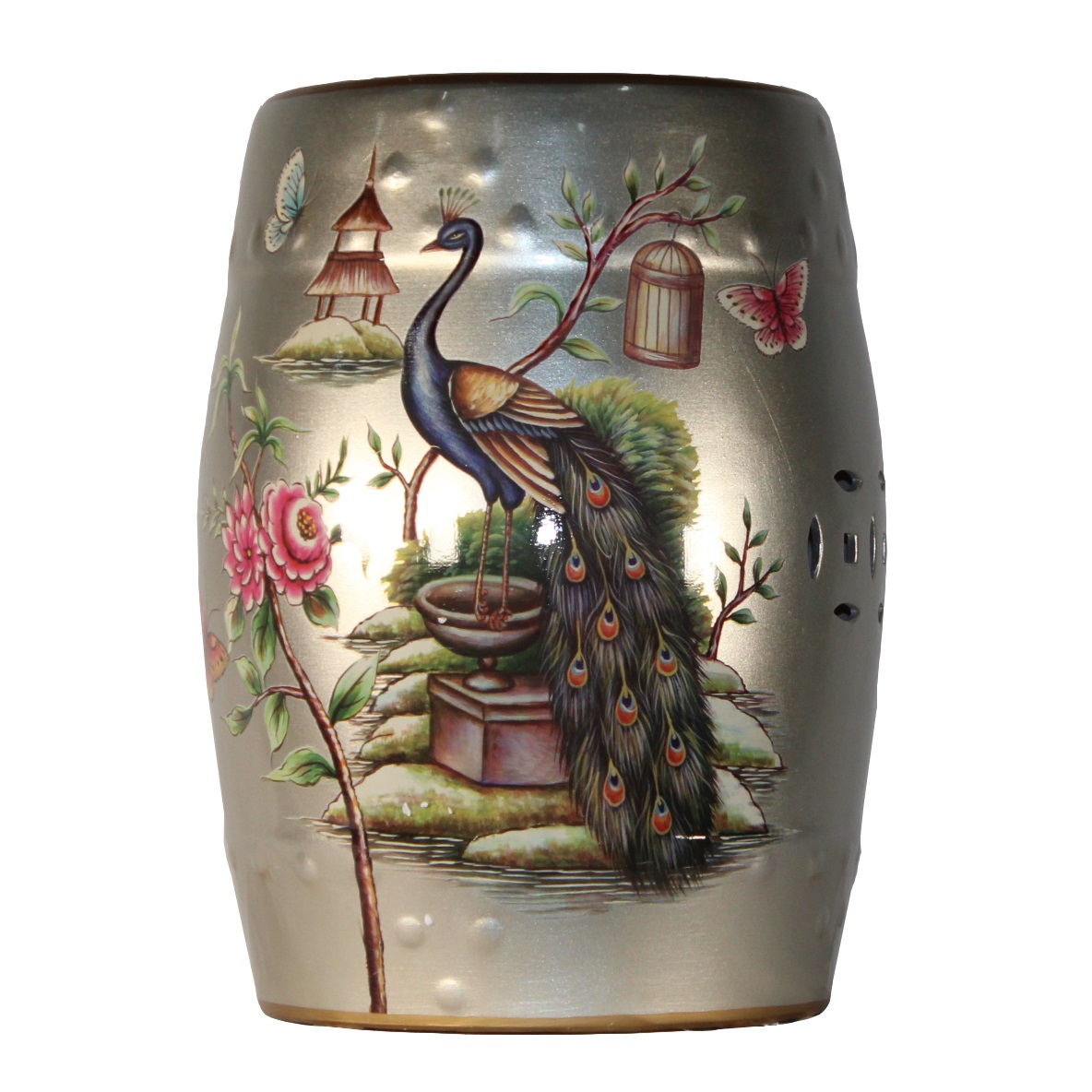 Set this striking porcelain stool beside the bathtub to corral lotions and shampoos, or pull it up to the vanity as a stylish makeup seat. Product: StoolConstruction Material: PorcelainColor: silver