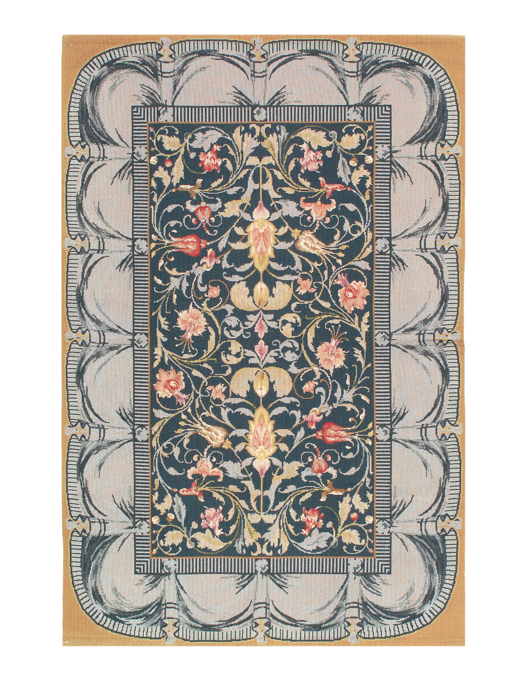 Aubusson carpet, usually of considerable size, handwoven at the villages of Aubusson and Felletin, in the département of Creuse in central France. Workshops were established in 1743 to manufacture pile carpets primarily for the nobility, to whom the Savonnerie court production was not available. Aubusson carpets were, however, also made for the royal residences. Soon after the production of carpets began at Aubusson, the pileless tapestry technique previously in use in this district was adopted for so many of the carpets that the word Aubusson has become synonymous with a flat-woven French carpet, and it is not generally realized that piled rugs in numbers have been made there.