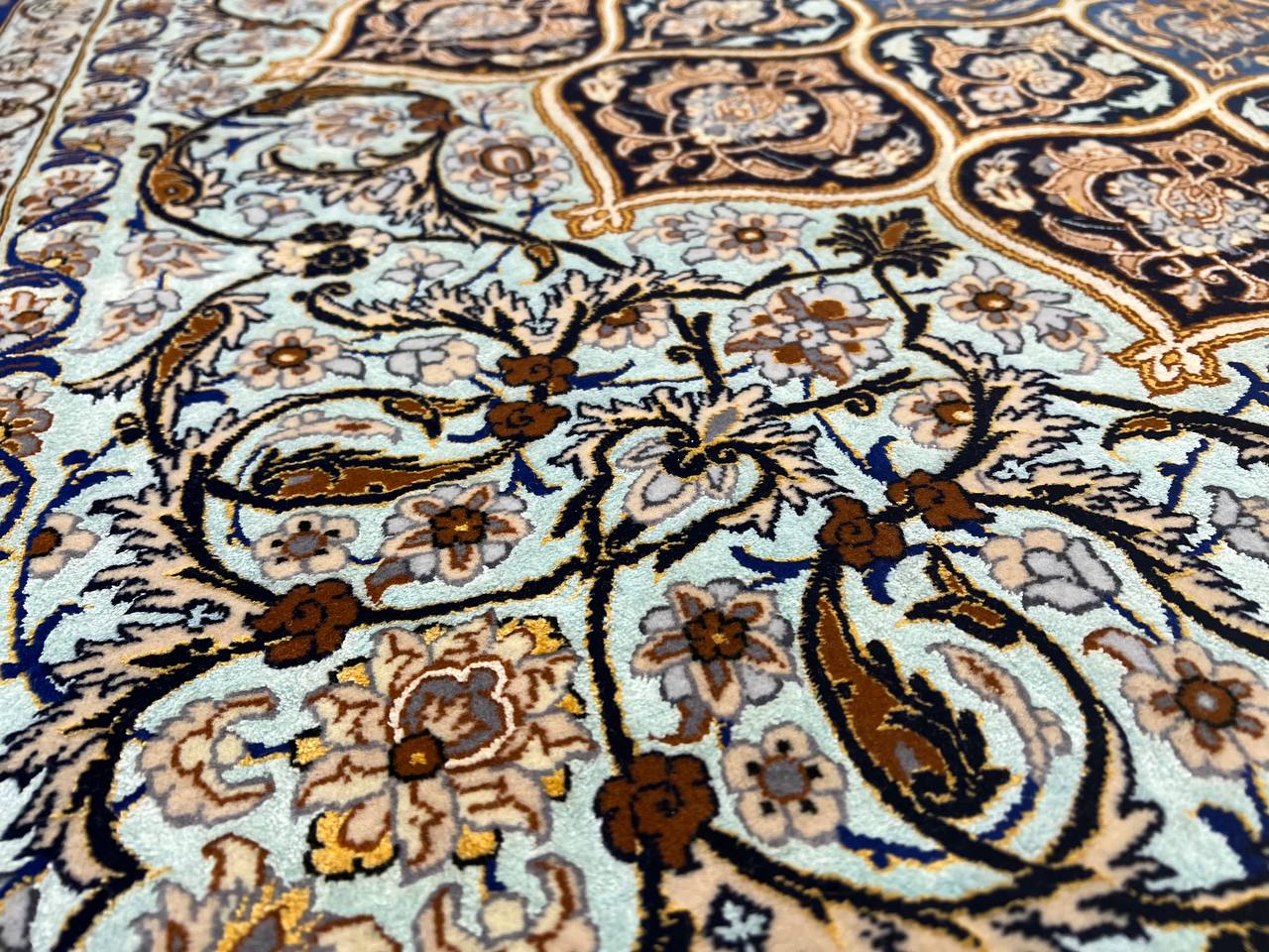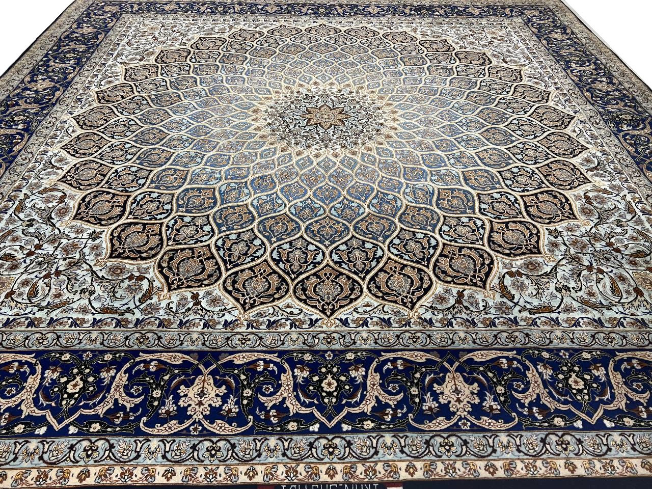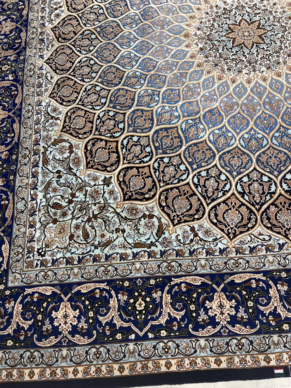 The Isfahan rugs are made with exceptionally good quality of wool & silk. They use traditional motifs inspired by architectural tiles that once decorated the historical buildings from which these rugs originated in. When it comes to high class designs the composition, patterns, and materials of Isfahan meets those expectations. The motifs usually consist of medallions with palmetts and also figural motifs. Isfahan rugs have an extremely high knot density and are woven with silk and golden threads, which give them their luxurious look.