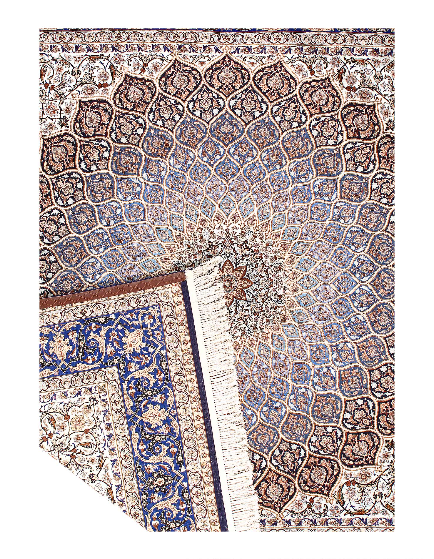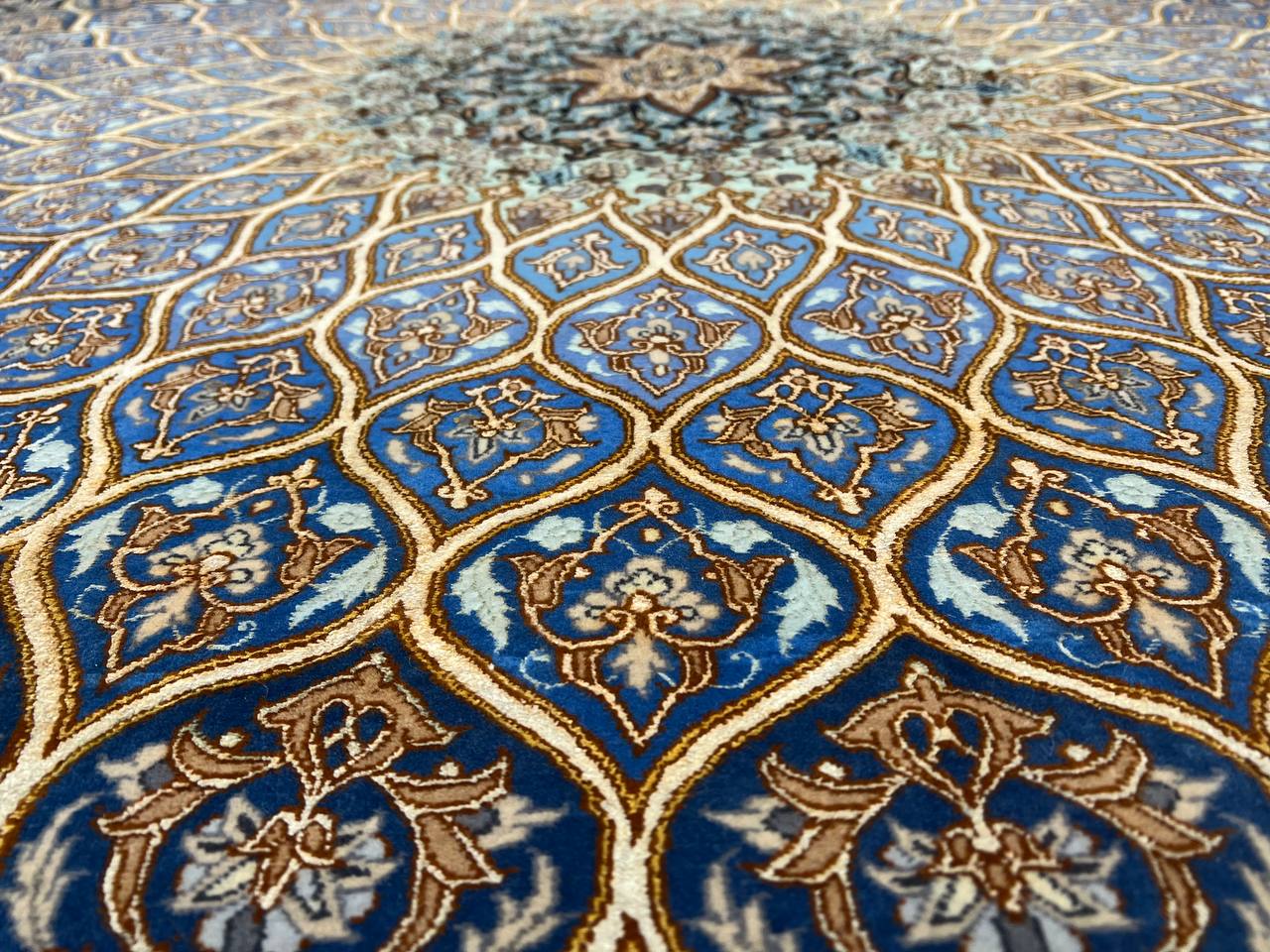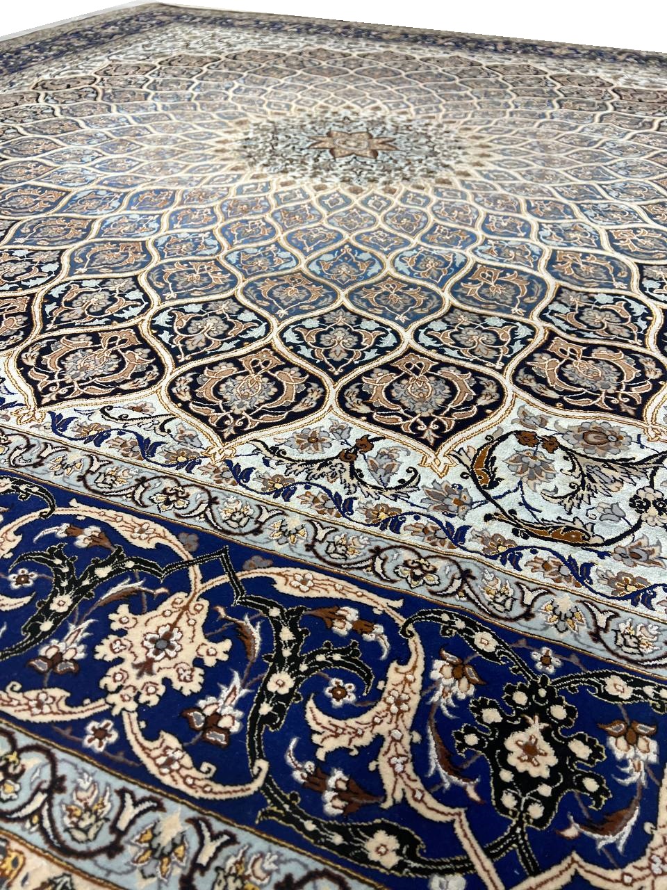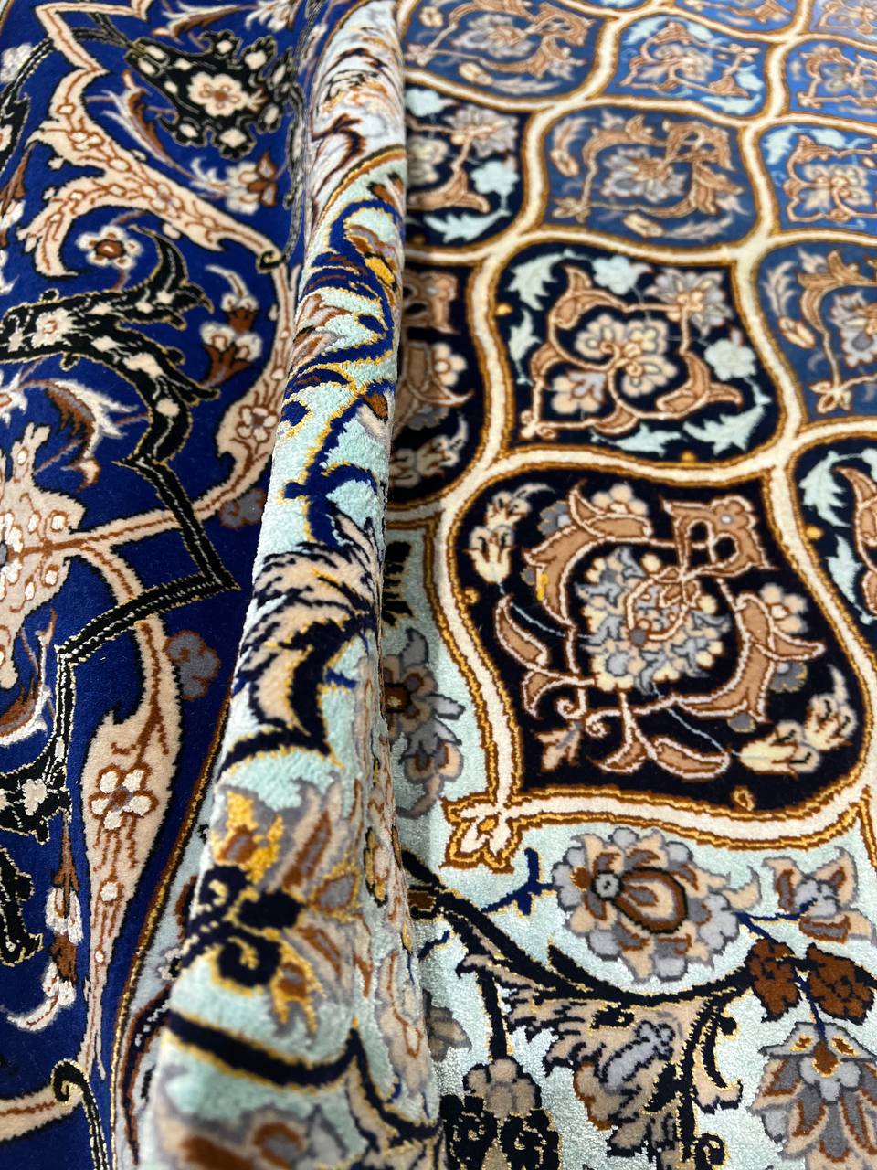 The Isfahan rugs are made with exceptionally good quality of wool & silk. They use traditional motifs inspired by architectural tiles that once decorated the historical buildings from which these rugs originated in. When it comes to high class designs the composition, patterns, and materials of Isfahan meets those expectations. The motifs usually consist of medallions with palmetts and also figural motifs. Isfahan rugs have an extremely high knot density and are woven with silk and golden threads, which give them their luxurious look.