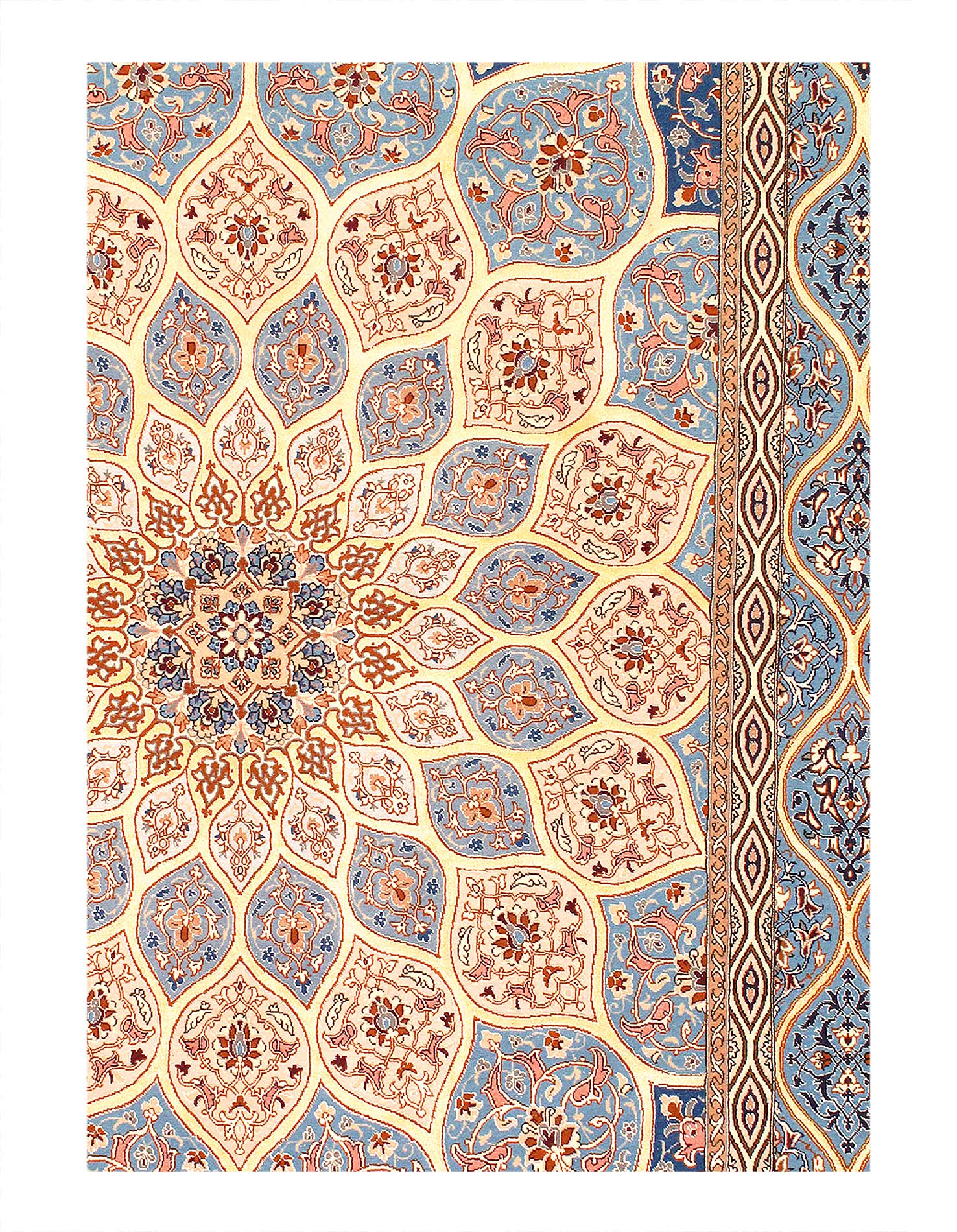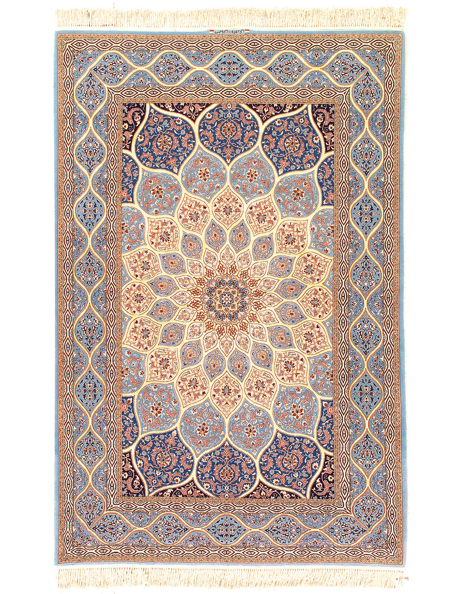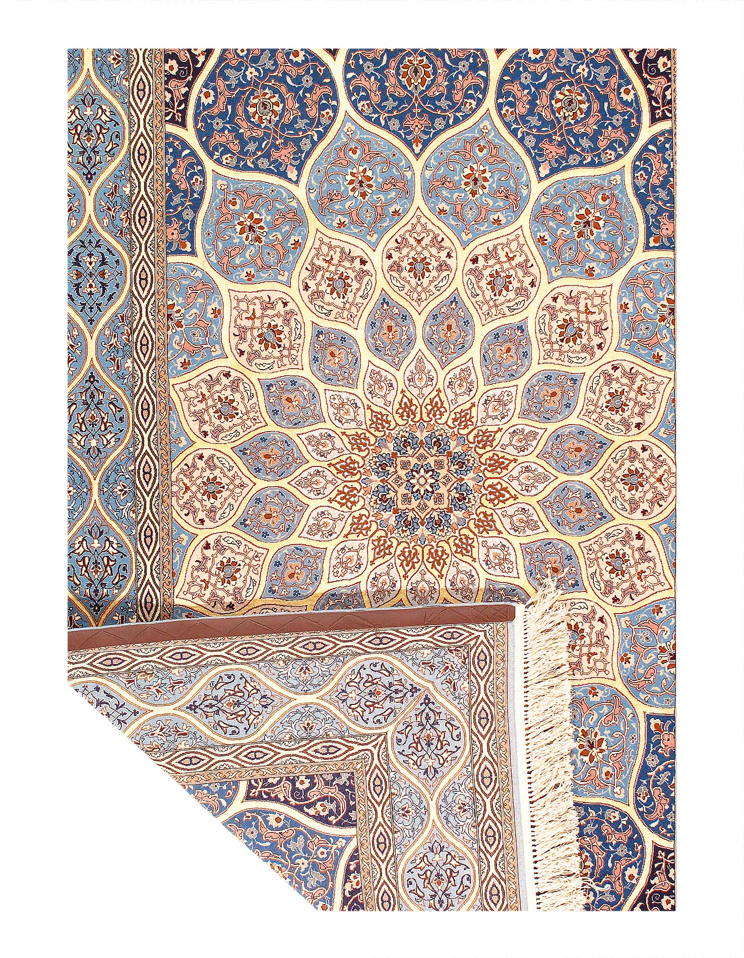 The Isfahan rugs are made with exceptionally good quality of wool & silk. They use traditional motifs inspired by architectural tiles that once decorated the historical buildings from which these rugs originated in. When it comes to high class designs the composition, patterns, and materials of Isfahan meets those expectations. The motifs usually consist of medallions with palmetts and also figural motifs. Isfahan rugs have an extremely high knot density and are woven with silk and golden threads, which give them their luxurious look.