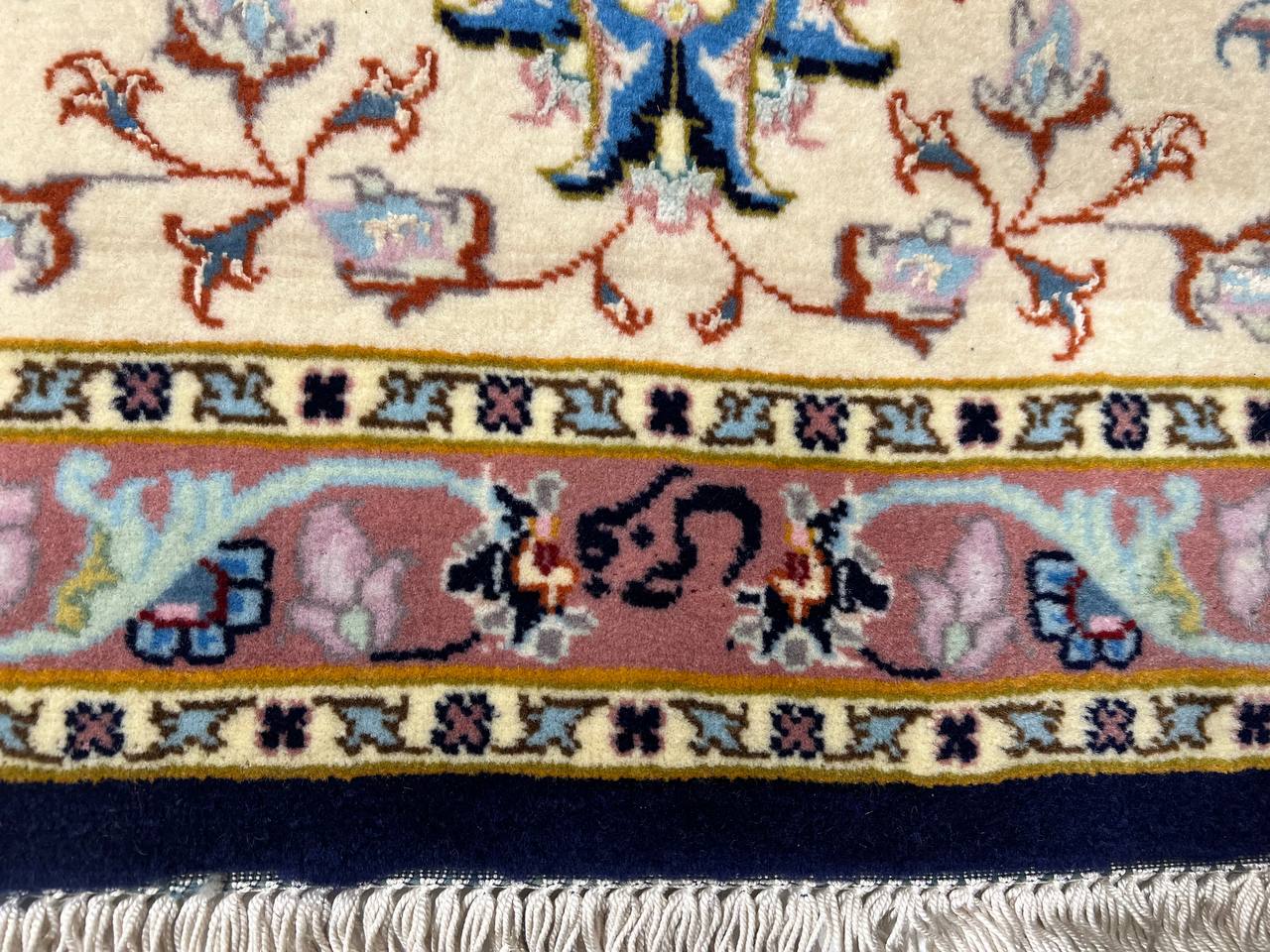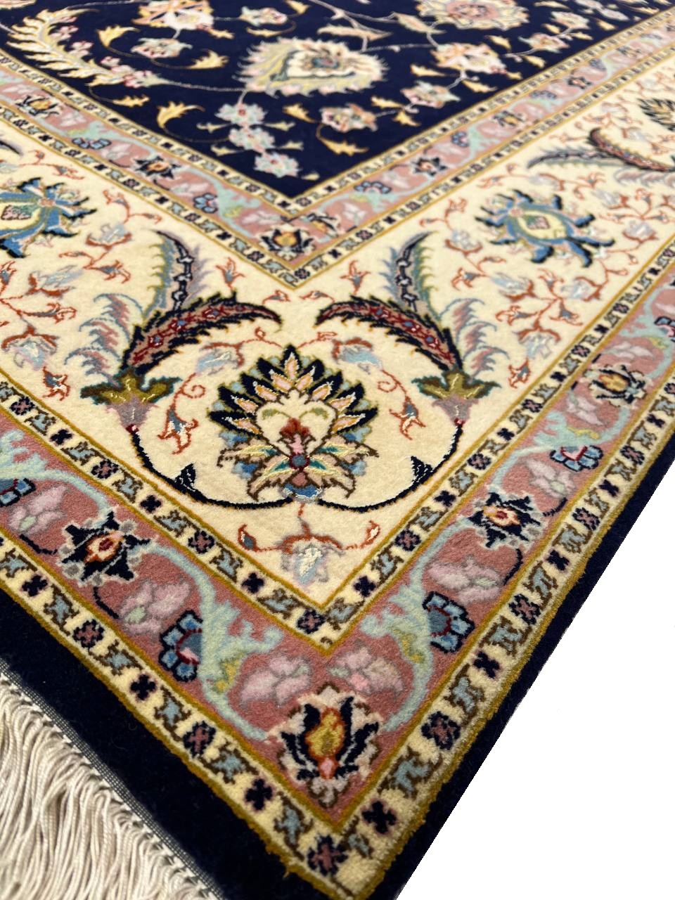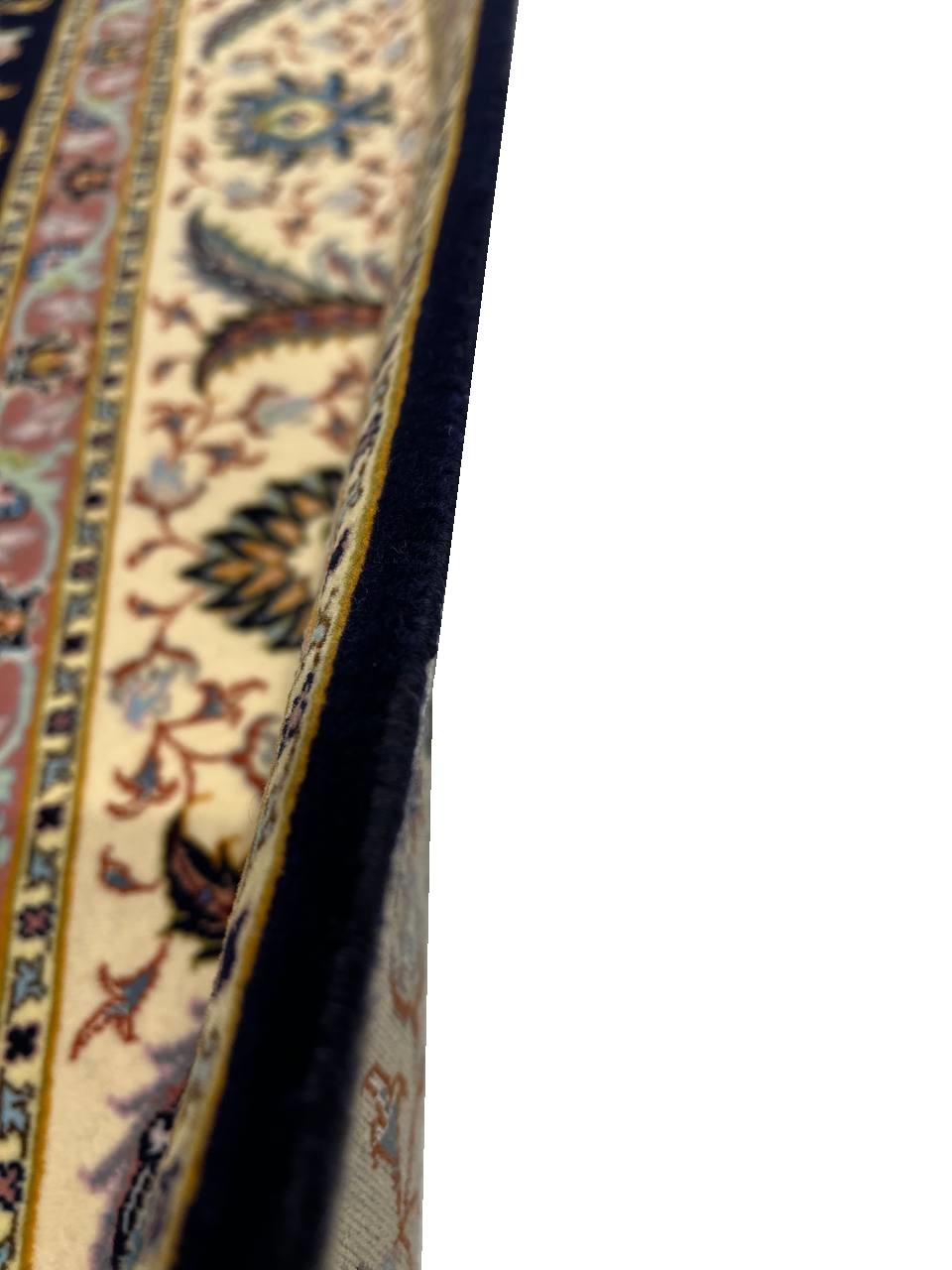This rug has been crafted in oldest craftsmanship to a piece of sophisticated quality rugs possess a fine level of knot density. This Tabriz has been crafted from soft sheep wool in combination with natural dyes. It belongs to rugs with an extremely good reputation among other Persian rugs. The finer Tabriz production is considered the best Persian productions in terms of quality and design. "Faraji" is an important, long established weaver in Tabriz producing high end Tabriz rugs and a guarantor for highly reliable quality. Usually Tabriz Faraji rugs have the signature "Faraji" woven into the rug.