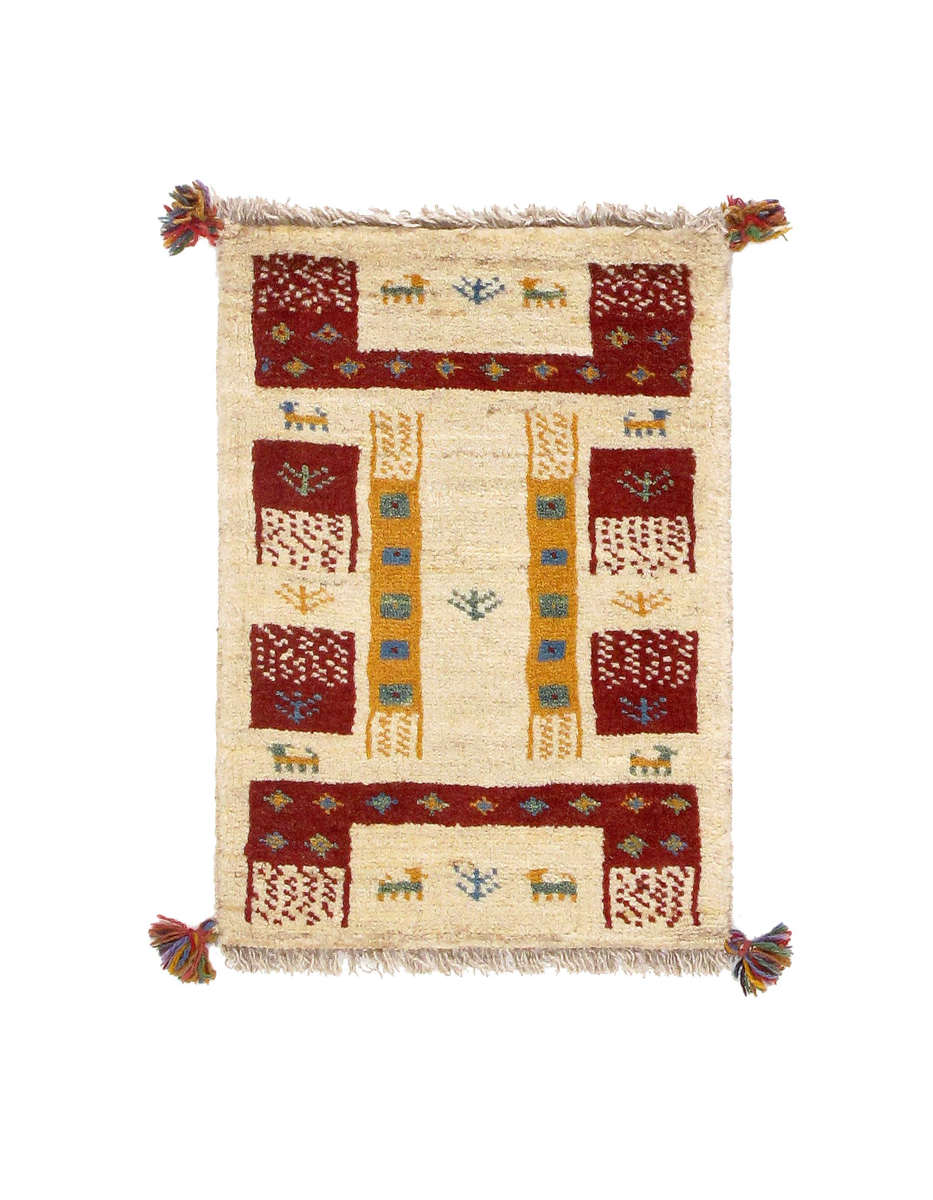 This Gabbeh Scatter Rug is made of high-quality old and rare Persian Gabbeh carpets. The piece was crafted with good workmanship.