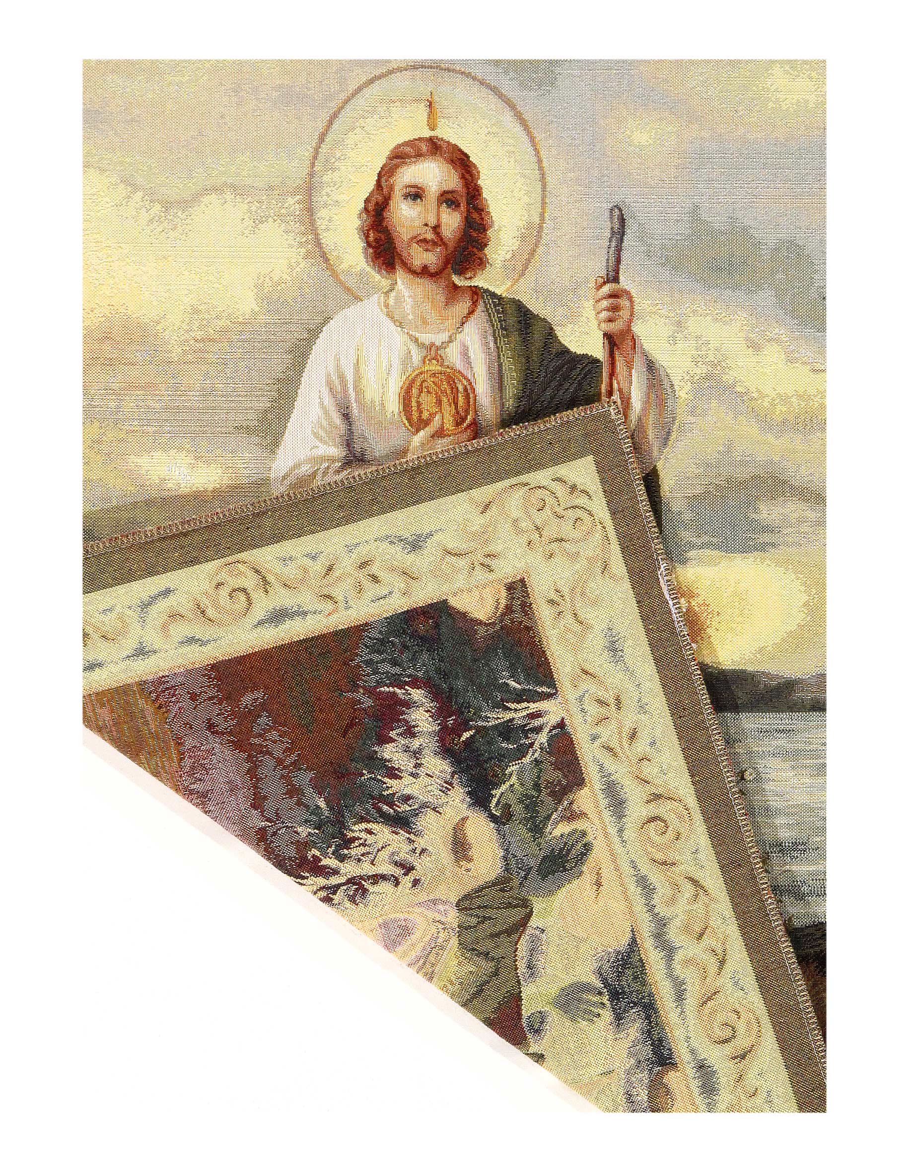 This gorgeous religious tapestry wall hanging will create a new sense of charm and wonder in your home. Adds warmth and depth to any interior design. Decorate your home tastefully! Great addition to any Jesus pictures collection or any tapestry collection