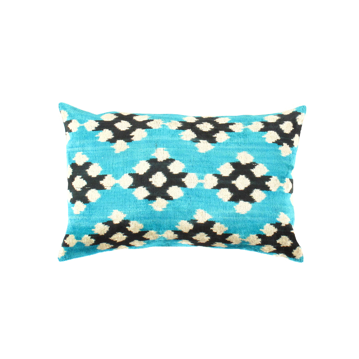 Bring the world to your sofa with this pillow. The perfect addition to any couch, bed, or chair, this plush pillow is expertly crafted from fine silk velvet for a soft and luxurious feel. Made in Turkey, this silk velvet cushion features a bold, Ikat-inspired motif in a range of hues and Linen back