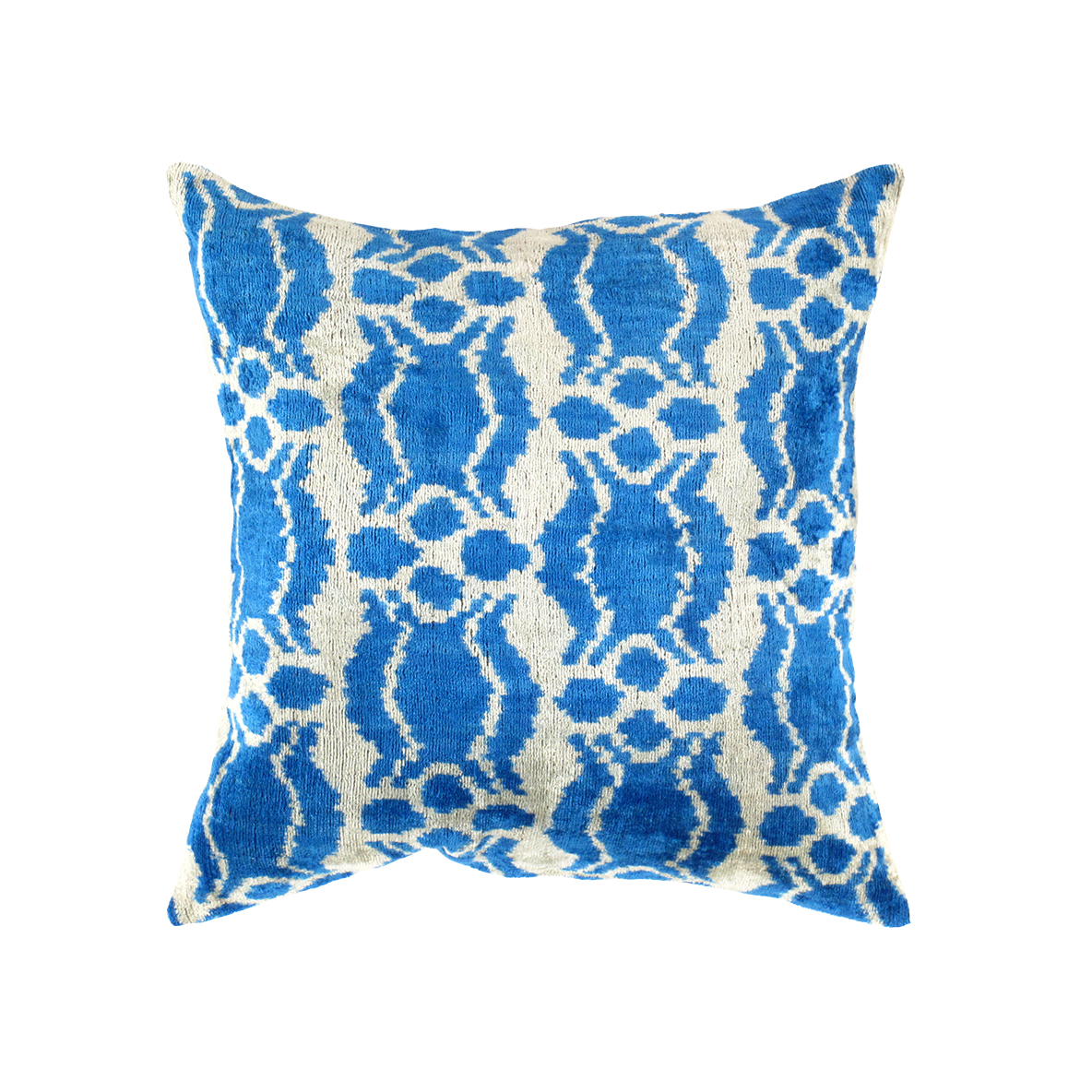 Blue Scroll Velvet Pillow will amaze you with its wonderful colours and motifs. This cushion took only the most outstanding characteristic of Oriental style. Due to the skillful work of weavers Blue Scroll Velvet Pillow deserves a prominent place in the list of home décor applications. Moreover, only natural materials were selected for this Velvet Ikat Pillow, which again raises its position among various options. Another distinctive feature of Blue Scroll Velvet Pillow is the soft and smooth pile. You can enjoy and feelit once you touch or lie on it.