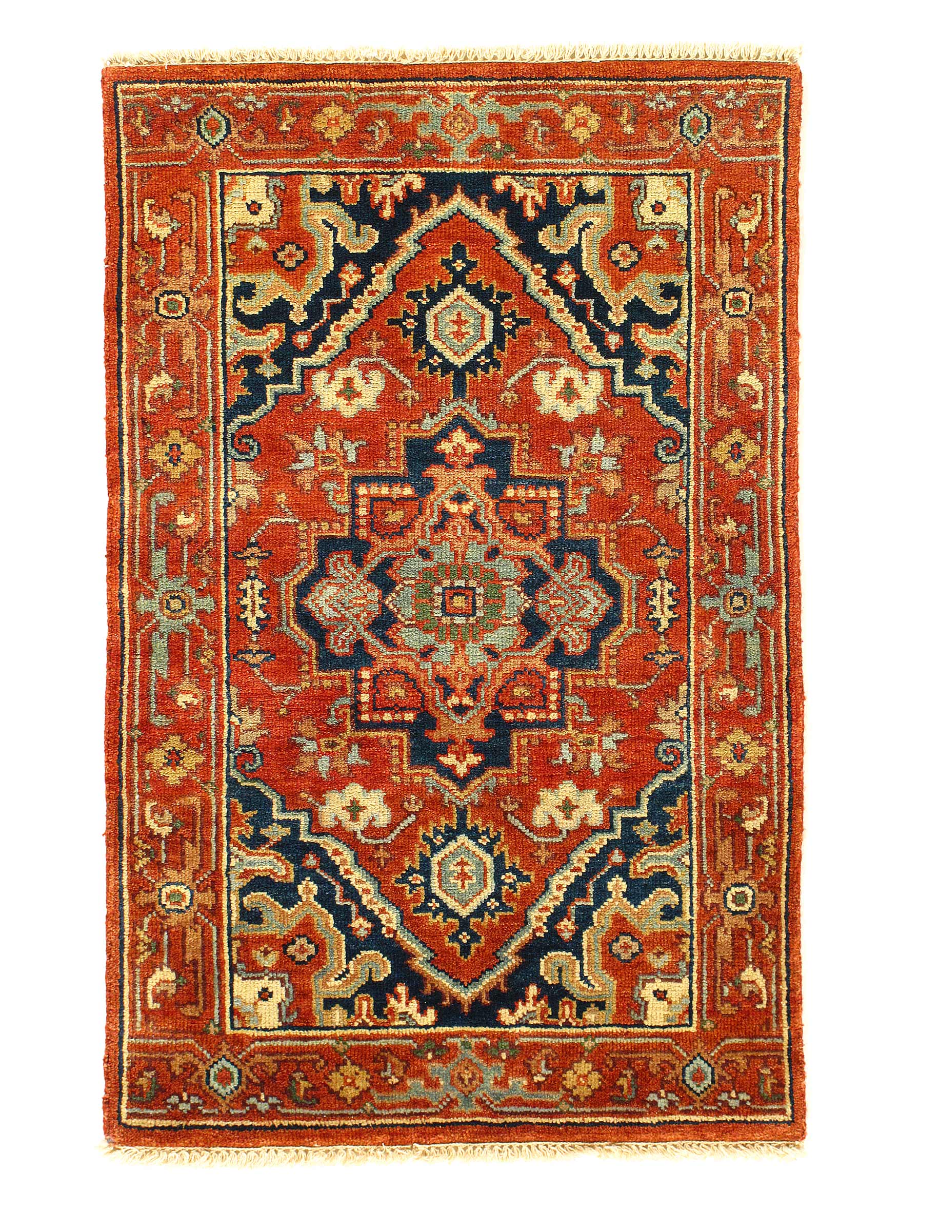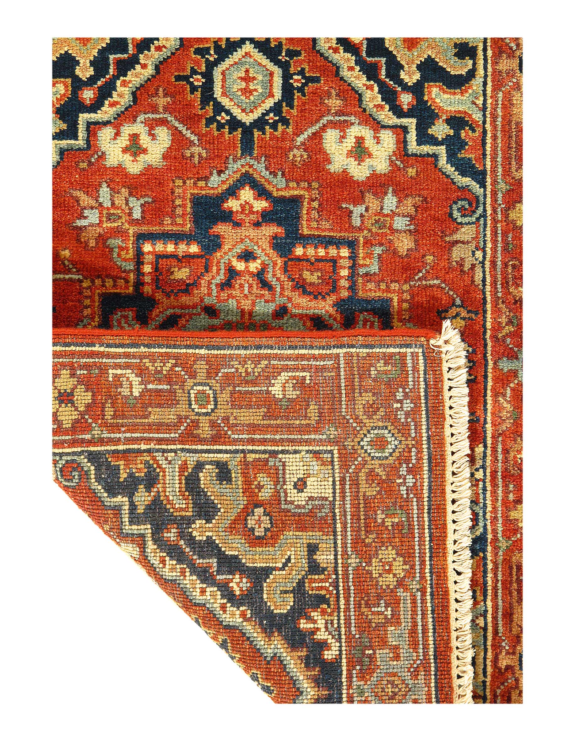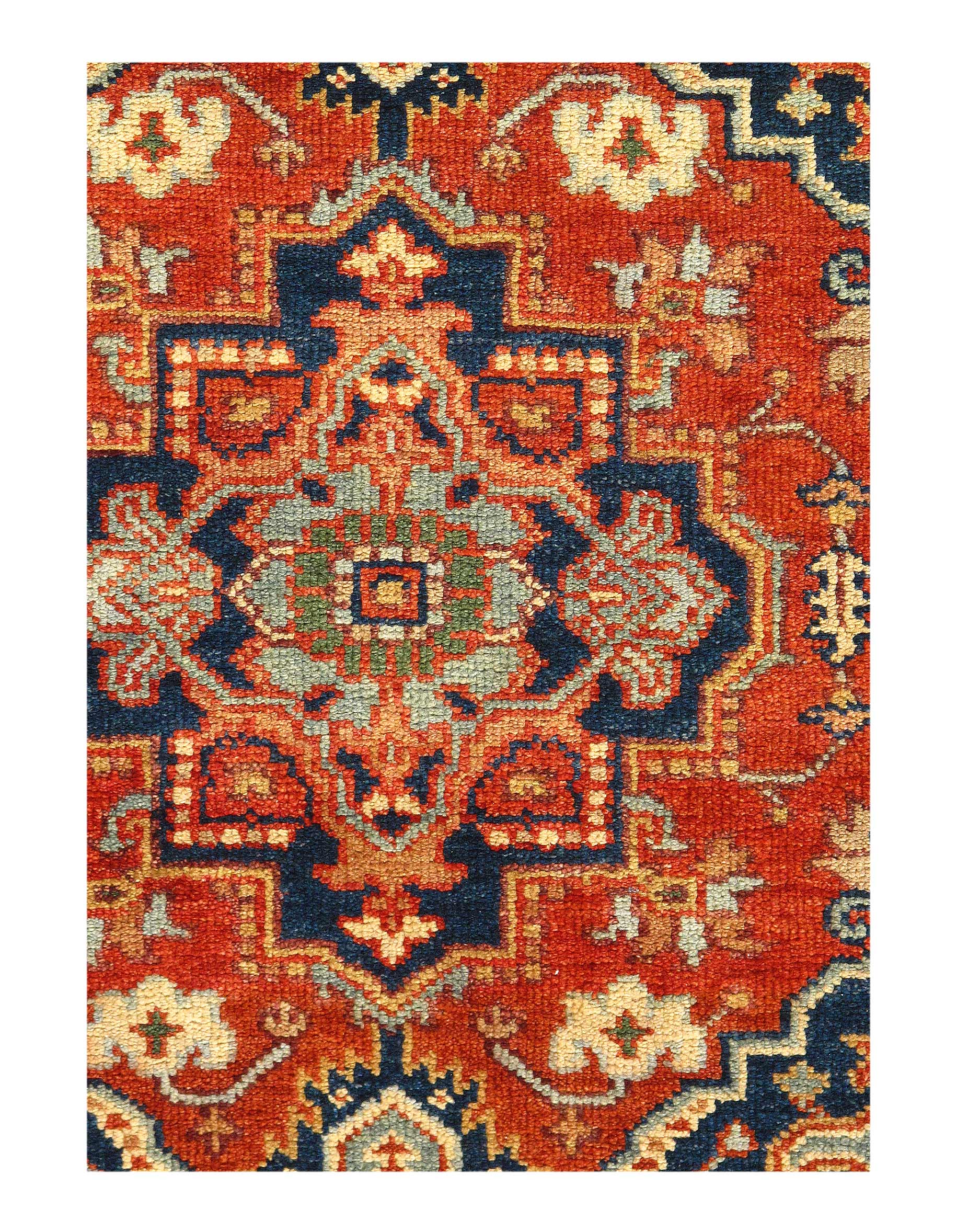 Indo Serapi design rug. Handmade Hand-knotted in fine lambswool. Lamb's Wool on a Cotton Foundation Vegetable Dyed Hand-Spun Wool Rug The Serapi Rug is one of the most sought after rugs particularly in the USA and England for many years. No other rug so epitomizes the "East Coast Establishment" than the Serapi carpet This rug has a dense, soft pile, and excellent quality, to ensure that you will enjoy the look and feel of your rug for years to come