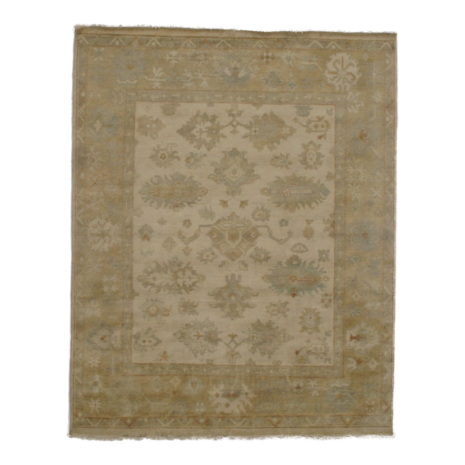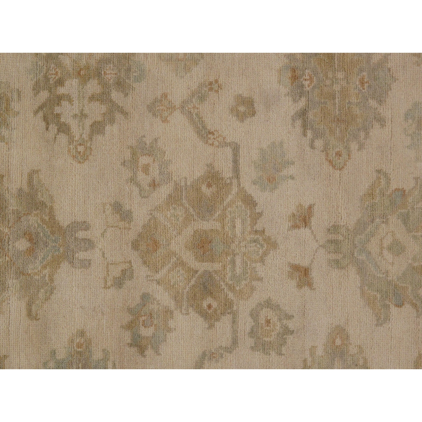 Original INDIAN OUSHAK Handmade Hand-knotted. Lamb's wool on a cotton foundation. This rug has a dense, soft pile, and excellent quality, to ensure that you will enjoy the look and feel of your rug for years to come.