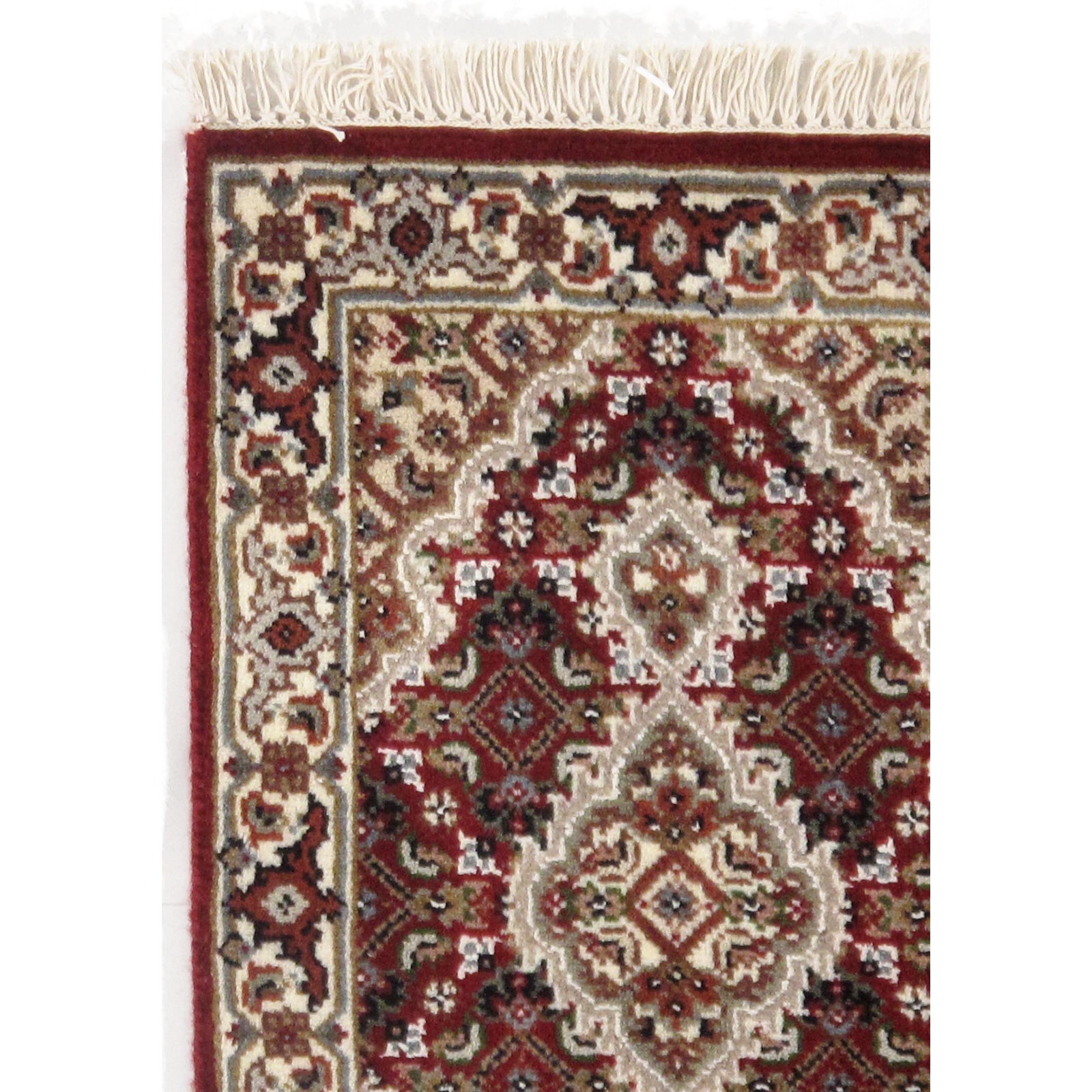 This is a hand-knotted Tabriz Design rug Hand-Spun Wool Rug All natural Dyed This rug is handmade from 100-percent premium, hand-spun wool, and employ ancient pot-dying techniques to give them their authentic look. From India