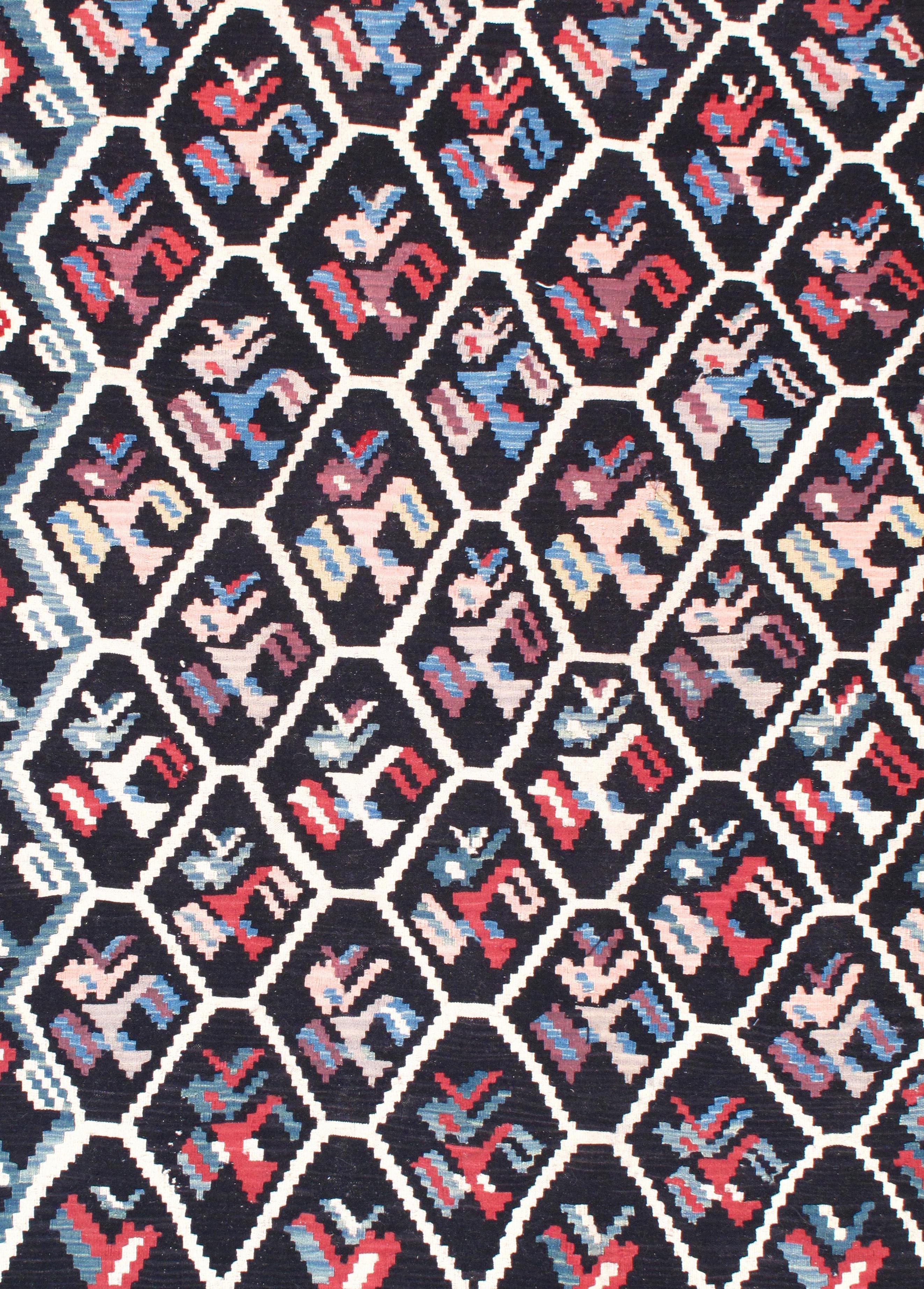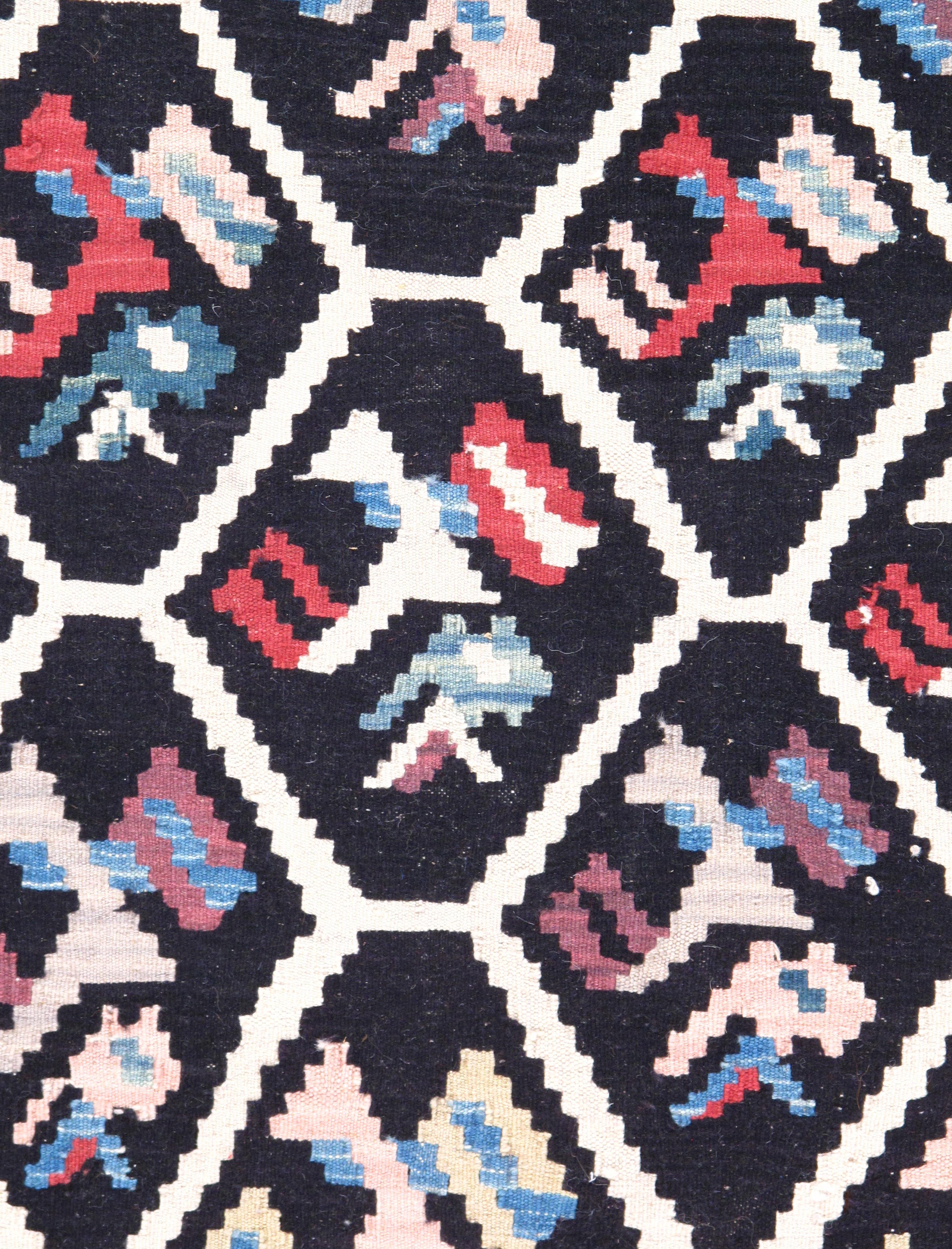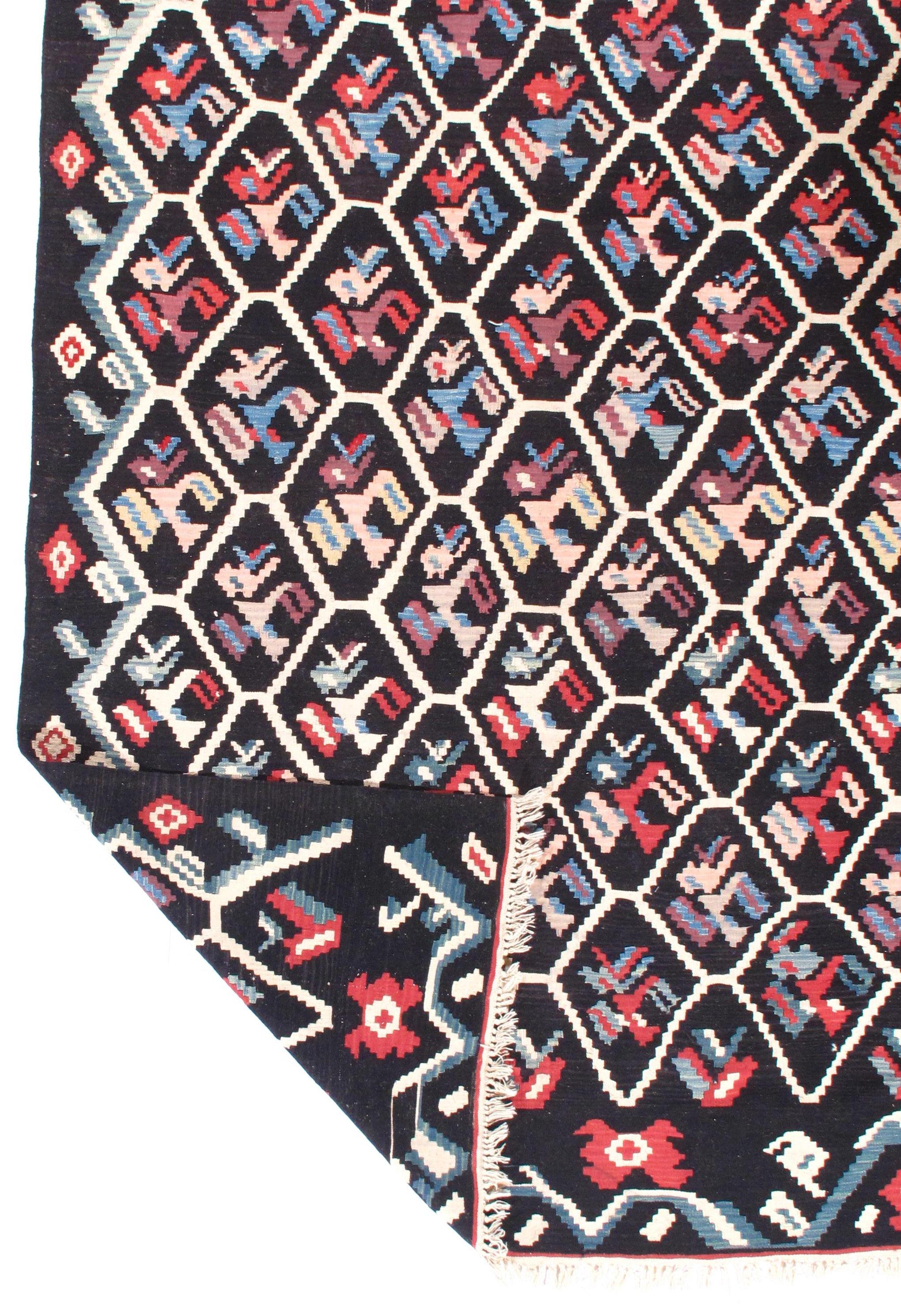 Enjoy the uniqueness of this authentic one-of-a-kind geometric 6'1'' X 9'1'' Flat weave Turkey oriental area rug hand-woven by skillful weavers in Turkey. Made of pure wool this rug is in excellent condition. The primary color is Black . The Hand-Woven area rugs (also called Flatwoven rugs) are produced in a similar manner, as the hand-knotted rug but using a different kind of loom. Hand-woven carpets are known for their amazing beauty and lastingness but require a lot of time and skill. Here the weaver uses the loom to weave the rug fibers into the warp. These flatweave rugs are authentic handmade. The weaving technique allows the use of many colors and weave-variations, producing almost unlimited variety of patterns and colors to Black/Beige from. Due to the precise construction techniques, a hand woven rug will provide you with years of consolation and satisfaction