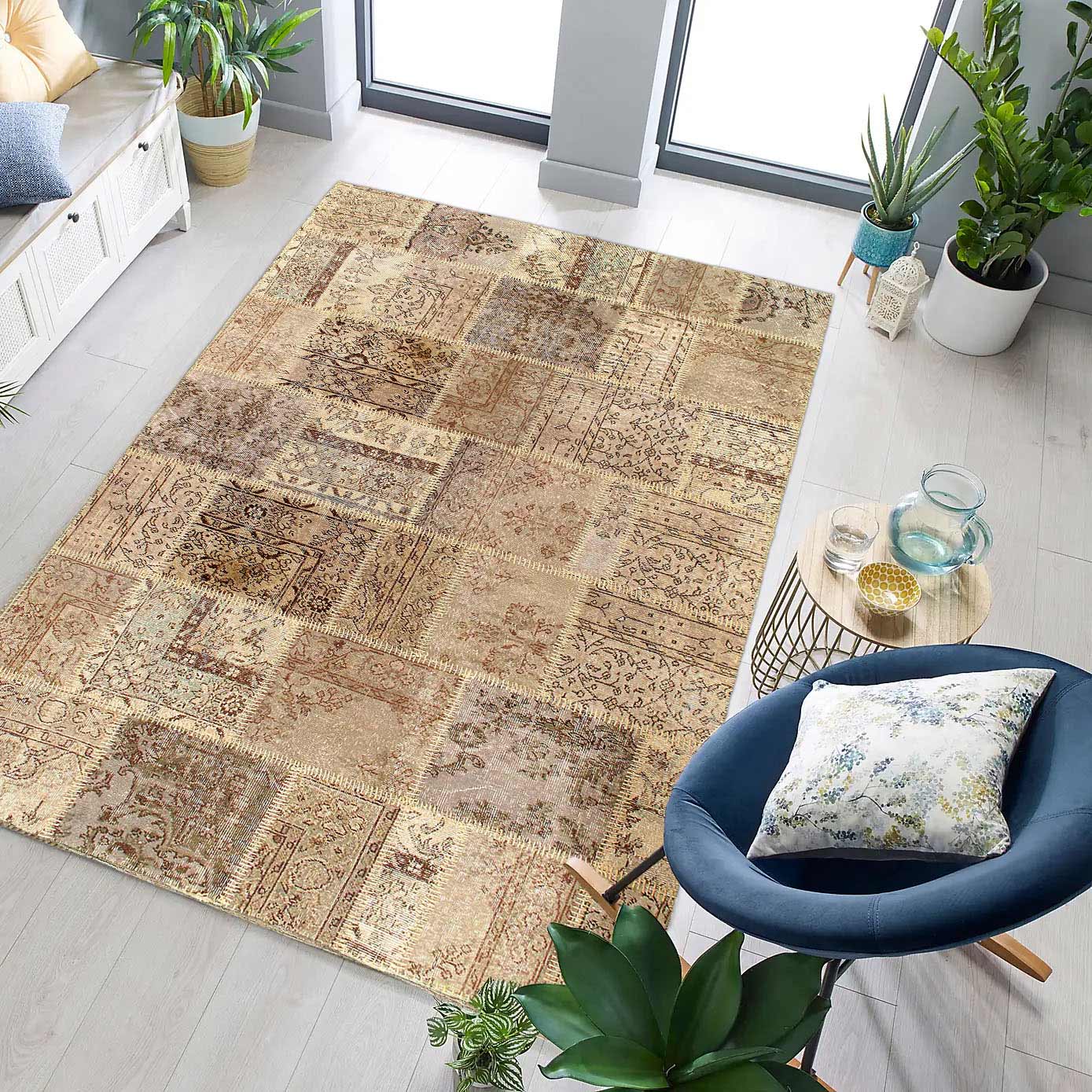 The vintage patchwork design will give your home a sophisticated style. Contemporary design. 100% Lamb's Wool. With a striking design and smooth coloring, this flawless piece will radiate both opulence and classic charm from room to room within any home.