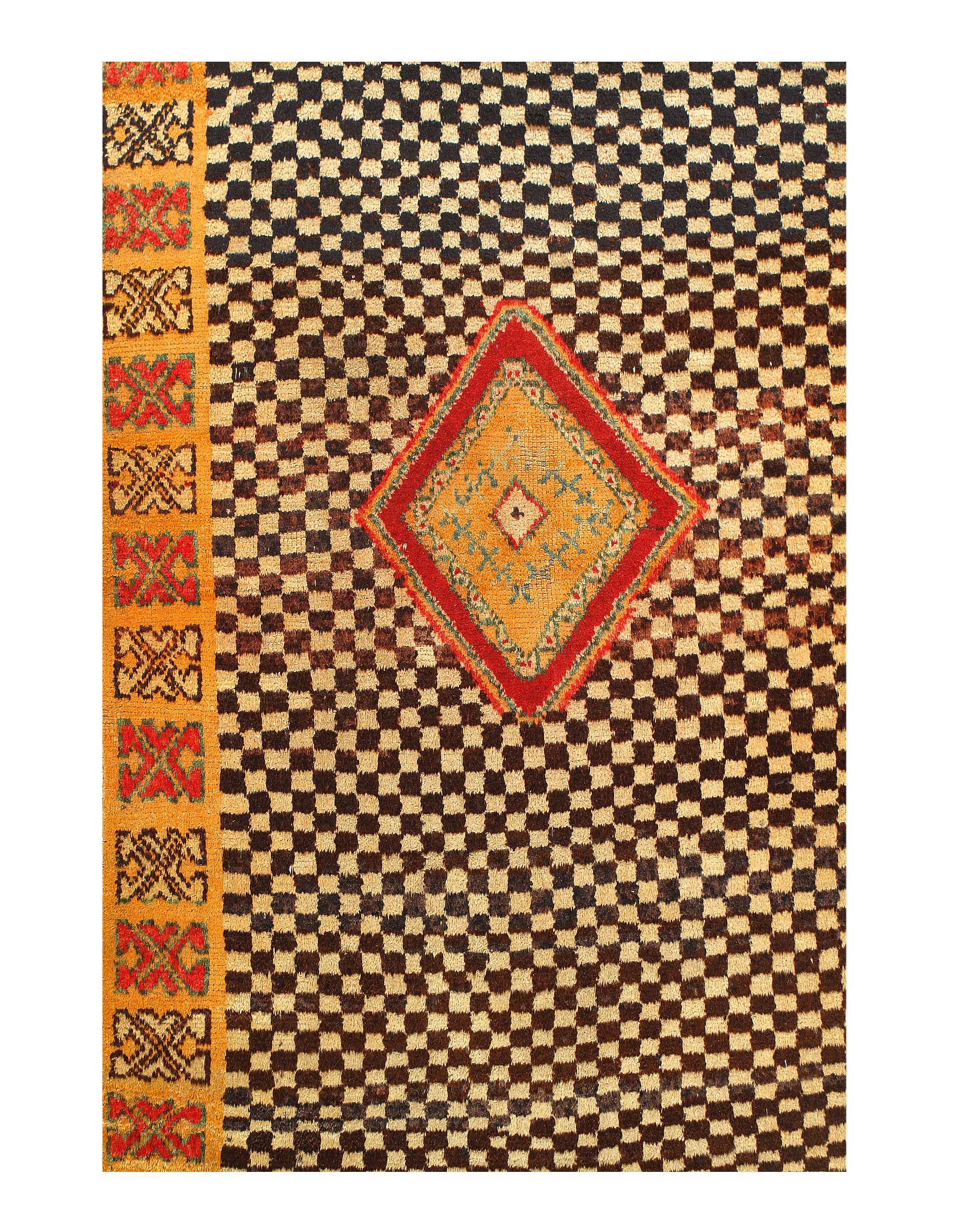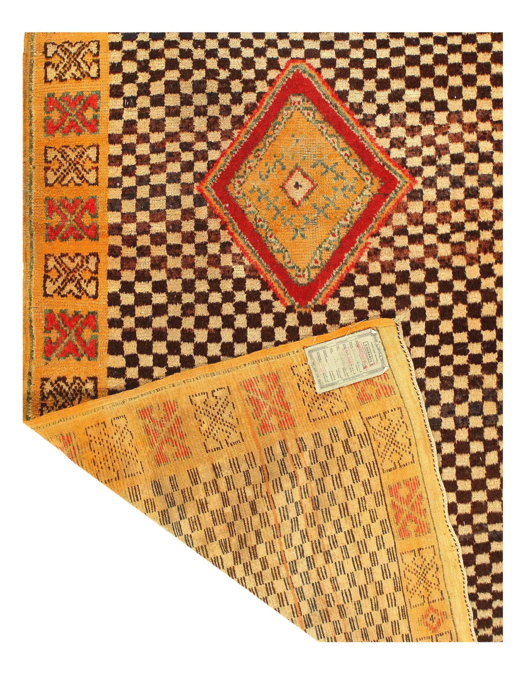 Beautiful Vintage Moroccan Brown Rug, Country of Origin: Morocco, Circa Date: Mid 20th Century – This breathtaking mid-20th century tribal masterpiece is the work of Morocco. This tribal confederation of 17 tribes has a tradition of weaving beautiful rugs that would become icons of mid century decor. This gorgeous piece is a rare find for is color and unique design. It is a true collector’s piece.