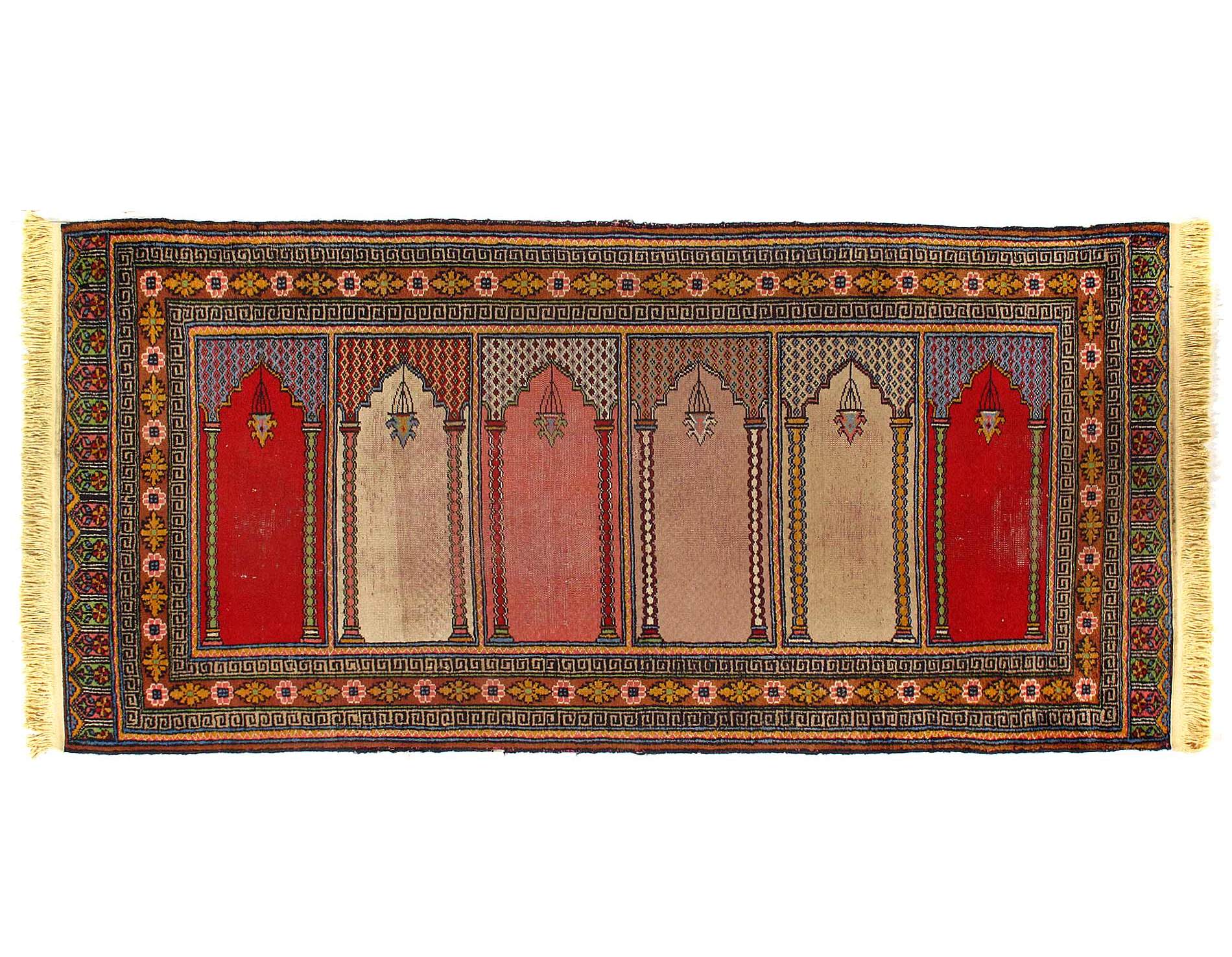 Bokhara is a term commonly used to describe Tekke-faced rugs. Tekke was a tribe from the area of Bokhara in Central Asia. The design is dominated by rows of guls and surrounding geometric patterns.