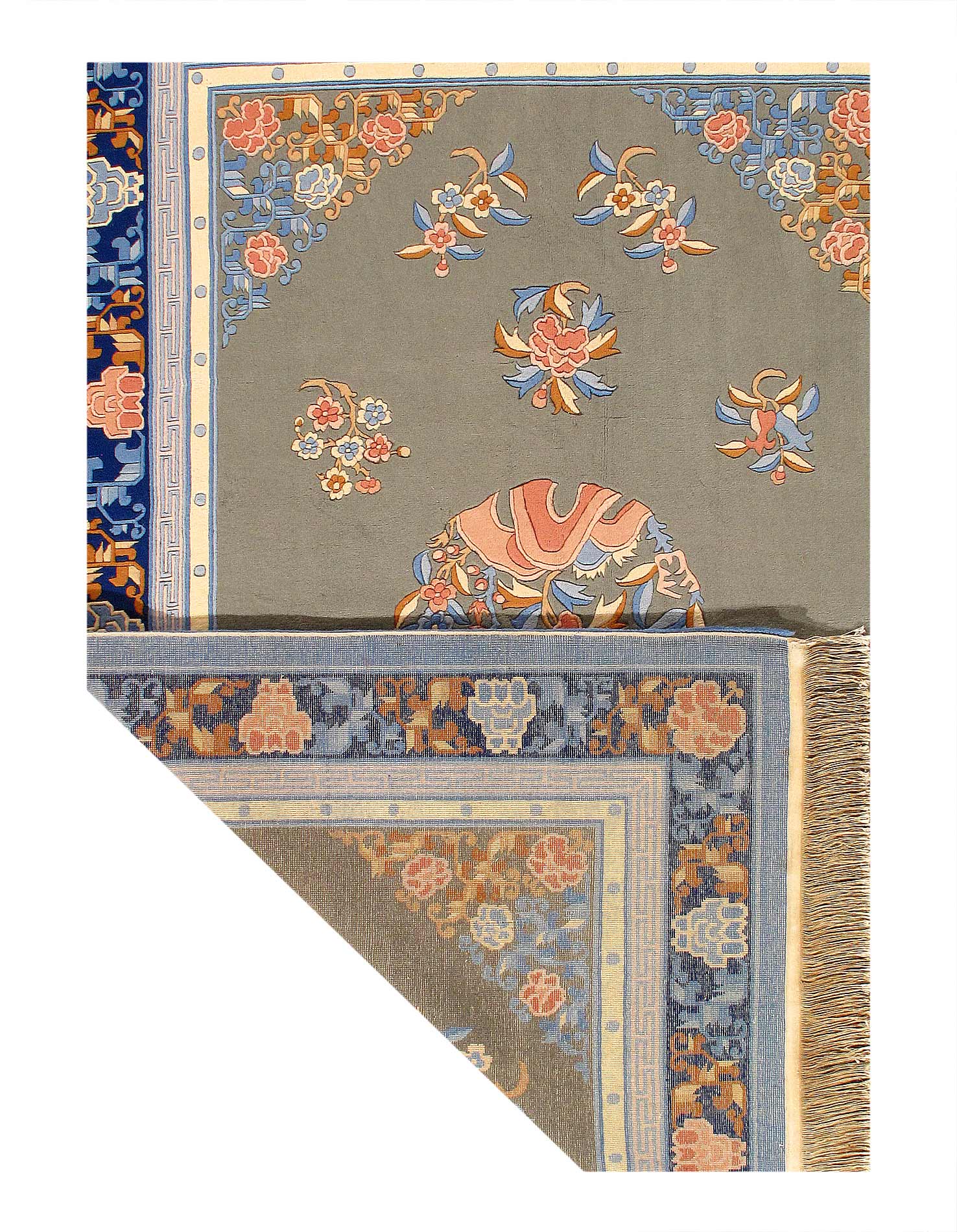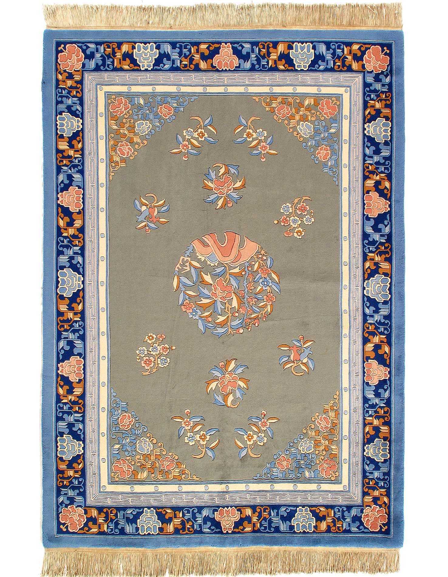 Fine Hand Knotted Vintage chinese art deco lambs wool pile on cotton foundations