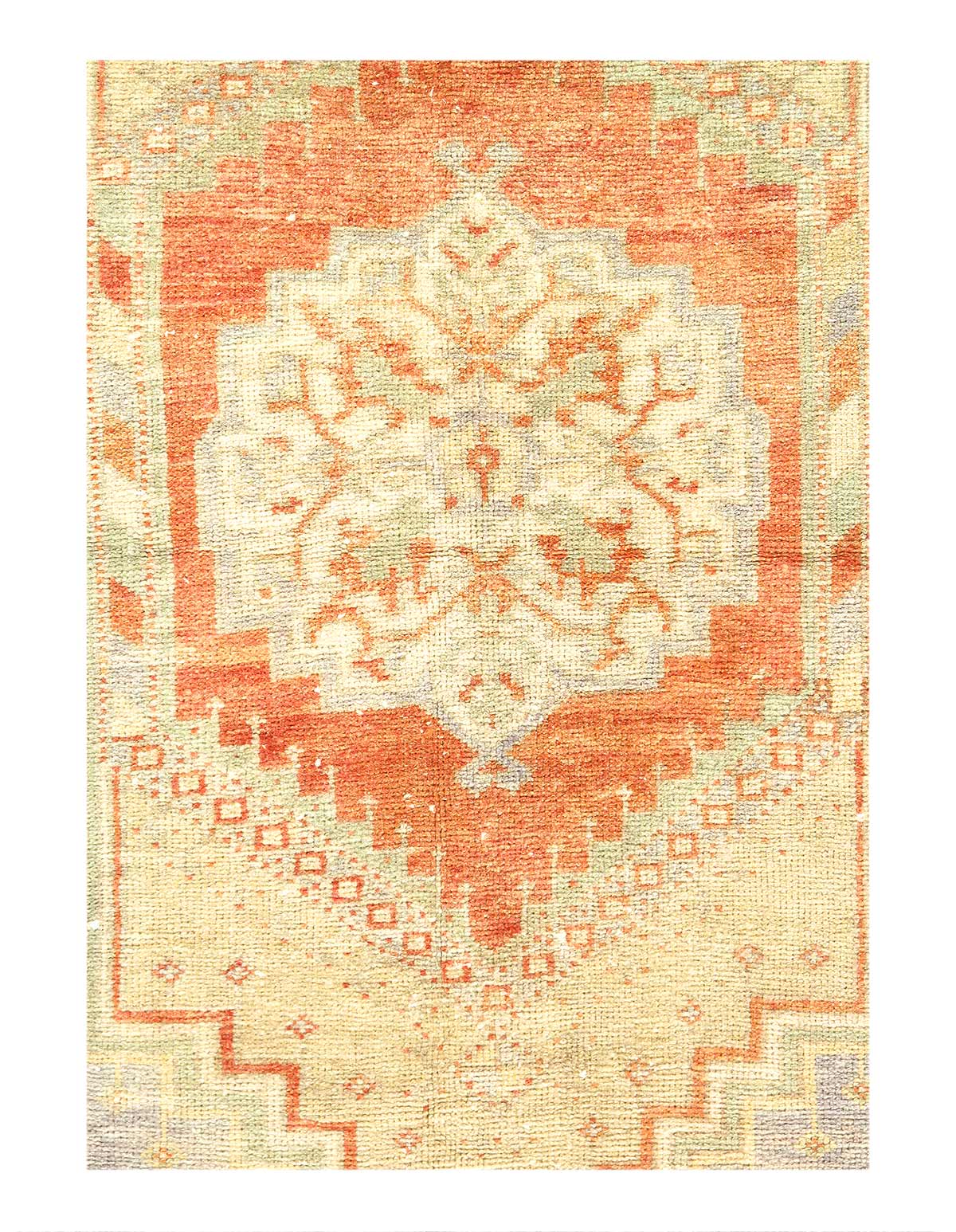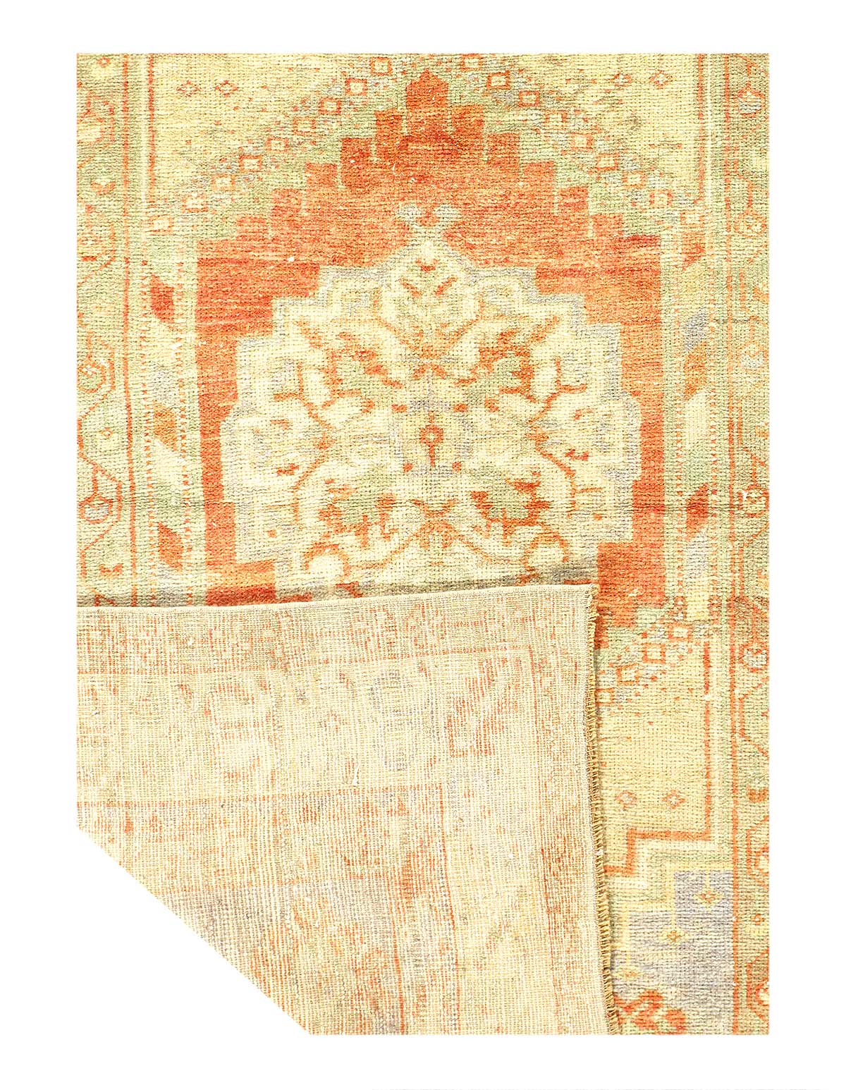 Decorative washed out hand knotted vintage rug from Oushak region of Turkey. Approximately 50-60 years old. In very good condition