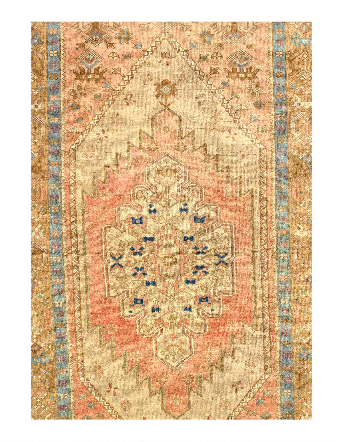Decorative washed out hand knotted vintage rug from Oushak region of Turkey. Approximately 50-60 years old. In very good condition