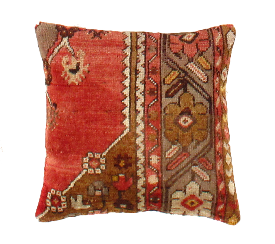 Antique hand woven Turkish Oushak pillow. This is 100% wool. Back 100% cotton. Beautiful colors and well made. This pillow features a hidden zipper closure with neutral fabric backing.
