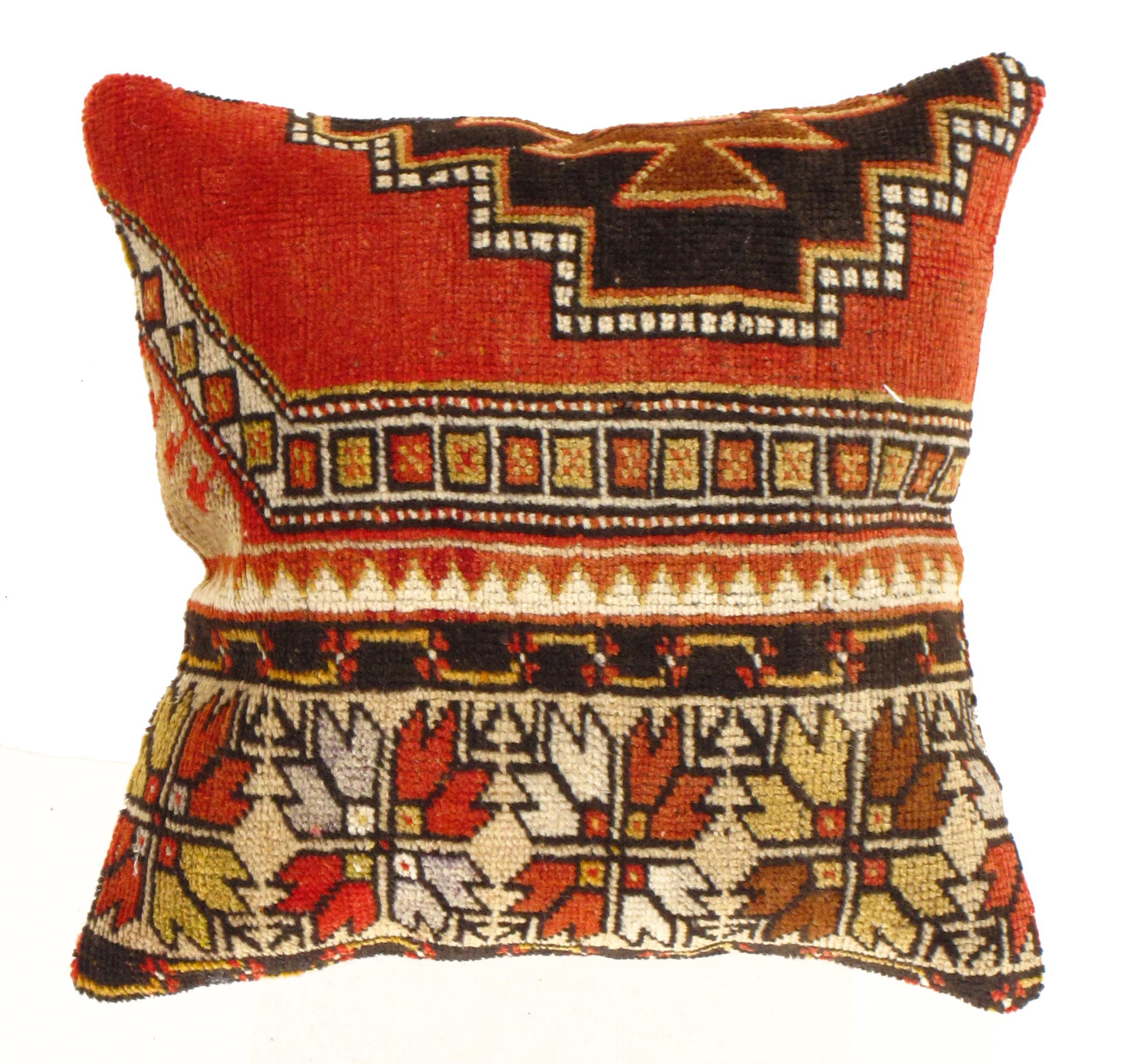 Antique hand woven Oushak pillow. This is 100% wool. Back 100% cotton. Beautiful colors and well made. This pillow features a hidden zipper closure with neutral fabric backing. From Turkey.