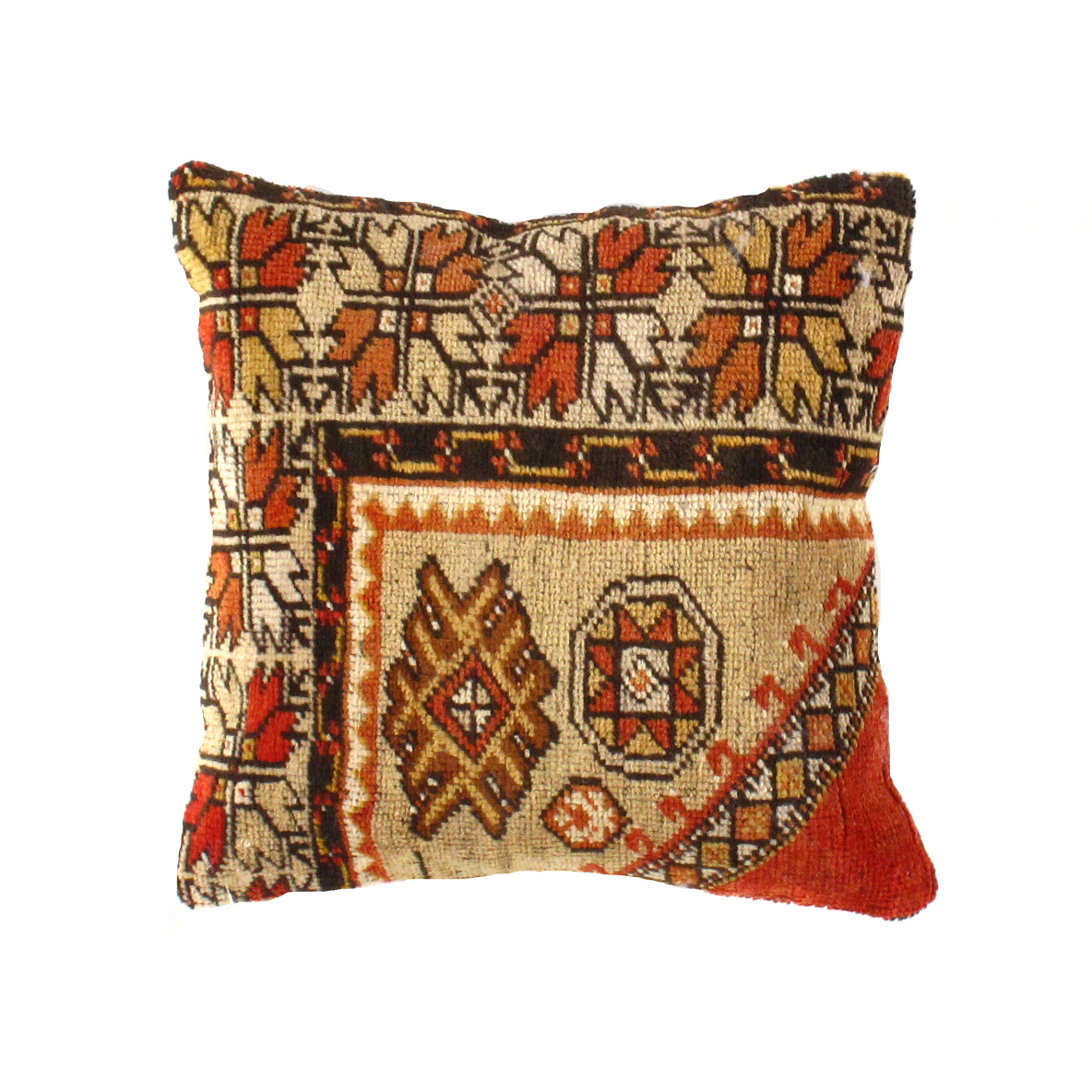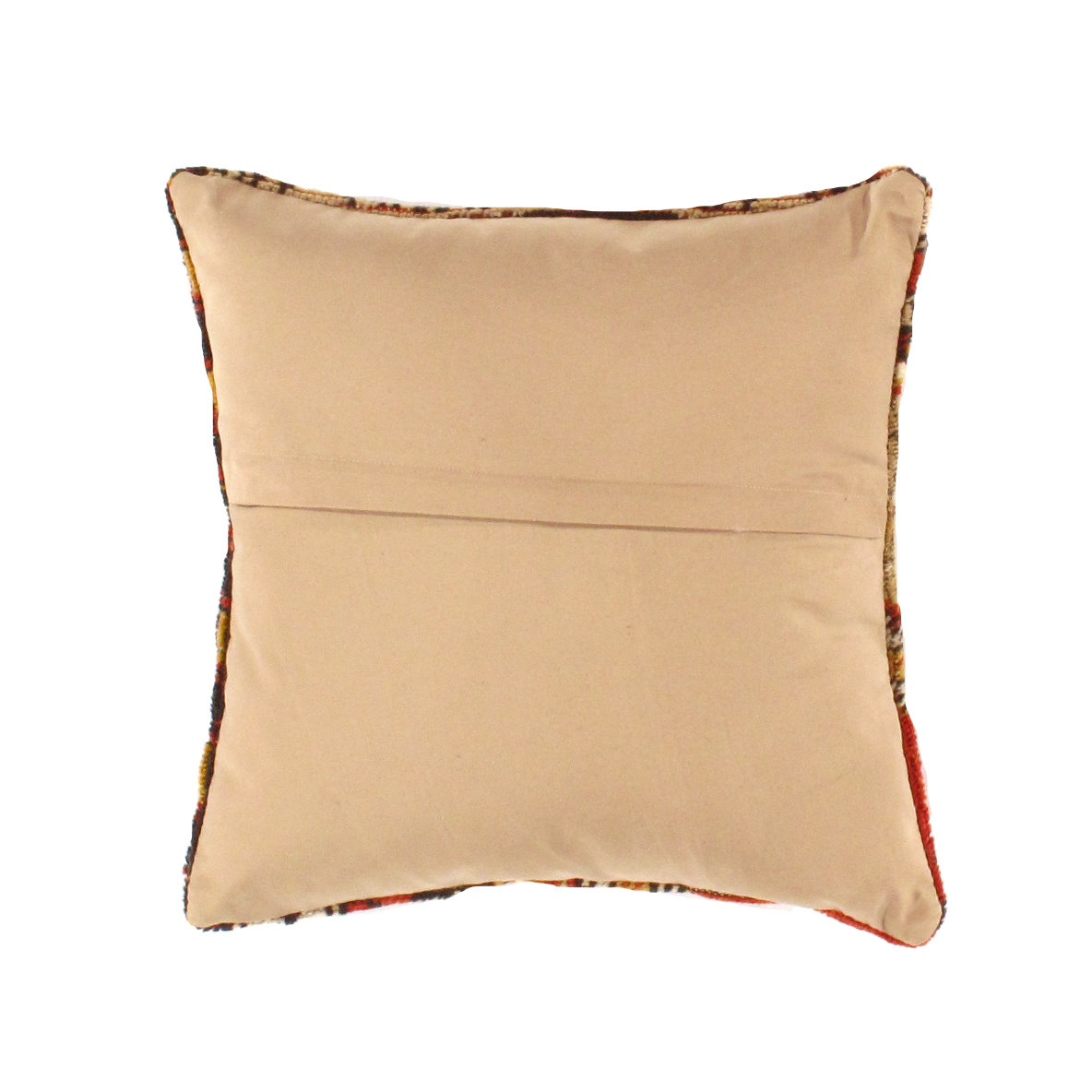 This pillow features a hidden zipper closure with neutral fabric backing.